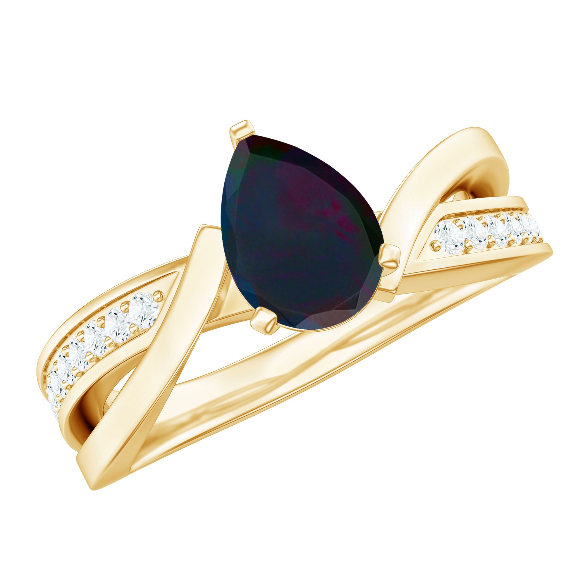 Pear Cut Solitaire Black Opal and Diamond Infinity Engagement Ring