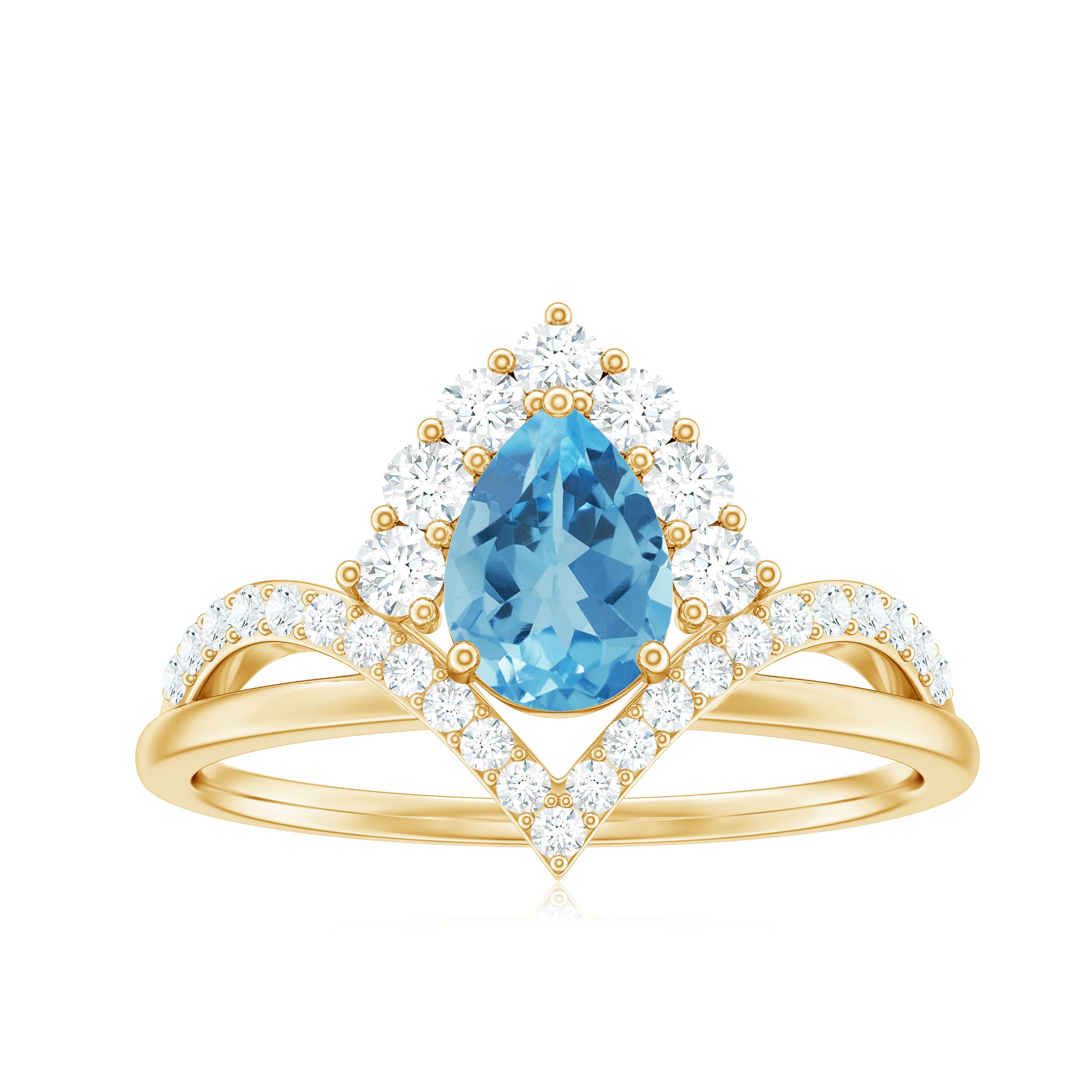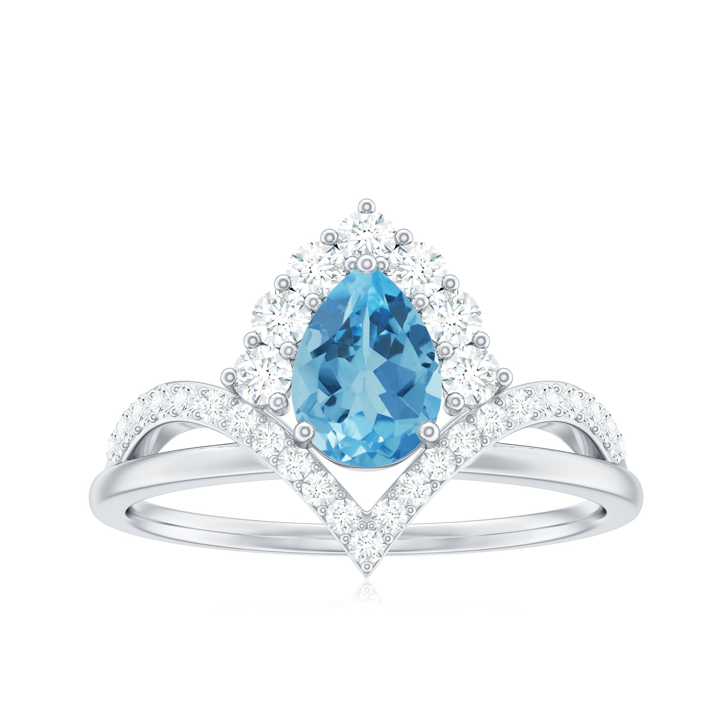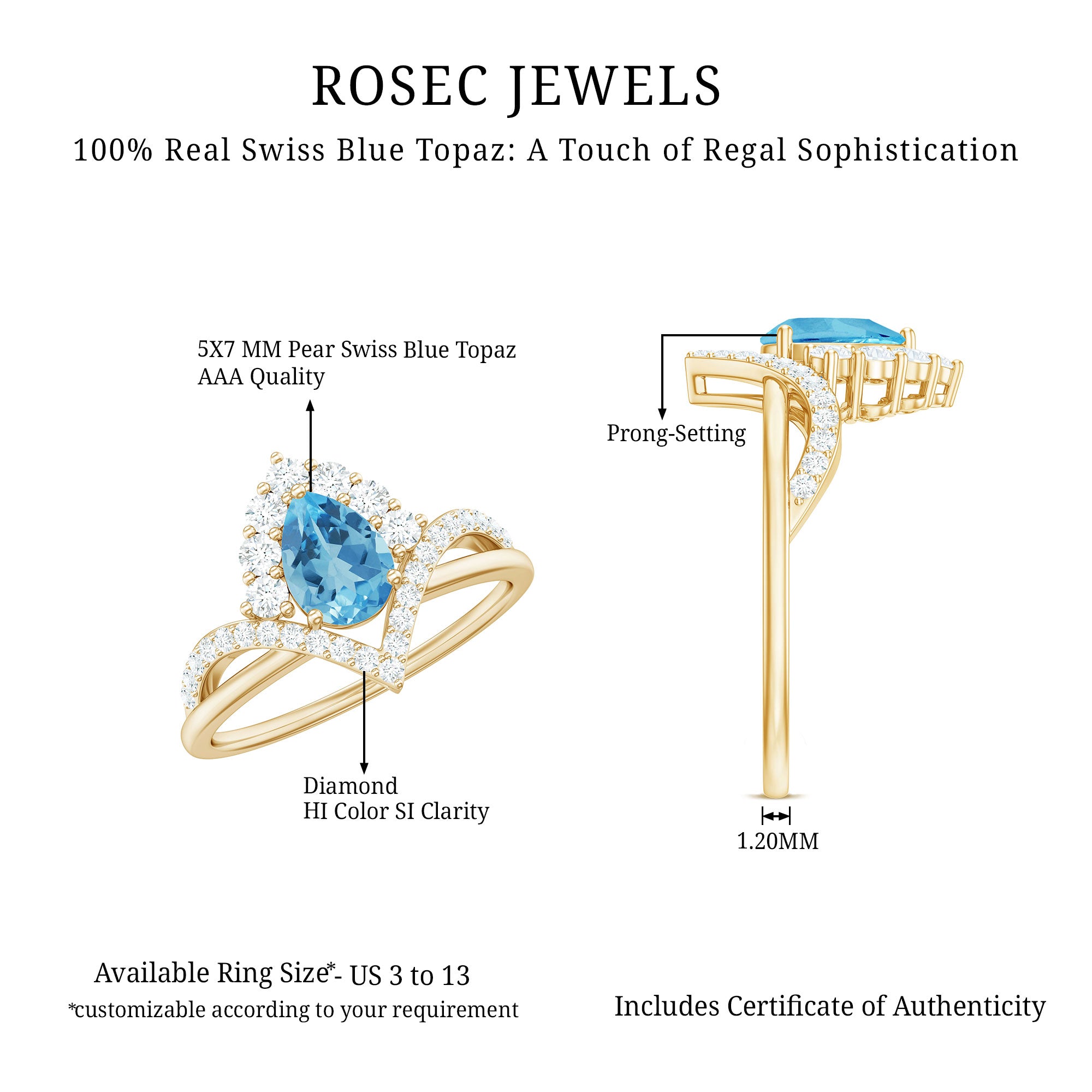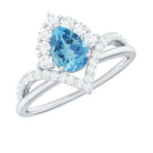 Pear Cut Swiss Blue Topaz Designer Engagement Ring with Diamond