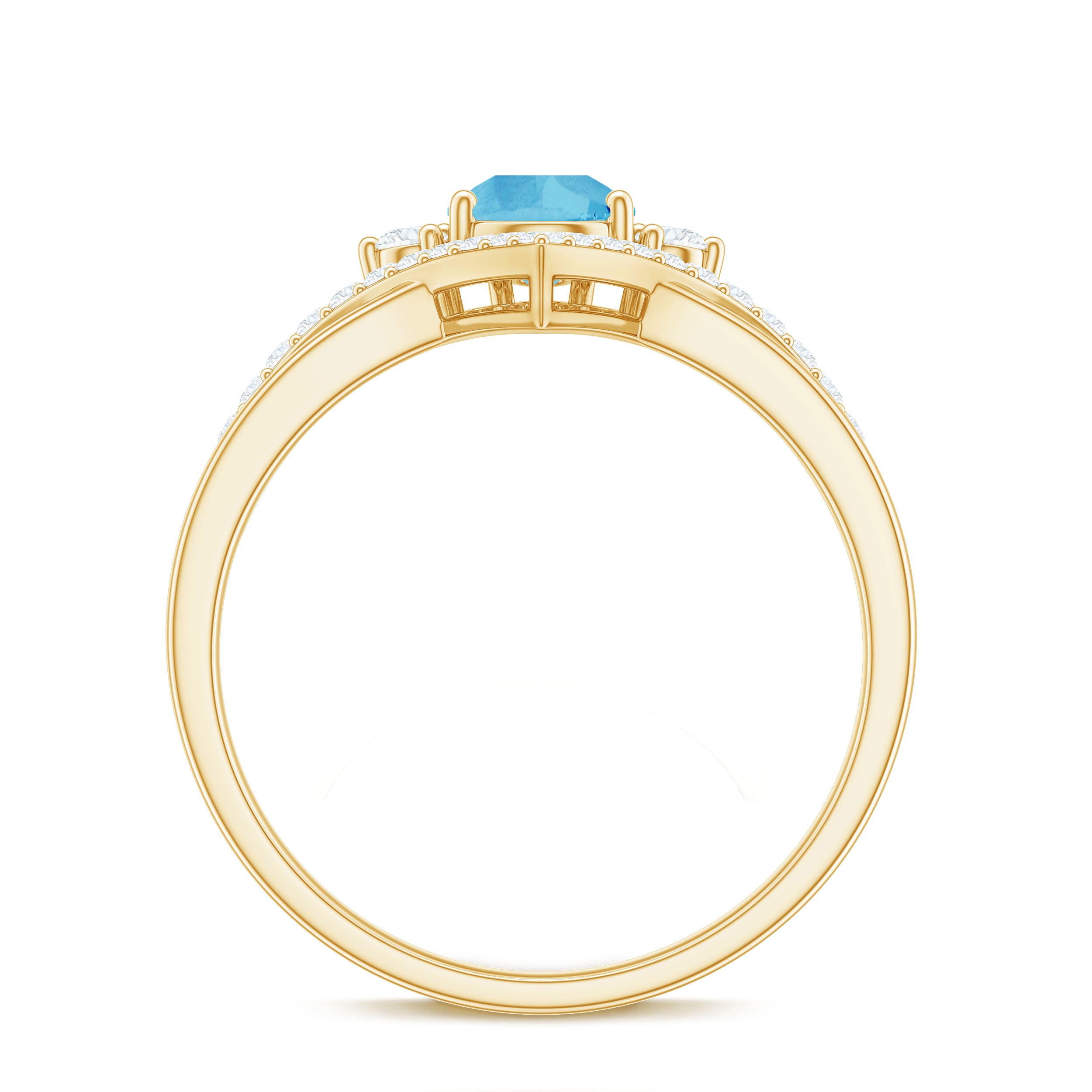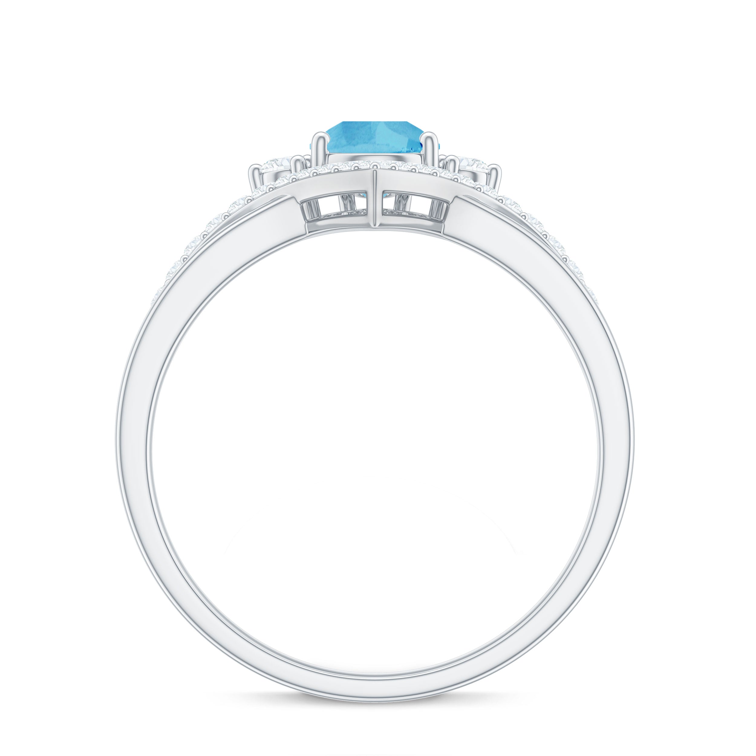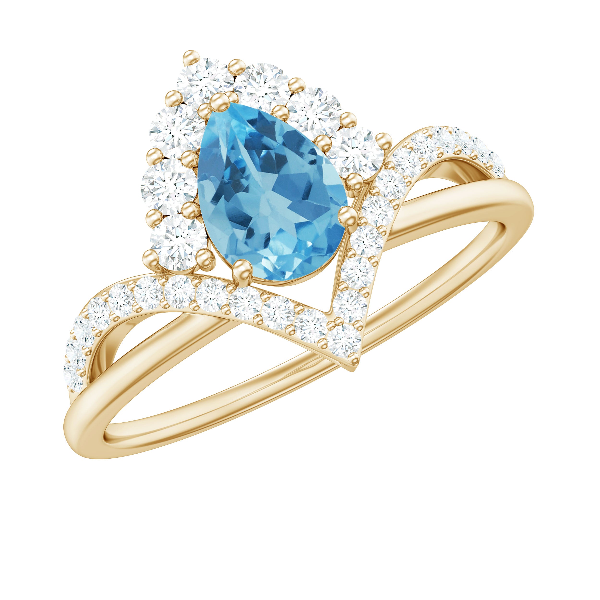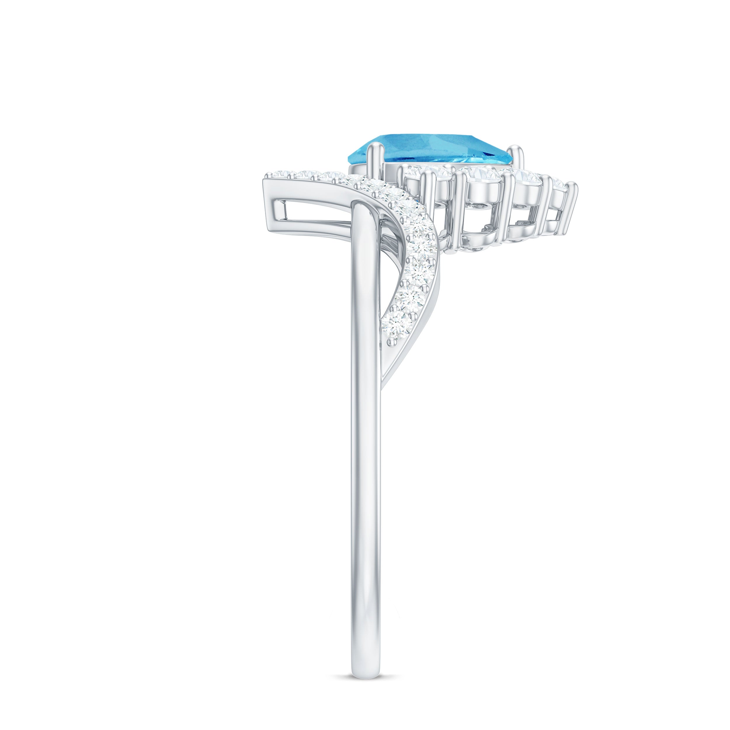 Pear Cut Swiss Blue Topaz Designer Engagement Ring with Diamond
