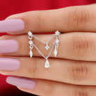This Moissanite Double Chain Earring features Pear, Marquise, and Round Cut Moissanites in a Prong Setting. This Moissanite Earring is a versatile earring to wear on your Cartilage, Helix, or Lobe Piercings that will perfectly complement your casual or party outfit. Get this must-have Cartilage Earring for your beloved as a birthday gift for her and make her jewelry collection even more luxurious.
