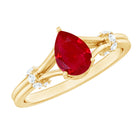 Pear Ruby Solitaire Ring with Diamond in Split Shank