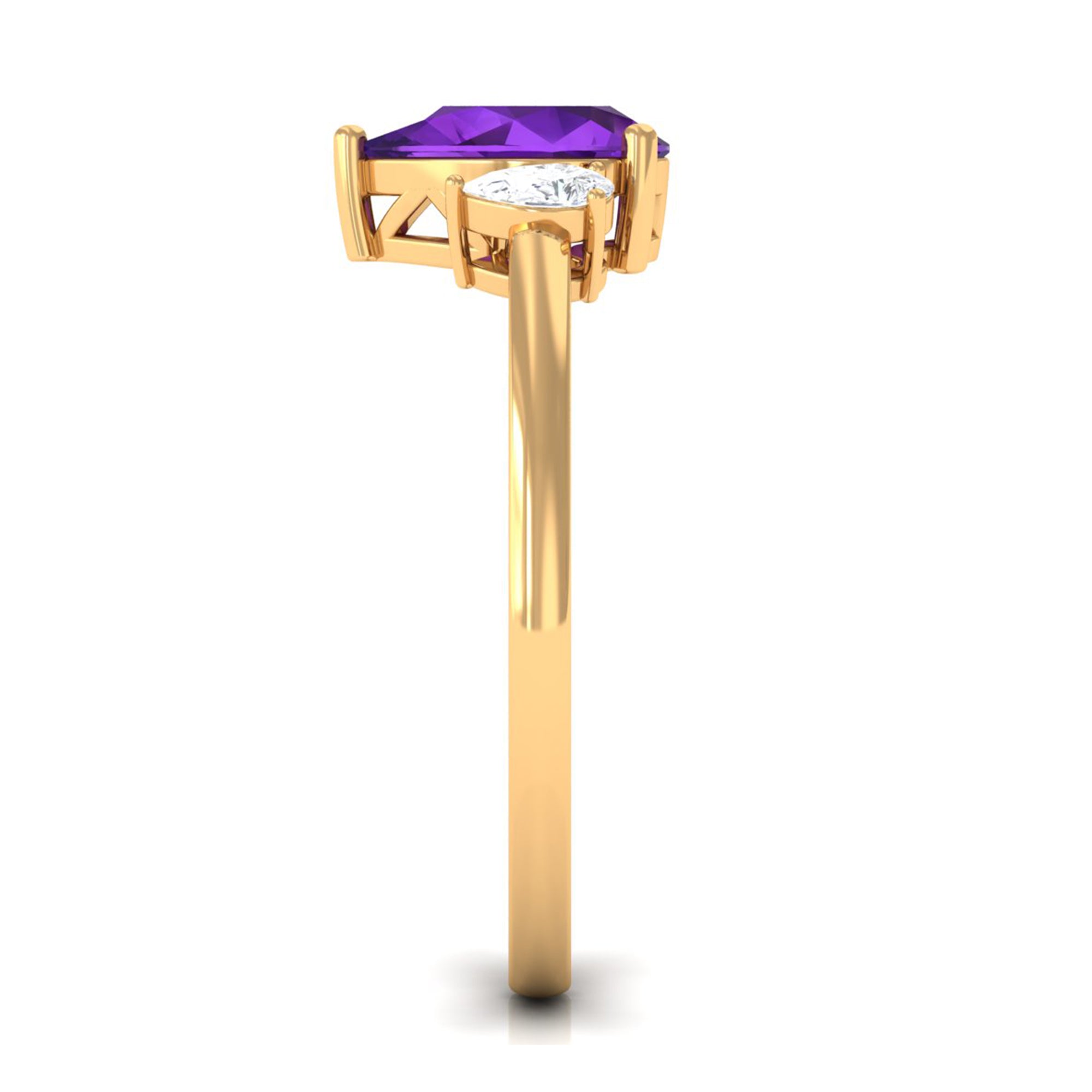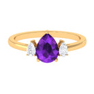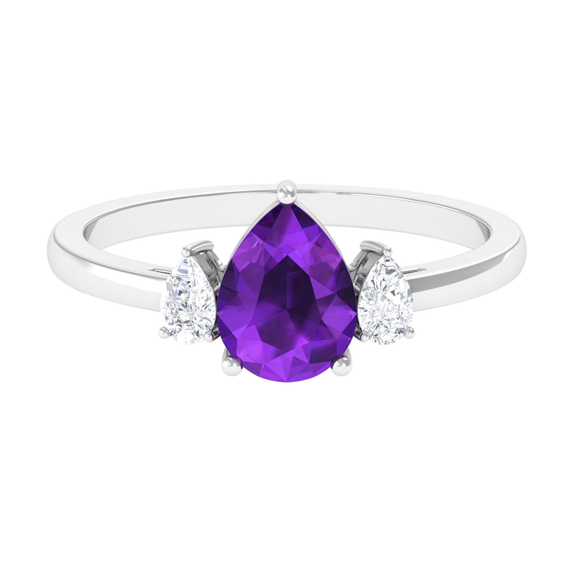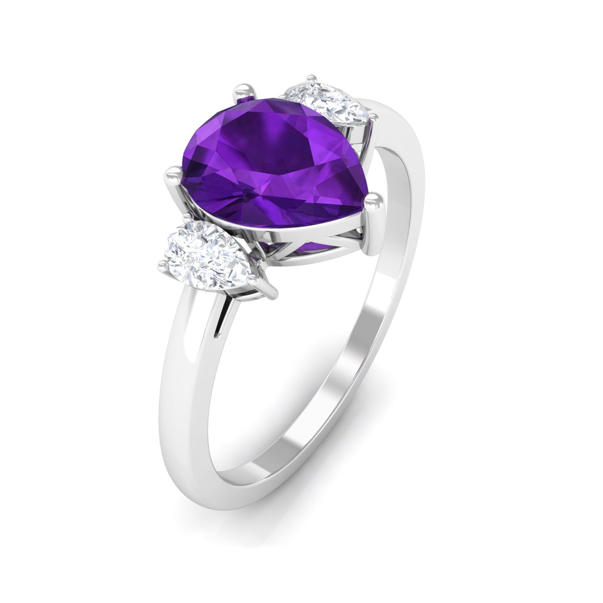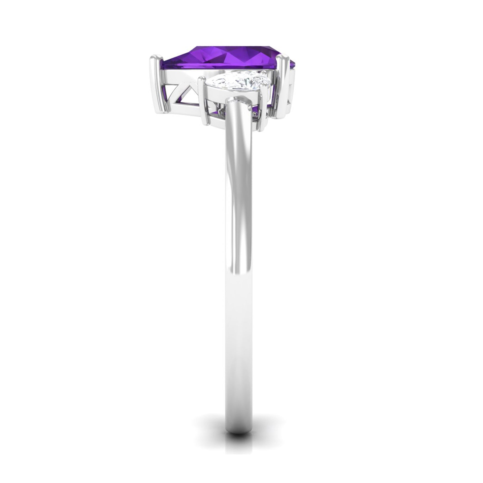 Pear Shape Amethyst Solitaire Ring with Diamond Side Stones