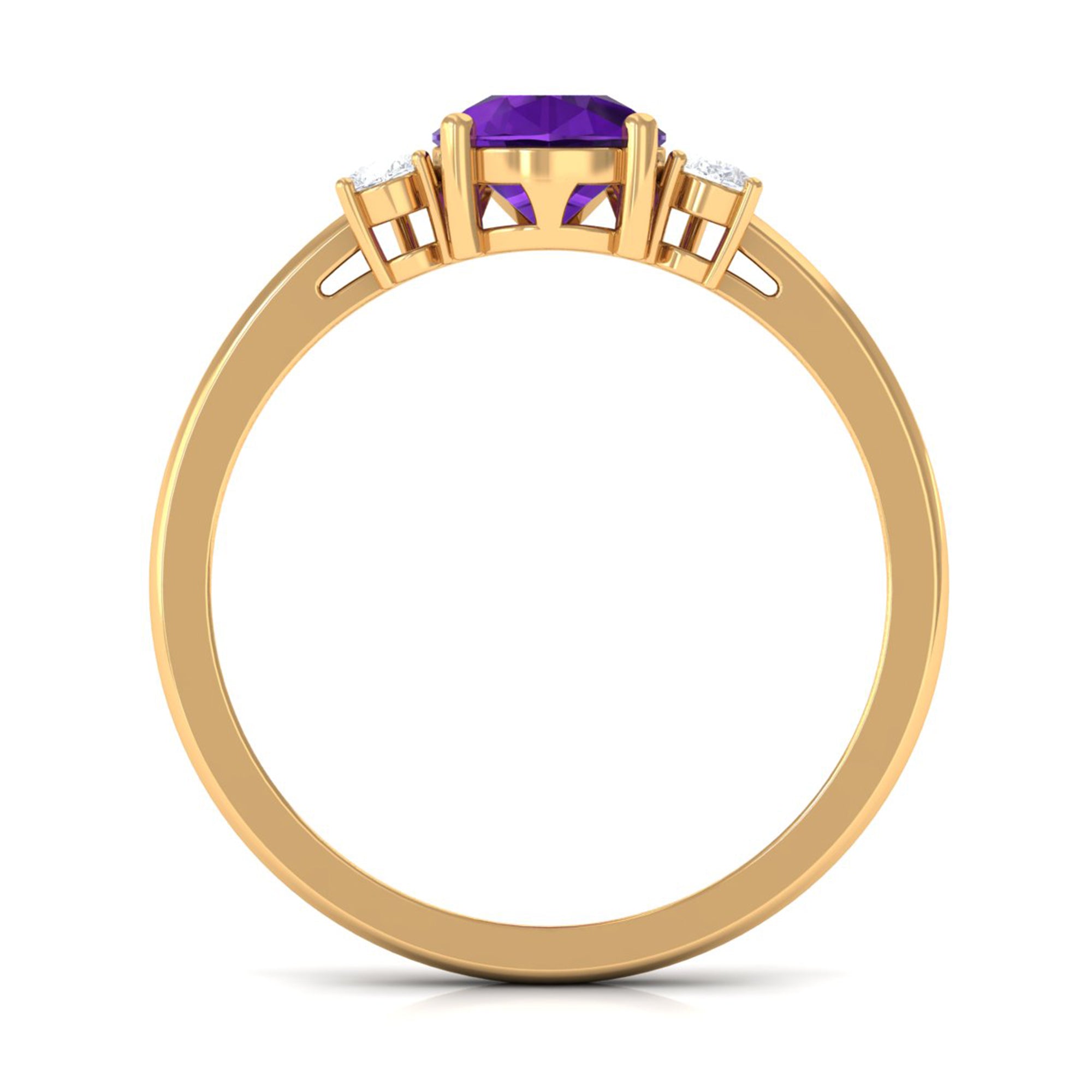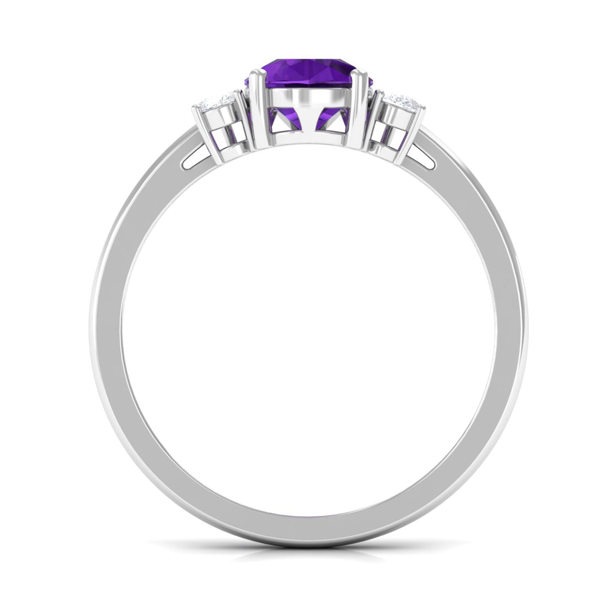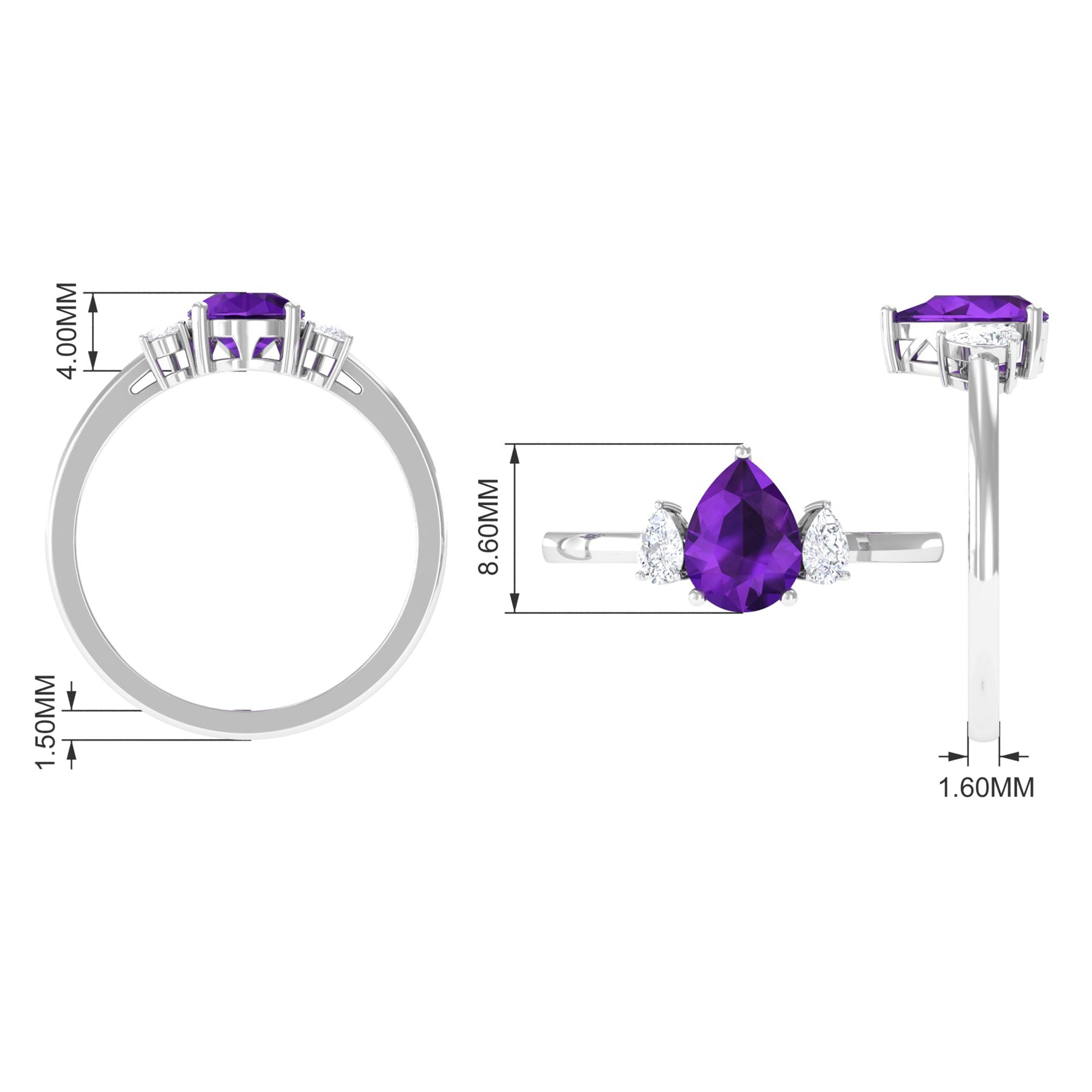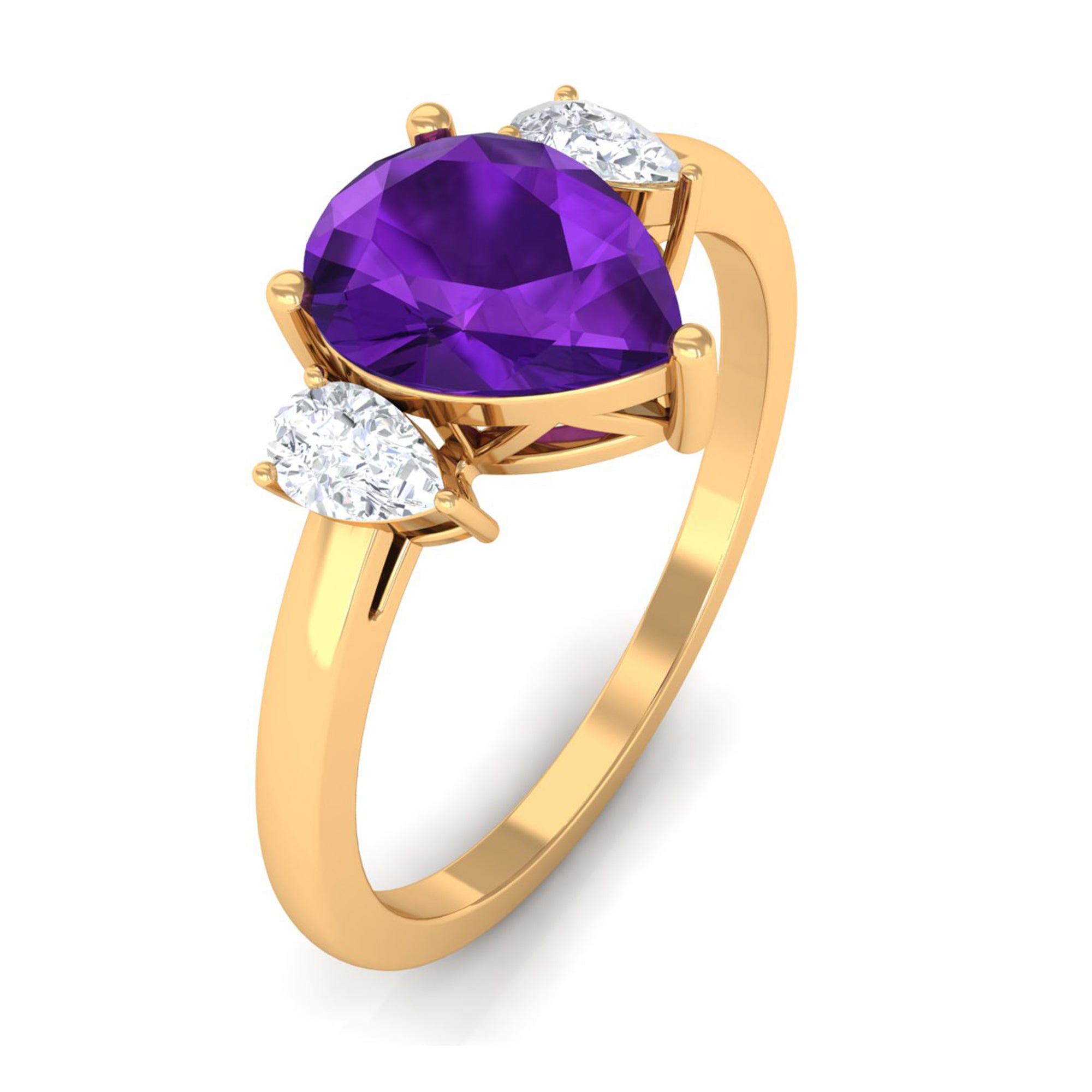 Pear Shape Amethyst Solitaire Ring with Diamond Side Stones