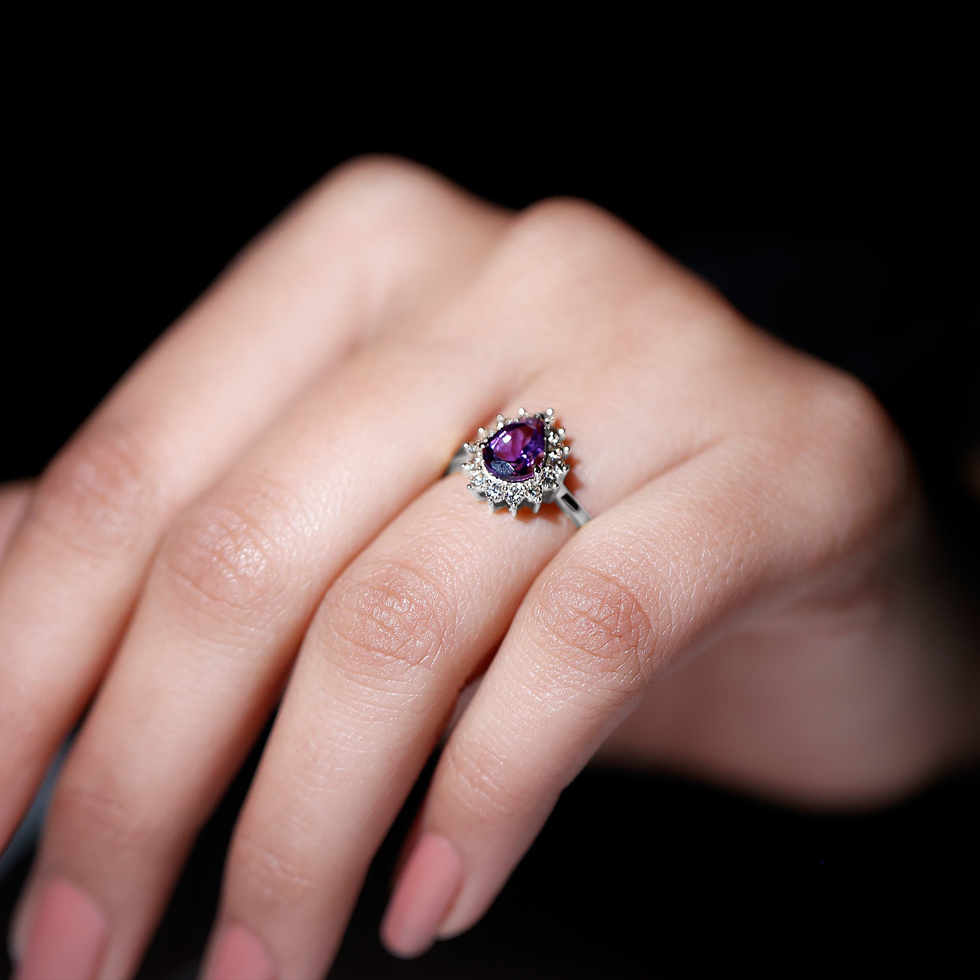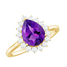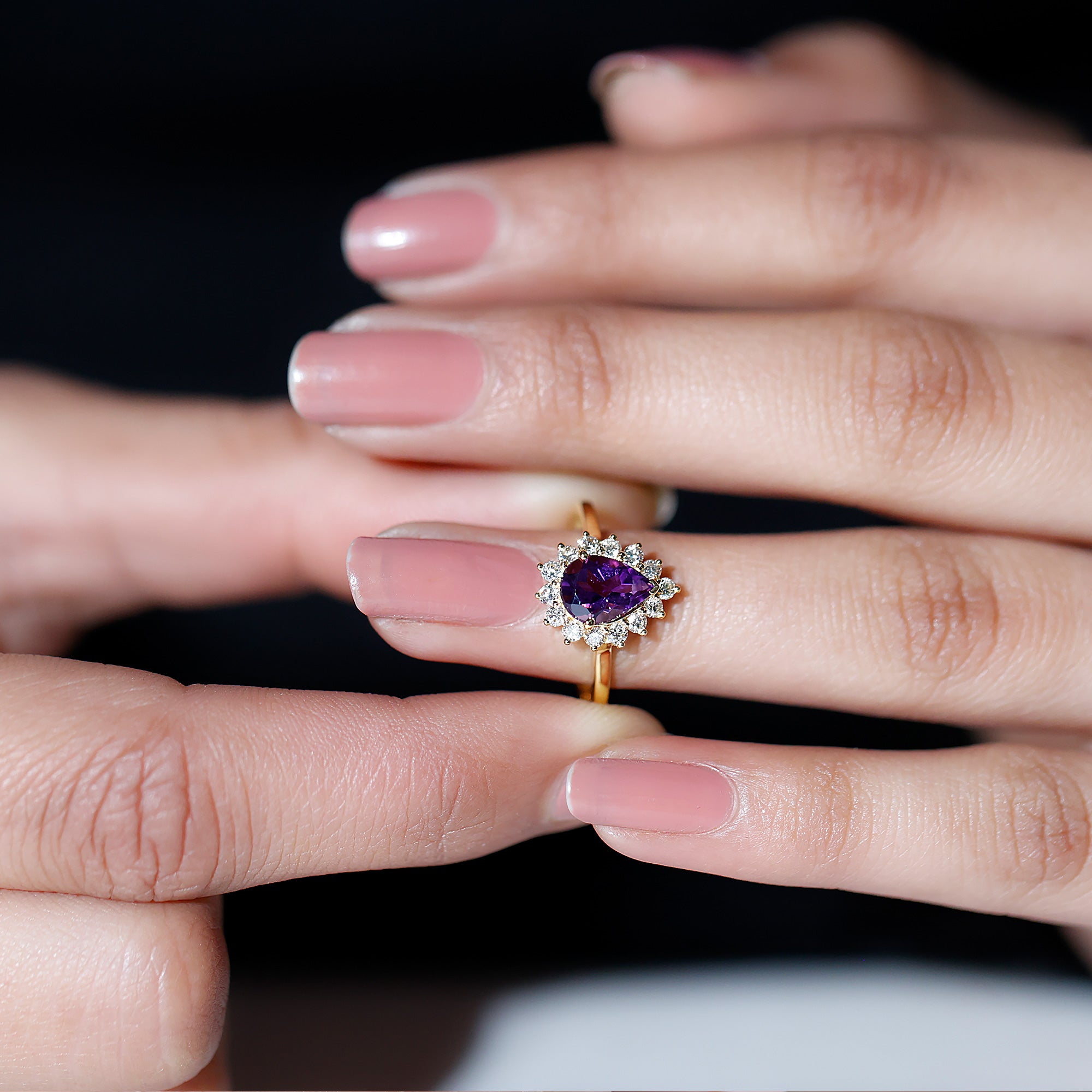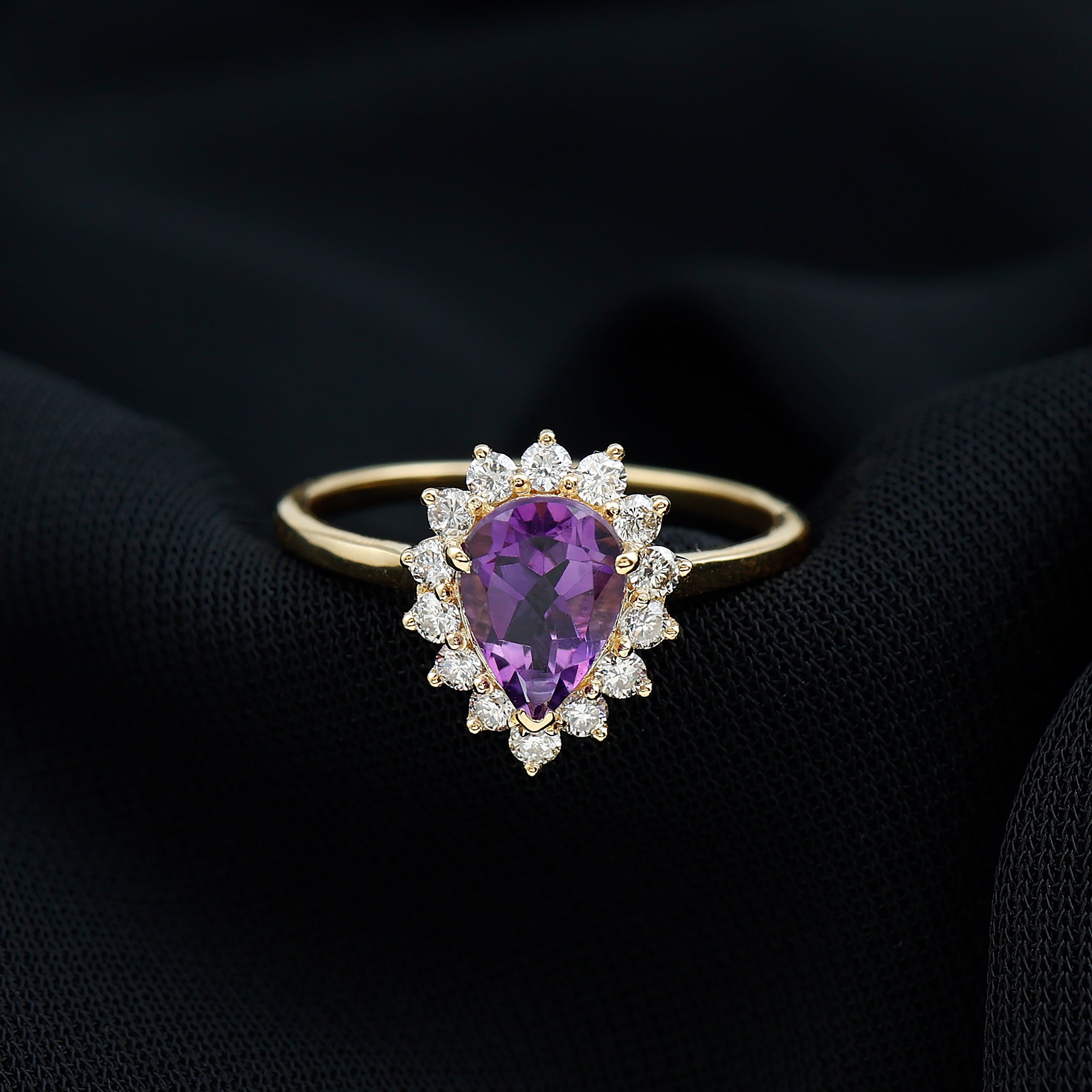 Pear Shape Amethyst Teardrop Ring with Diamond Halo