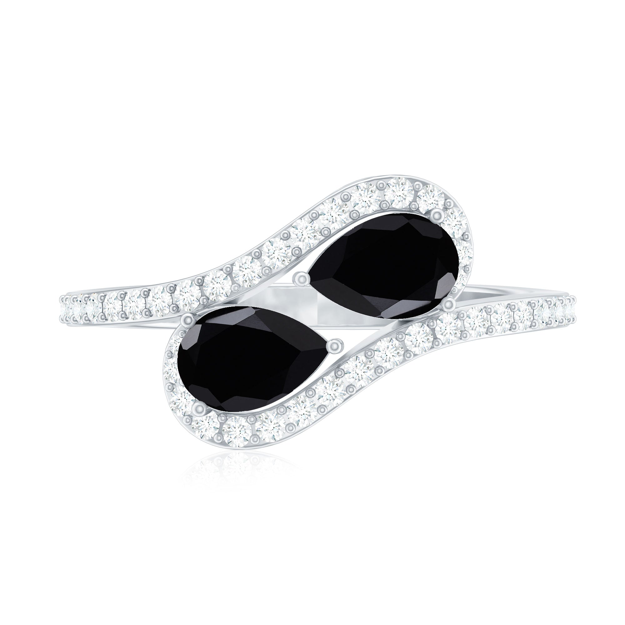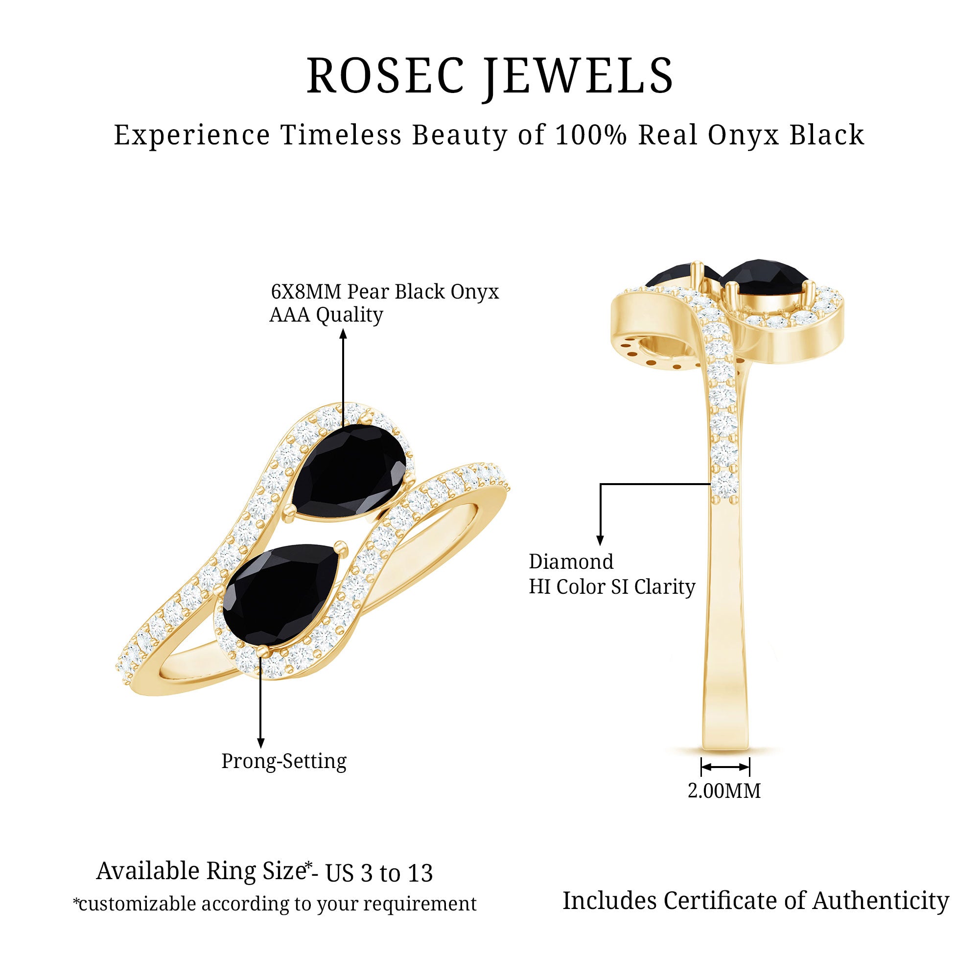 6X8mm Pear Cut Black Onyx Two Stone Engagement Ring with Diamond