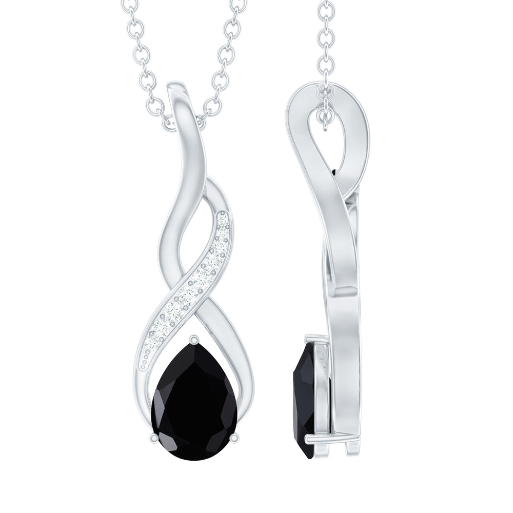 Pear Shape Black Onyx Infinity Pendant Necklace with Moissanite Accent