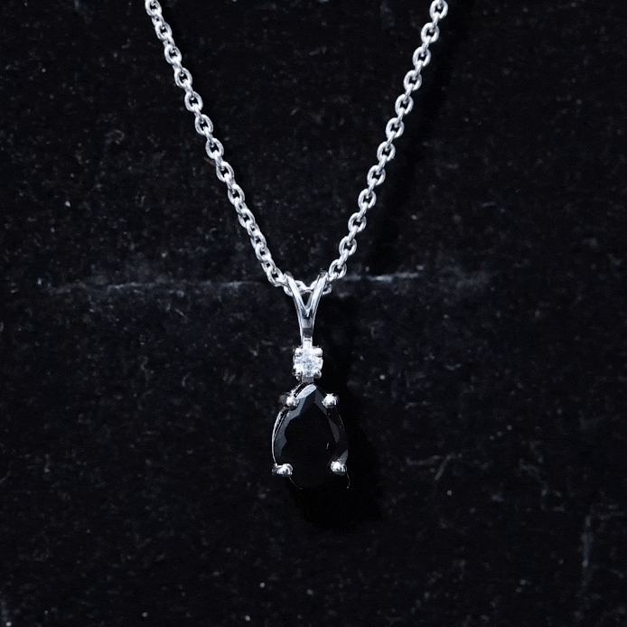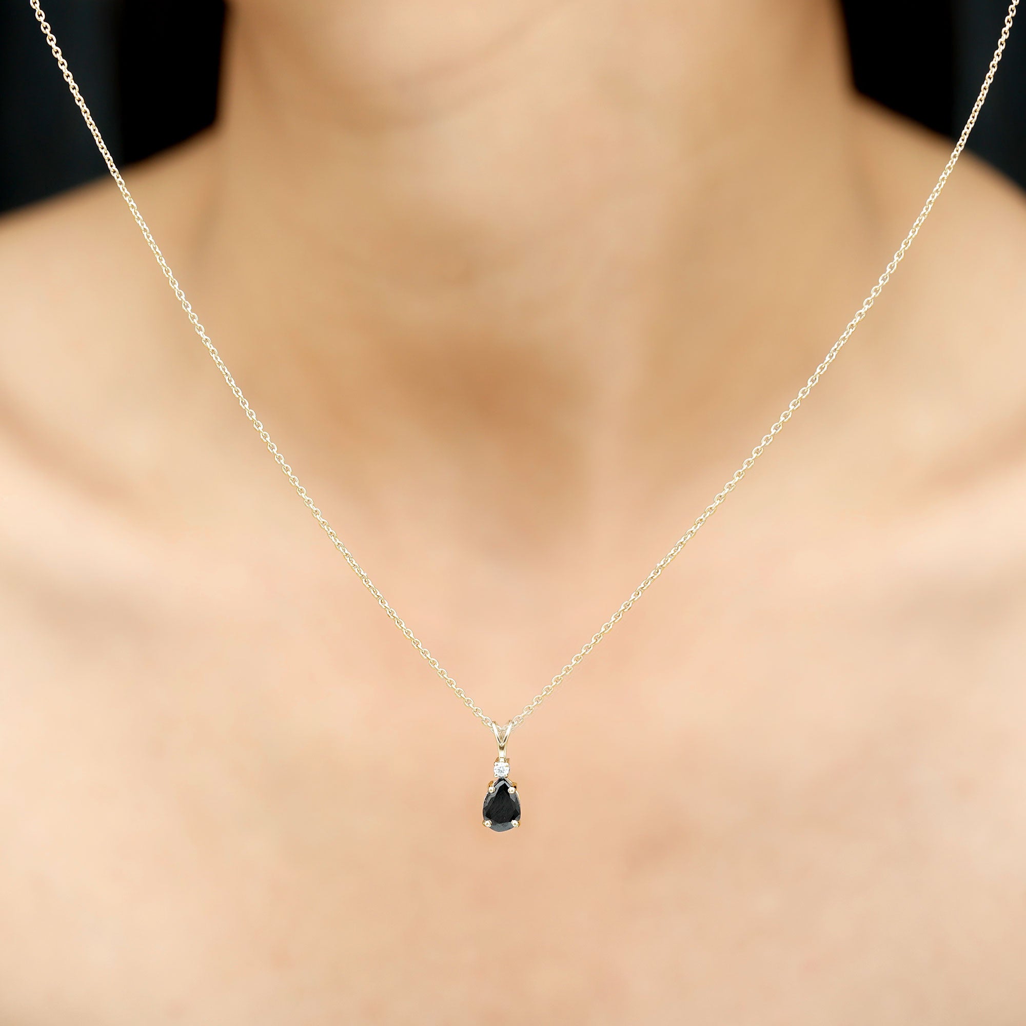 Pear Shape Black Onyx Solitaire Pendant with Diamond
