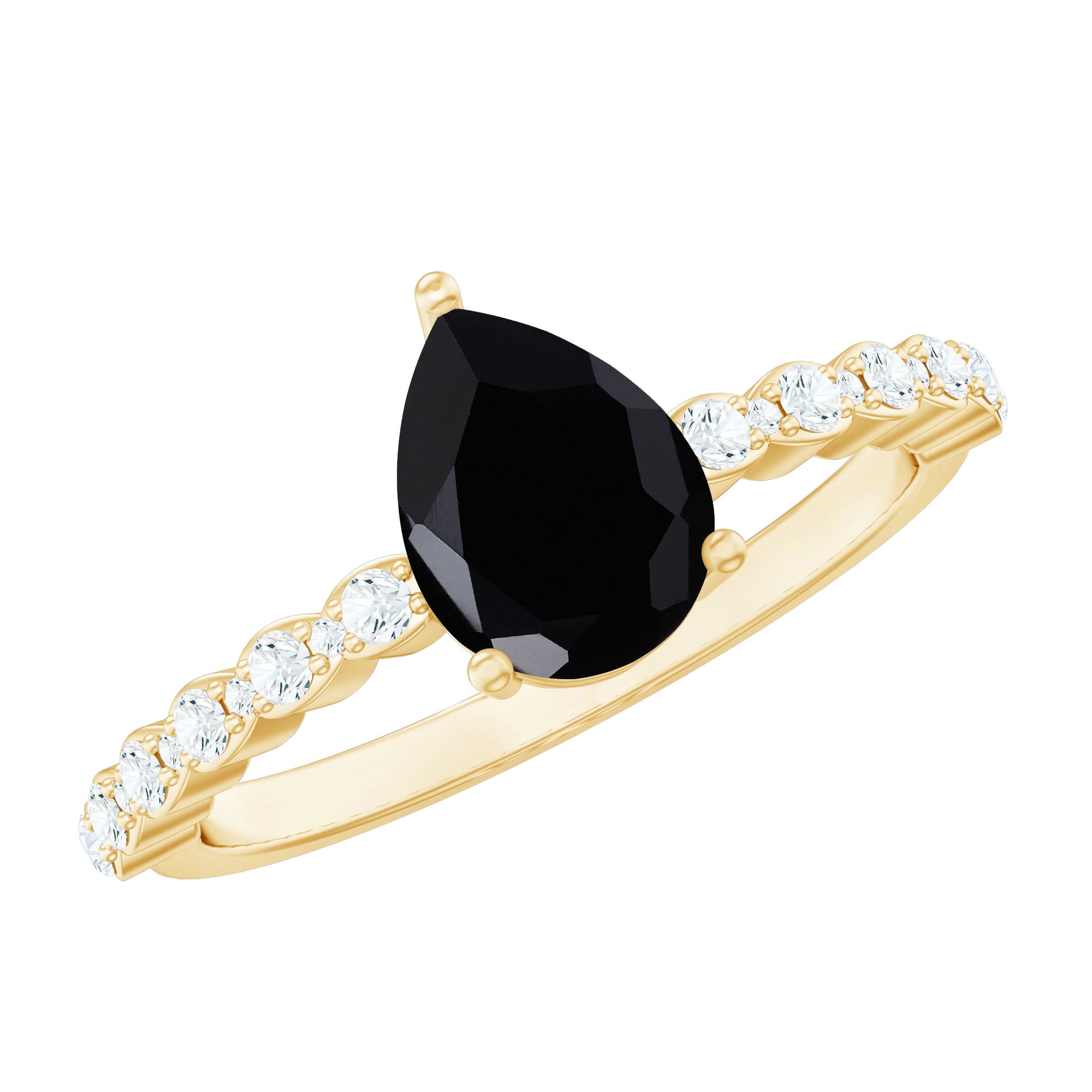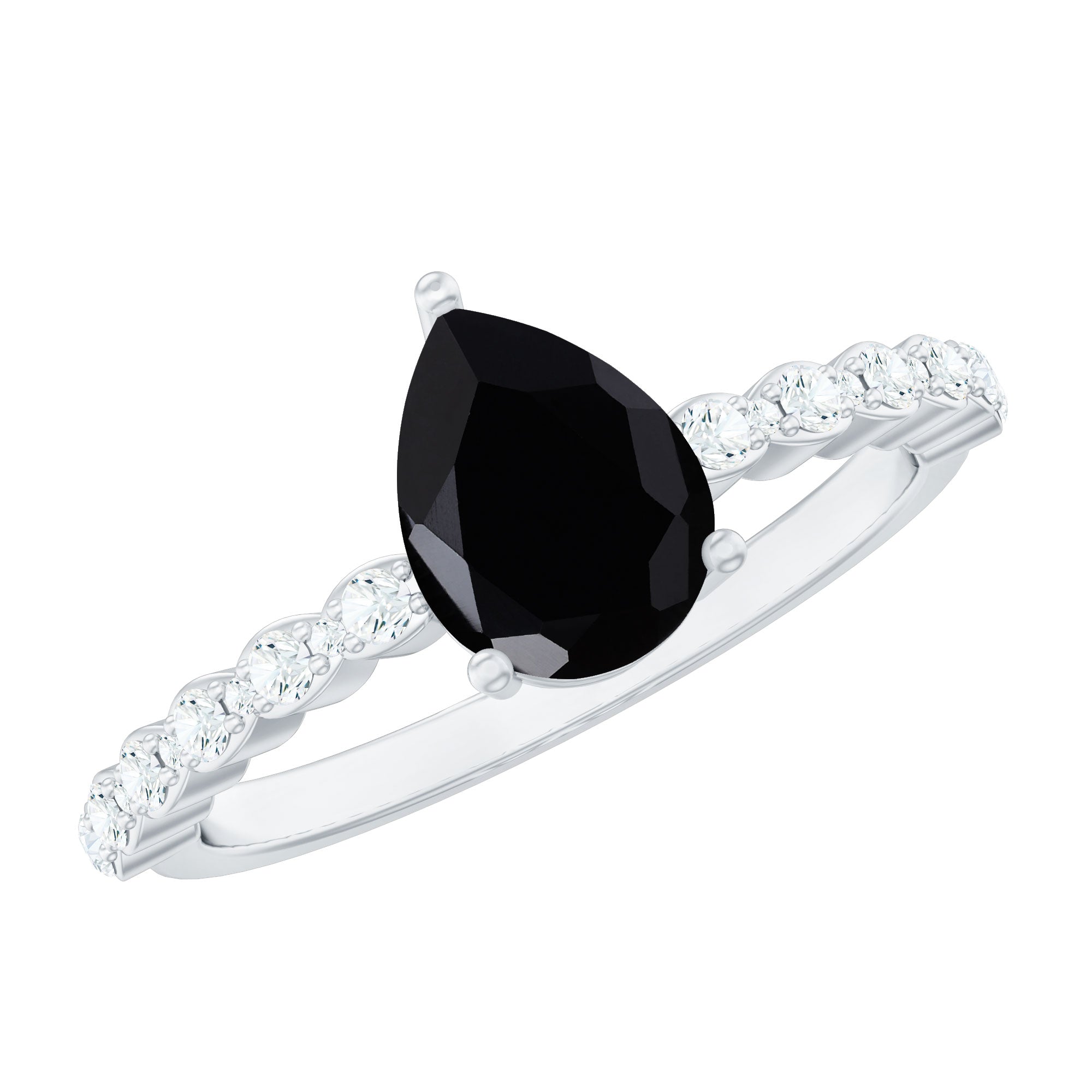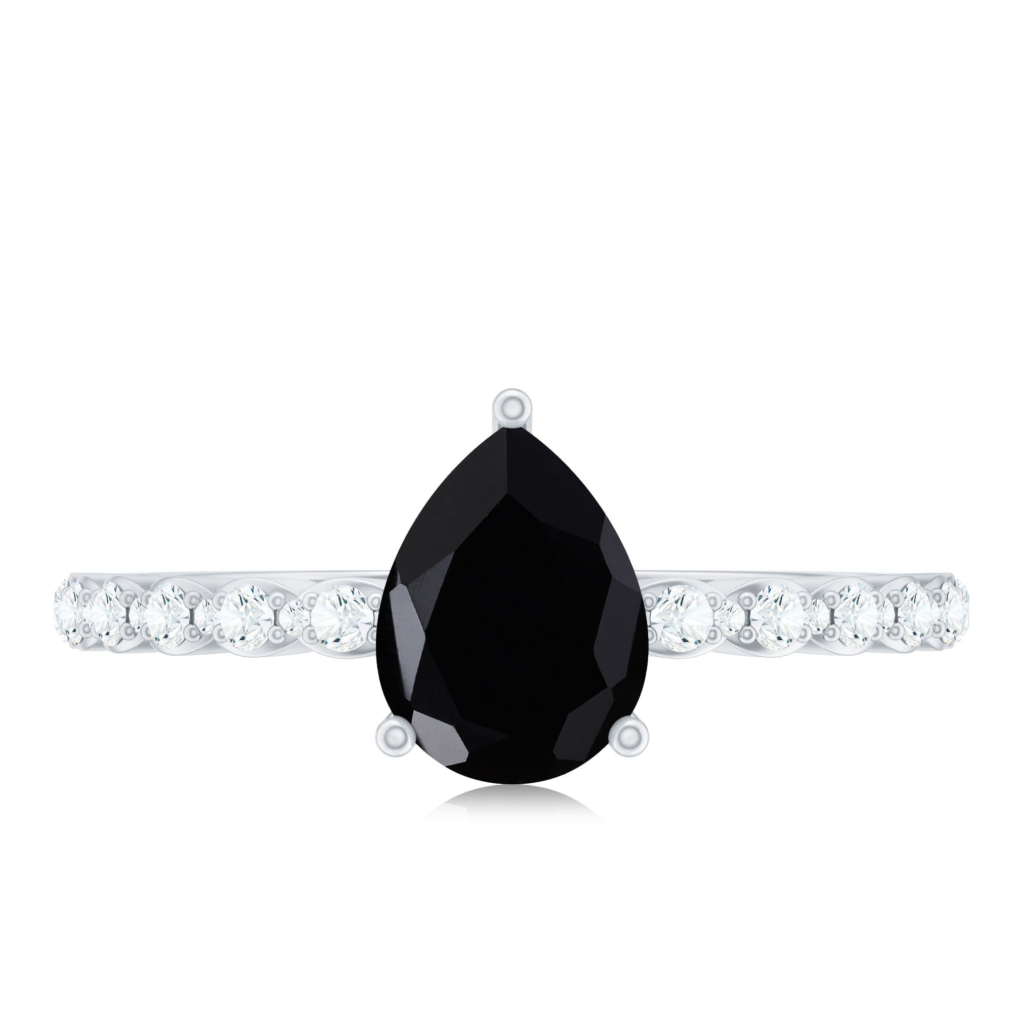 Pear Shape Black Onyx Solitaire Promise Ring with Diamond