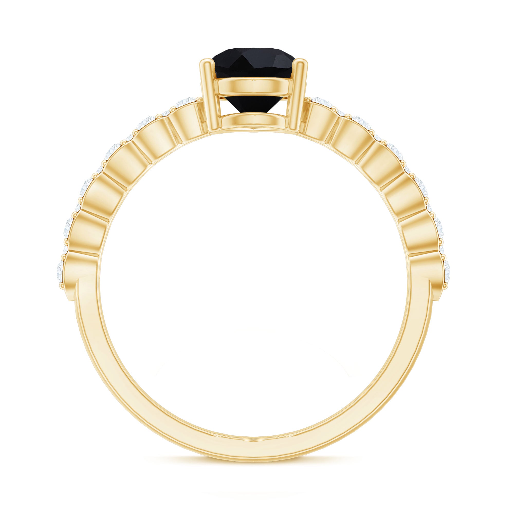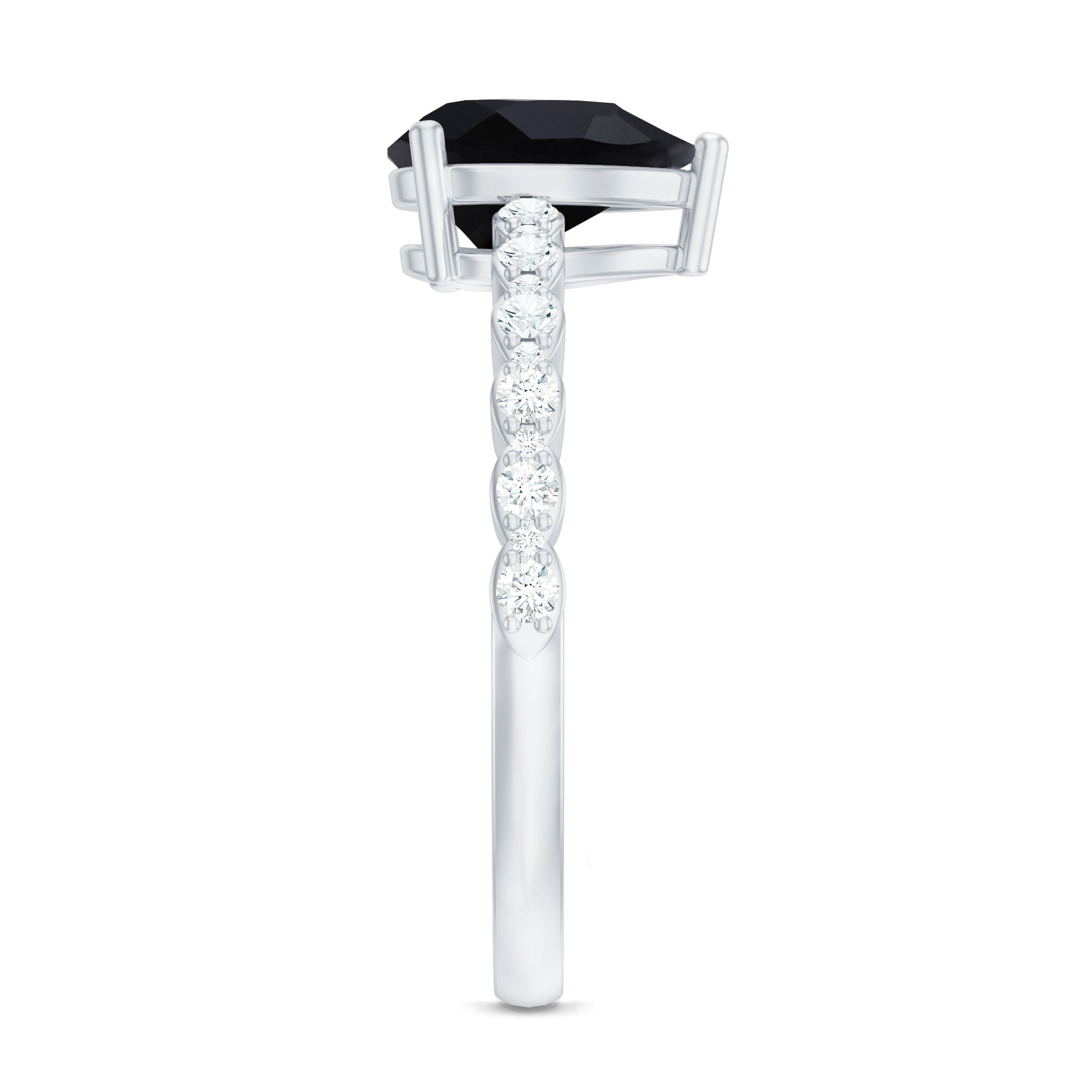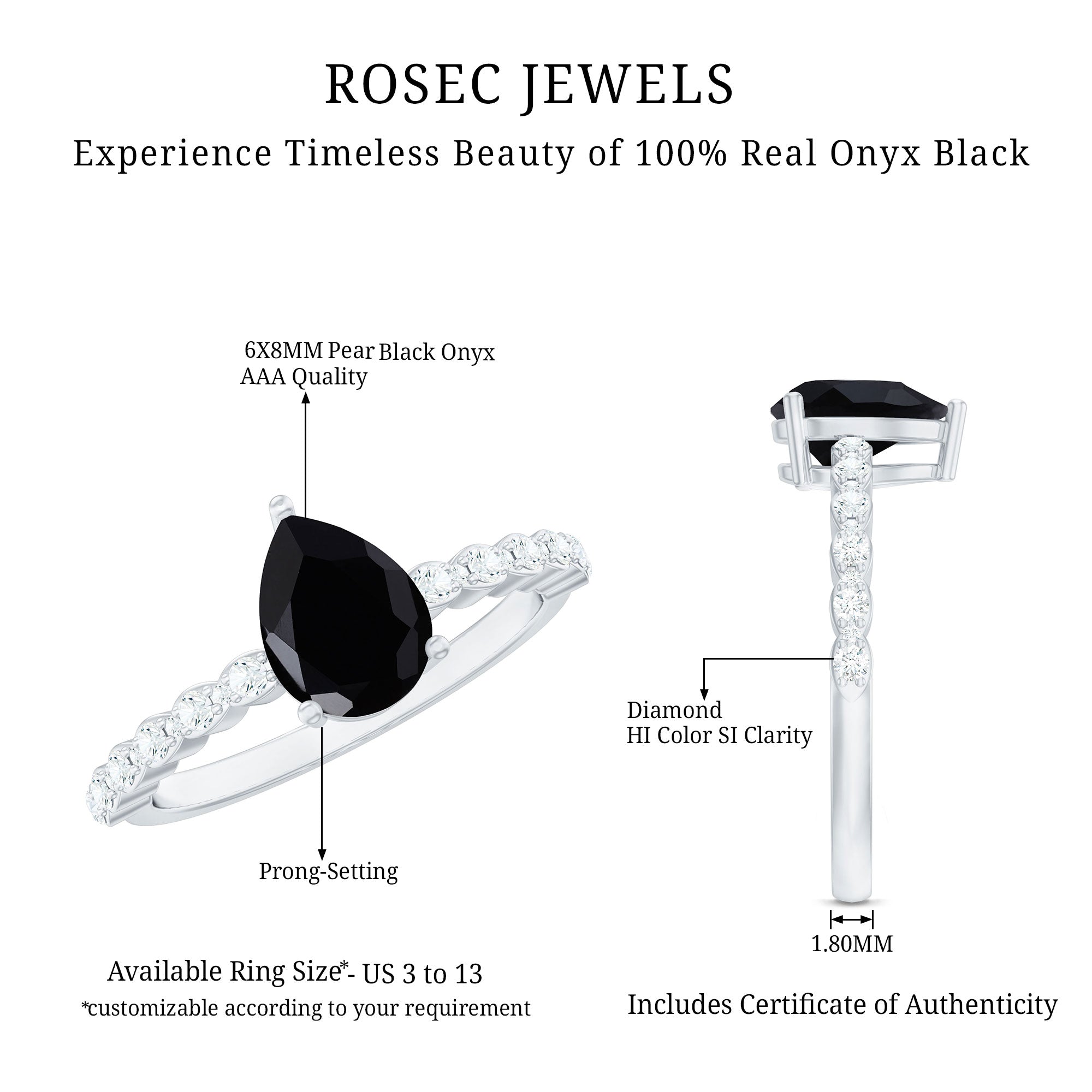 Pear Shape Black Onyx Solitaire Promise Ring with Diamond