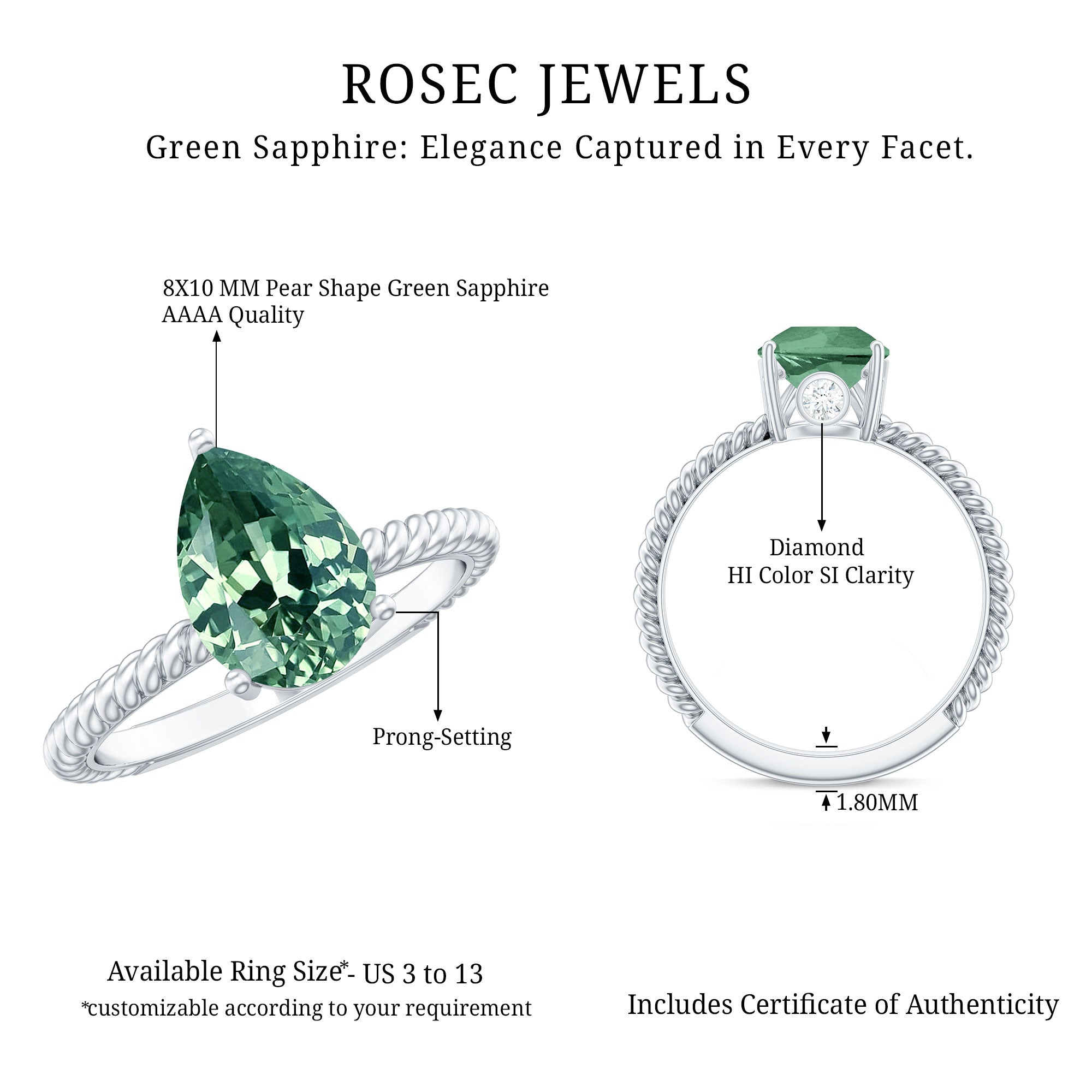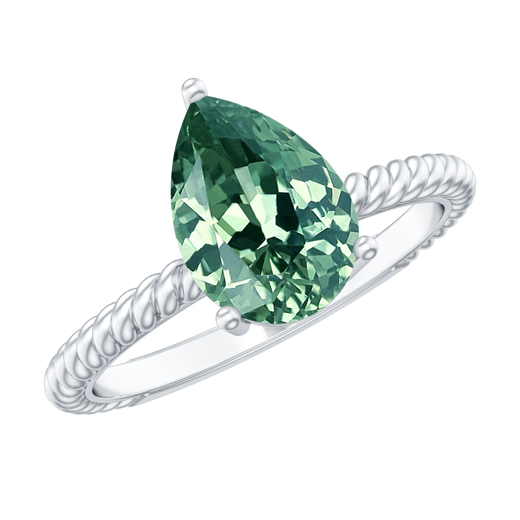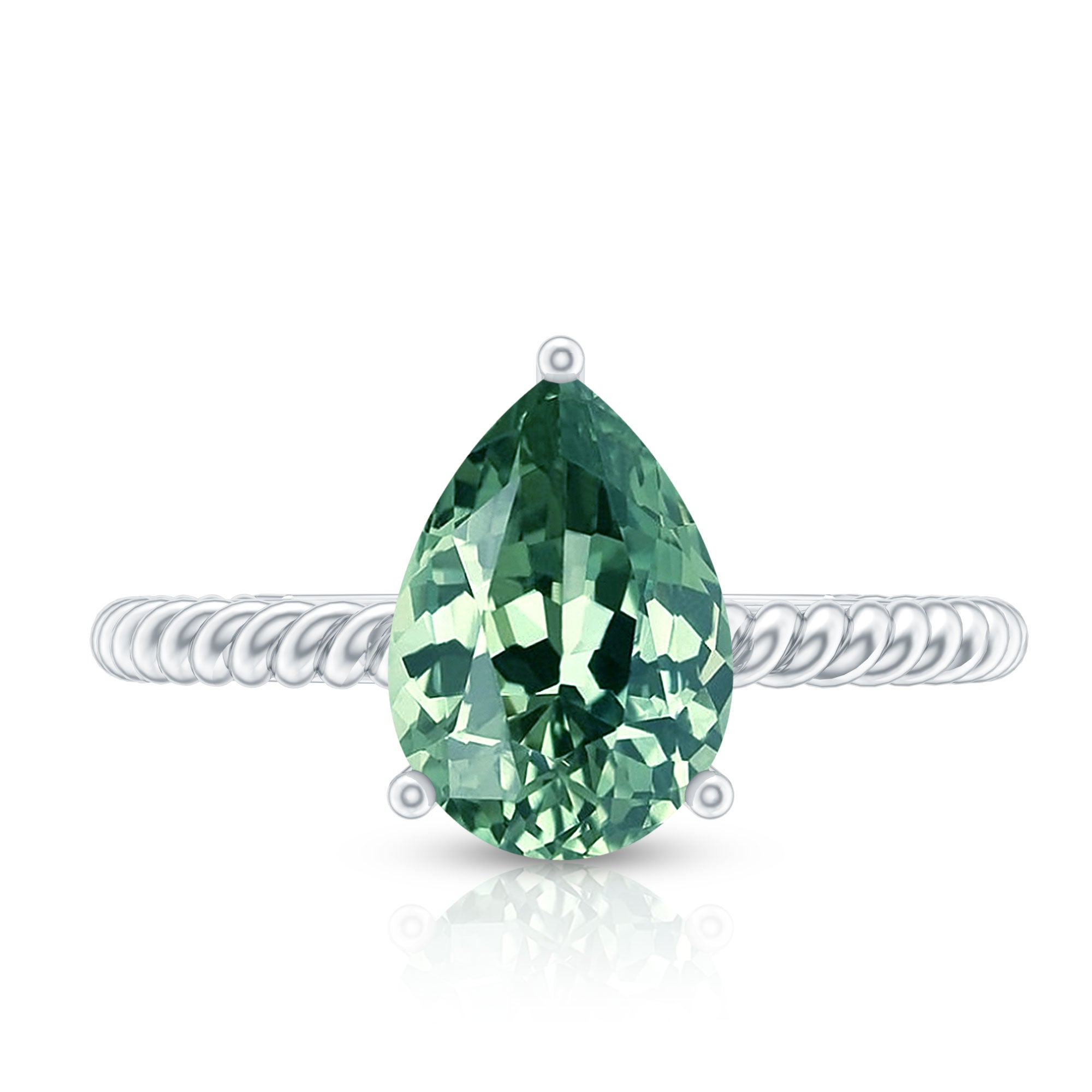 Pear Shape Created Green Sapphire Solitaire Engagement Ring