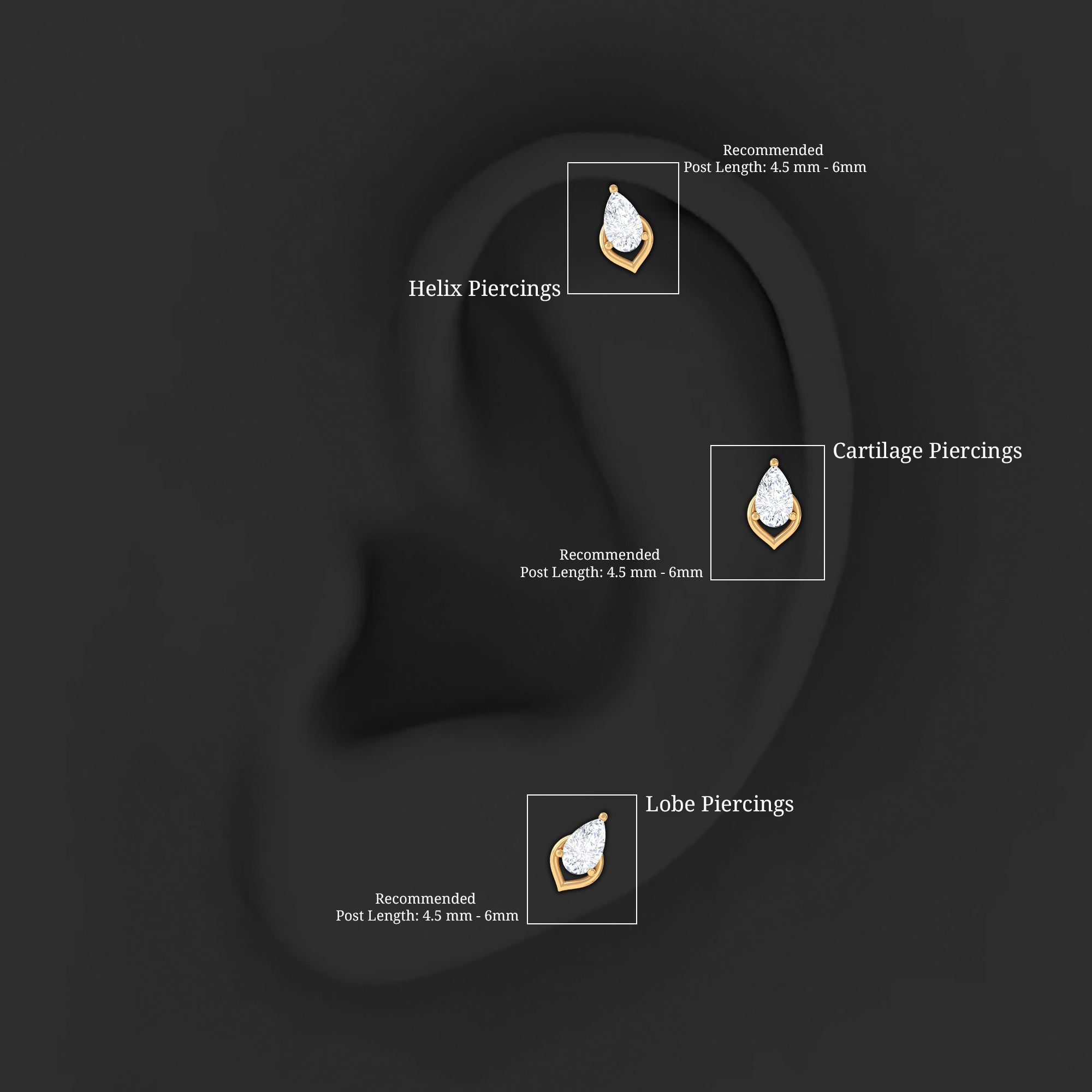 Pear Shape Diamond Solitaire Earring for Helix Piercing