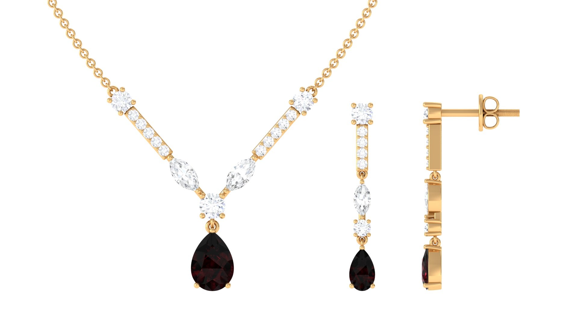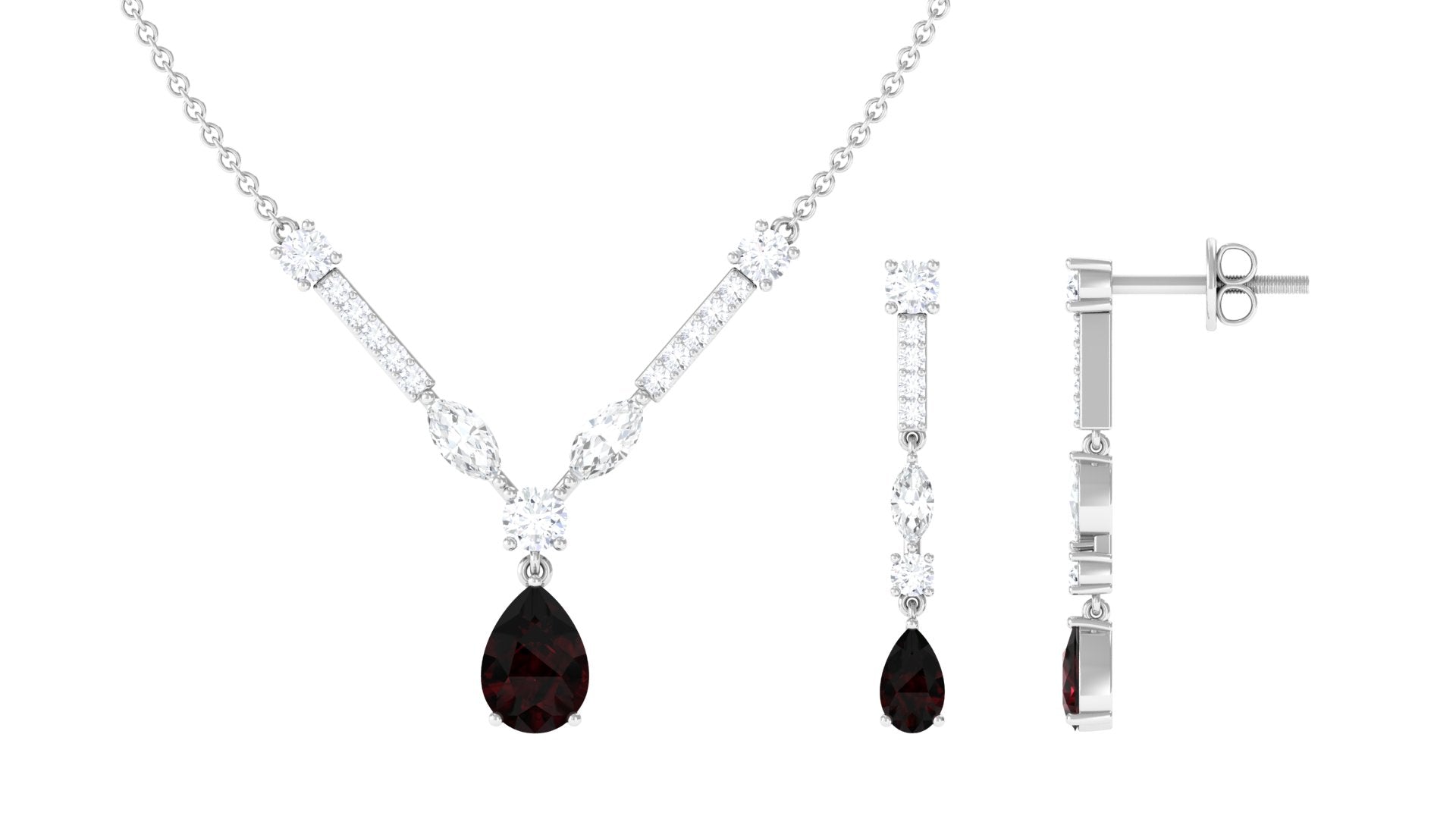 Pear Shape Garnet and Moissanite Drop Jewelry Set