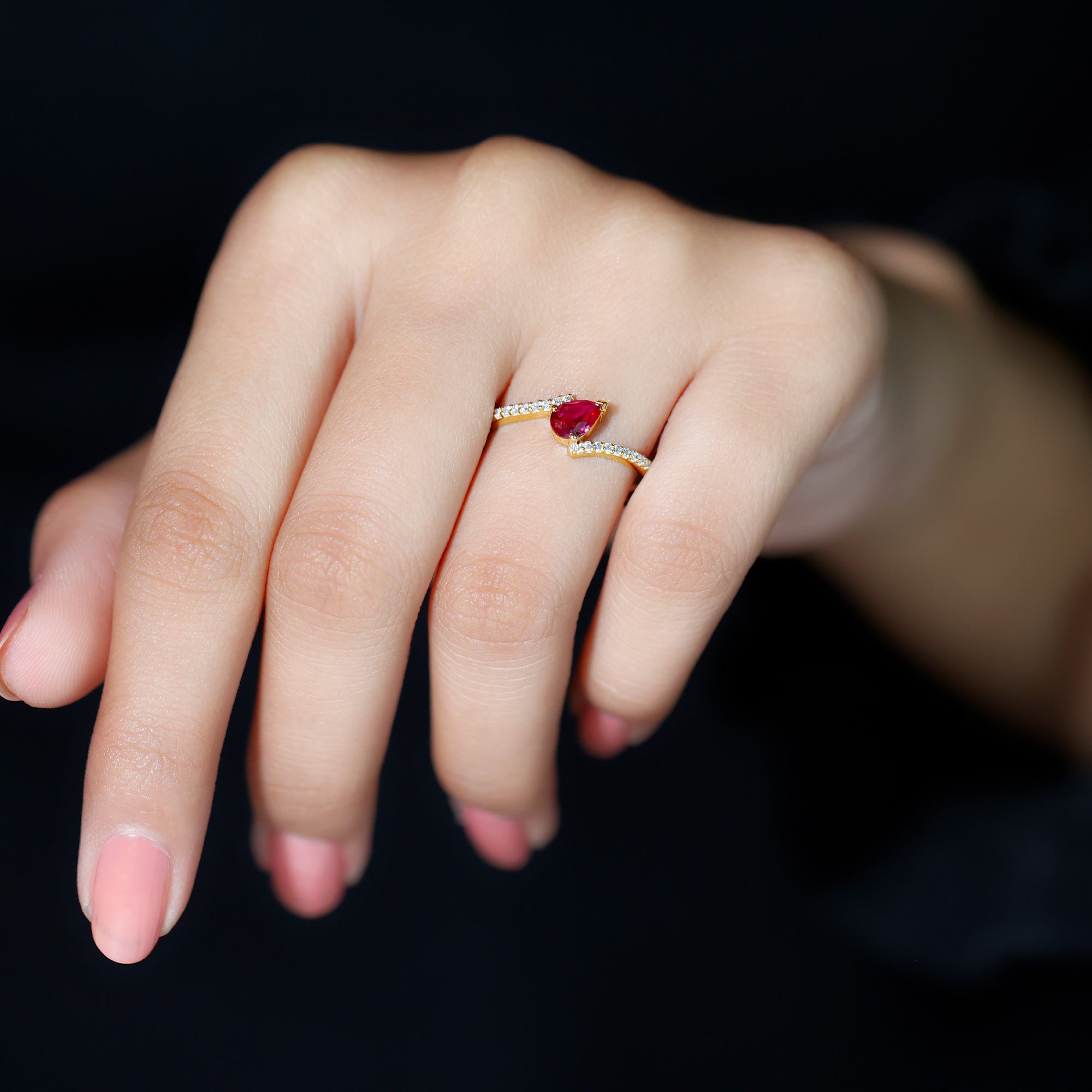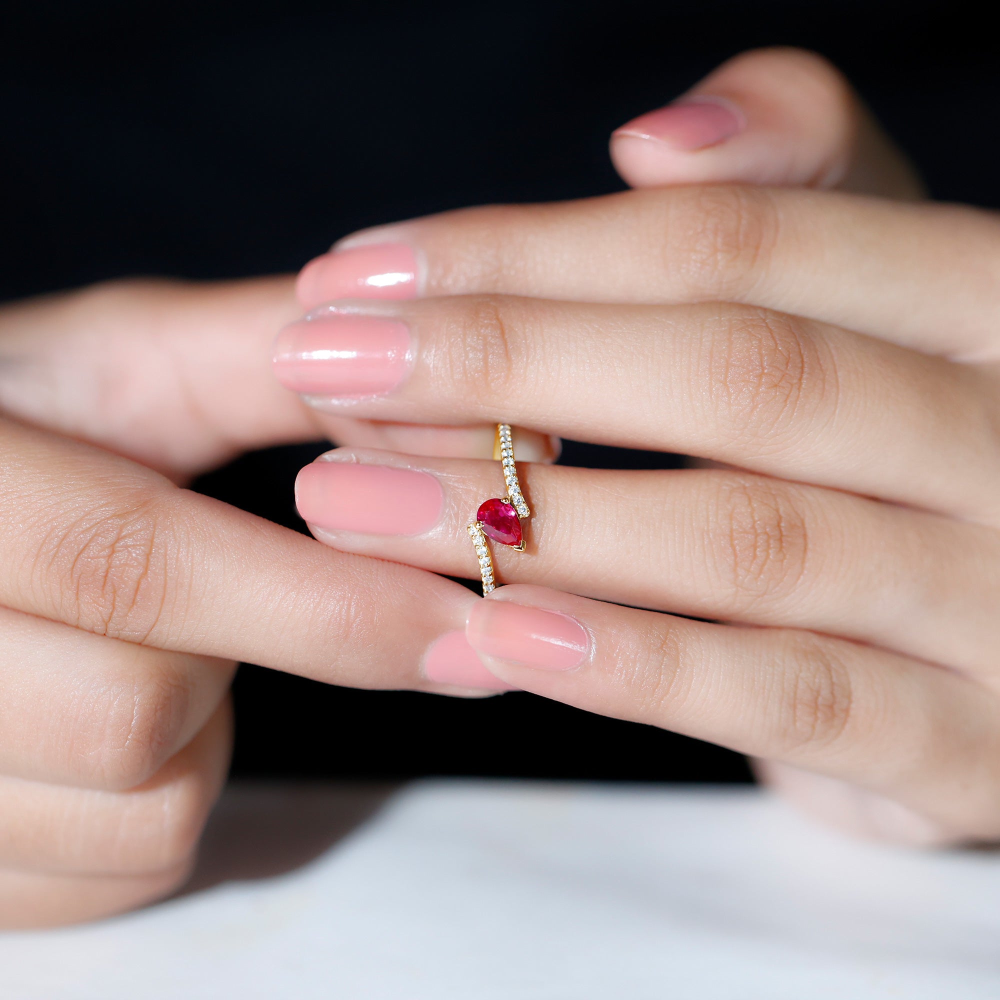 Pear Shape Lab Grown Ruby and Diamond Bypass Promise Ring