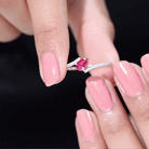 This elegant promise ring features a tilted pear shaped created ruby and sparkling Diamond gemstones set on bypass shank. The deep red hue of the created ruby is complemented by the brilliance of the Diamond stones, which are expertly placed to highlight the beauty of the center stone. With its timeless design and exceptional quality, this created ruby promise ring is a beautiful and meaningful way to symbolize your love and commitment.
