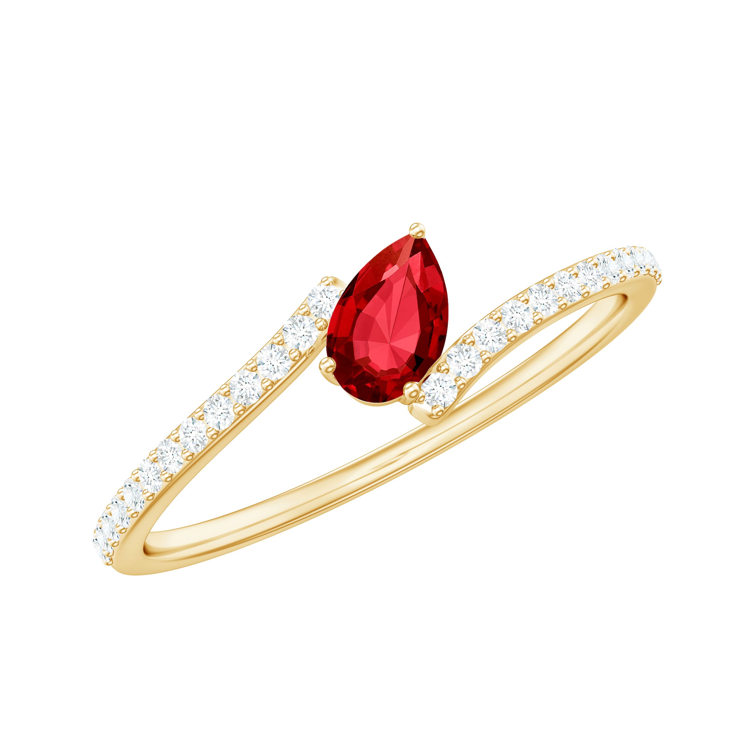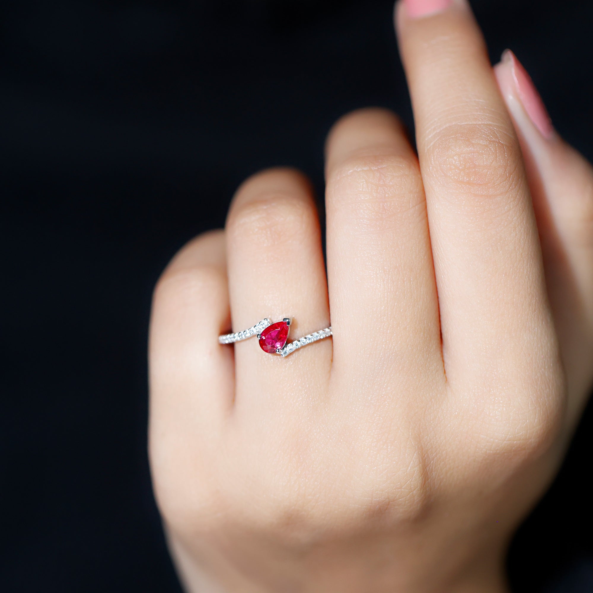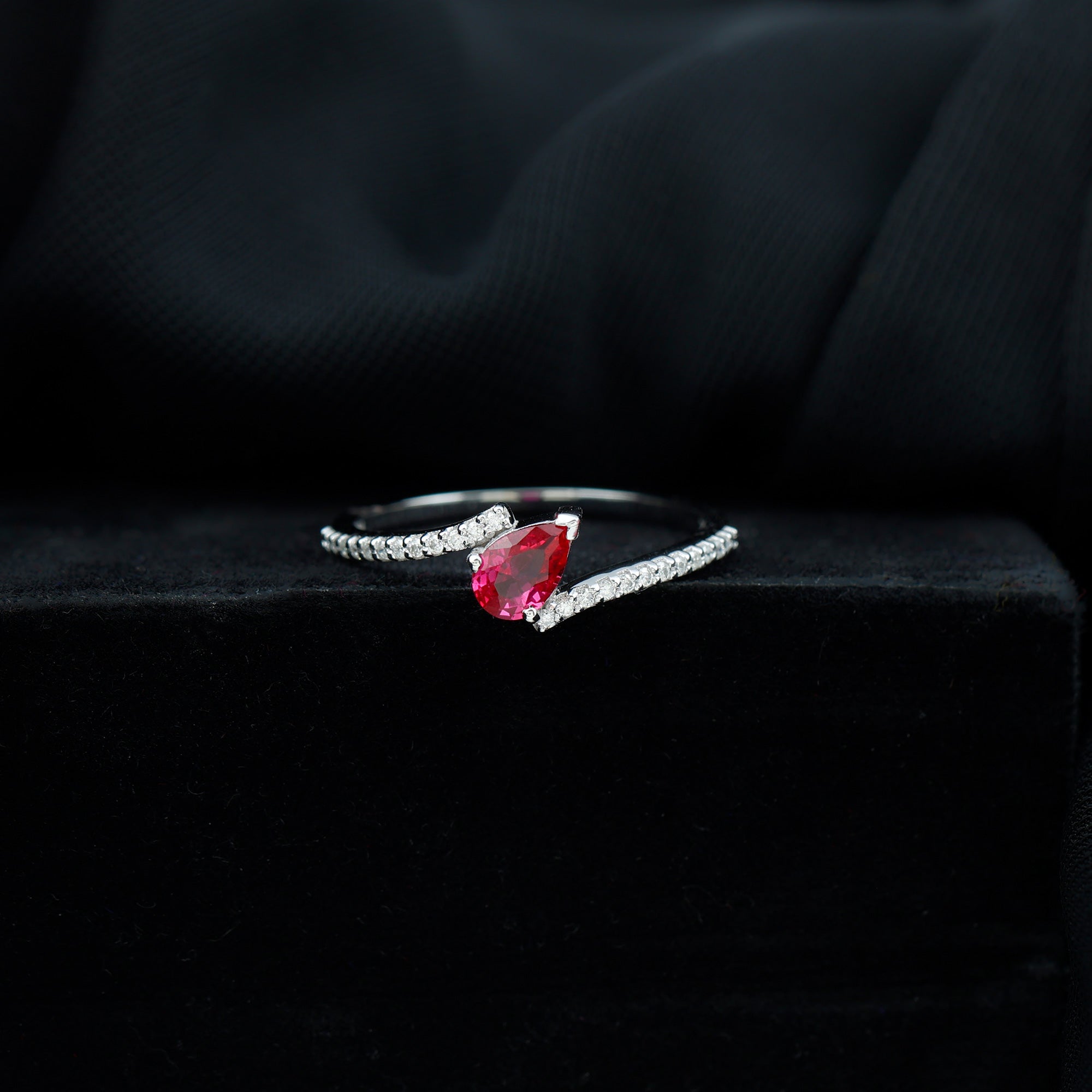 Pear Shape Lab Grown Ruby and Diamond Bypass Promise Ring