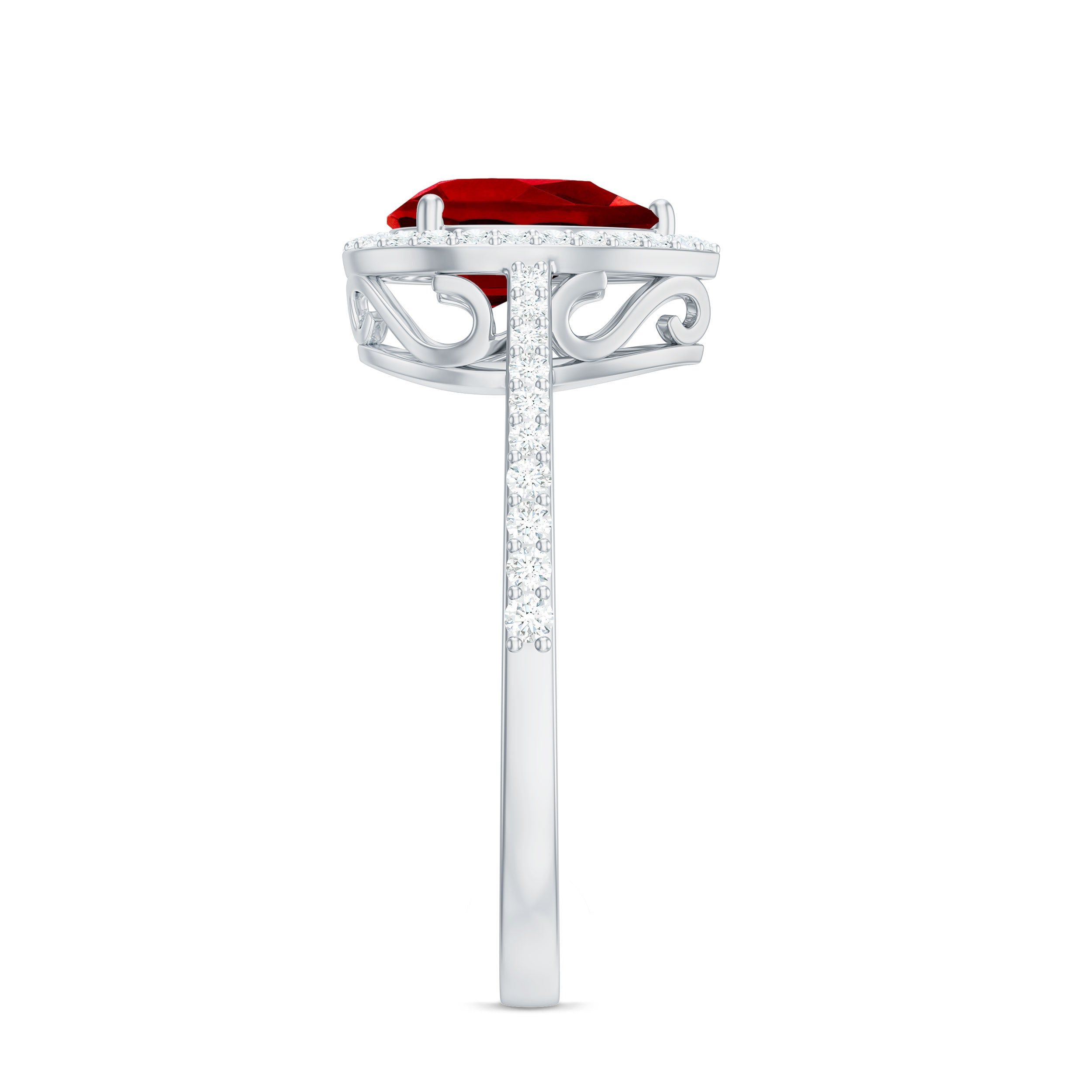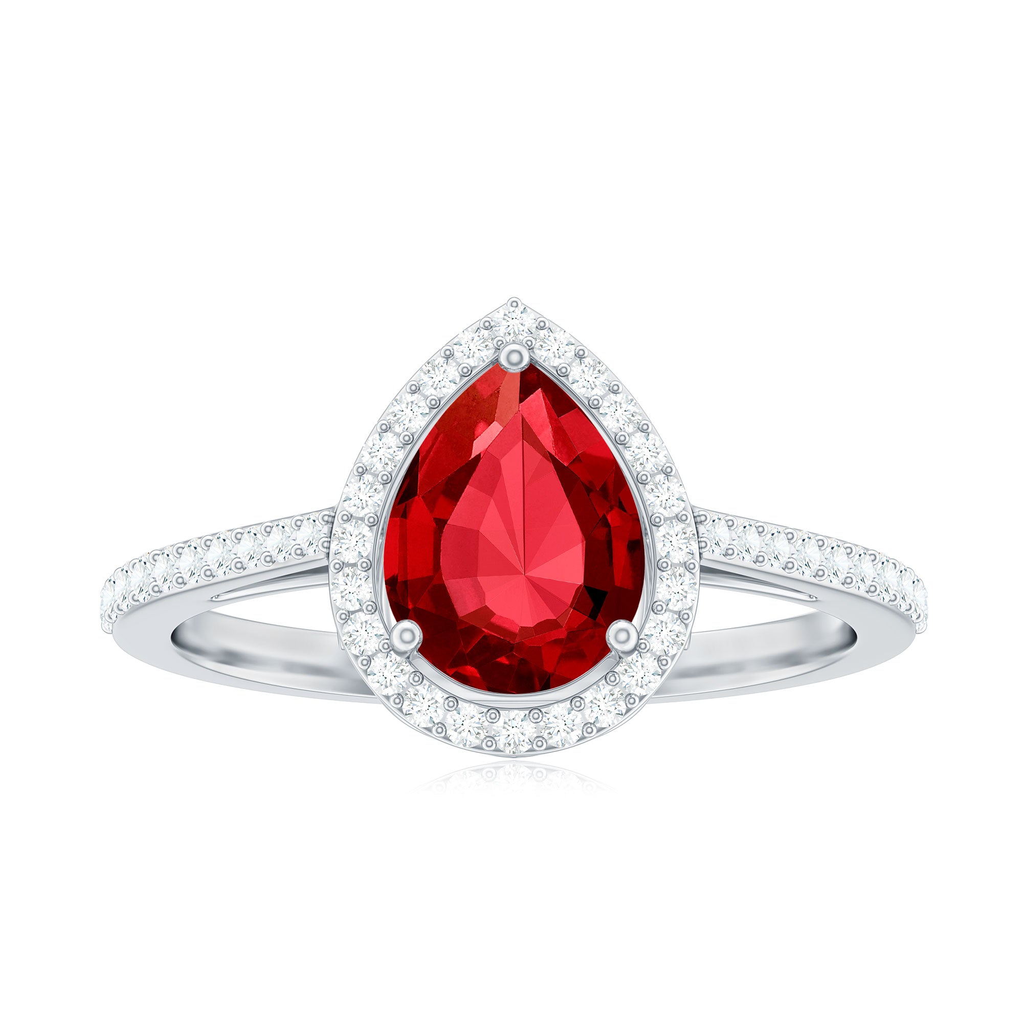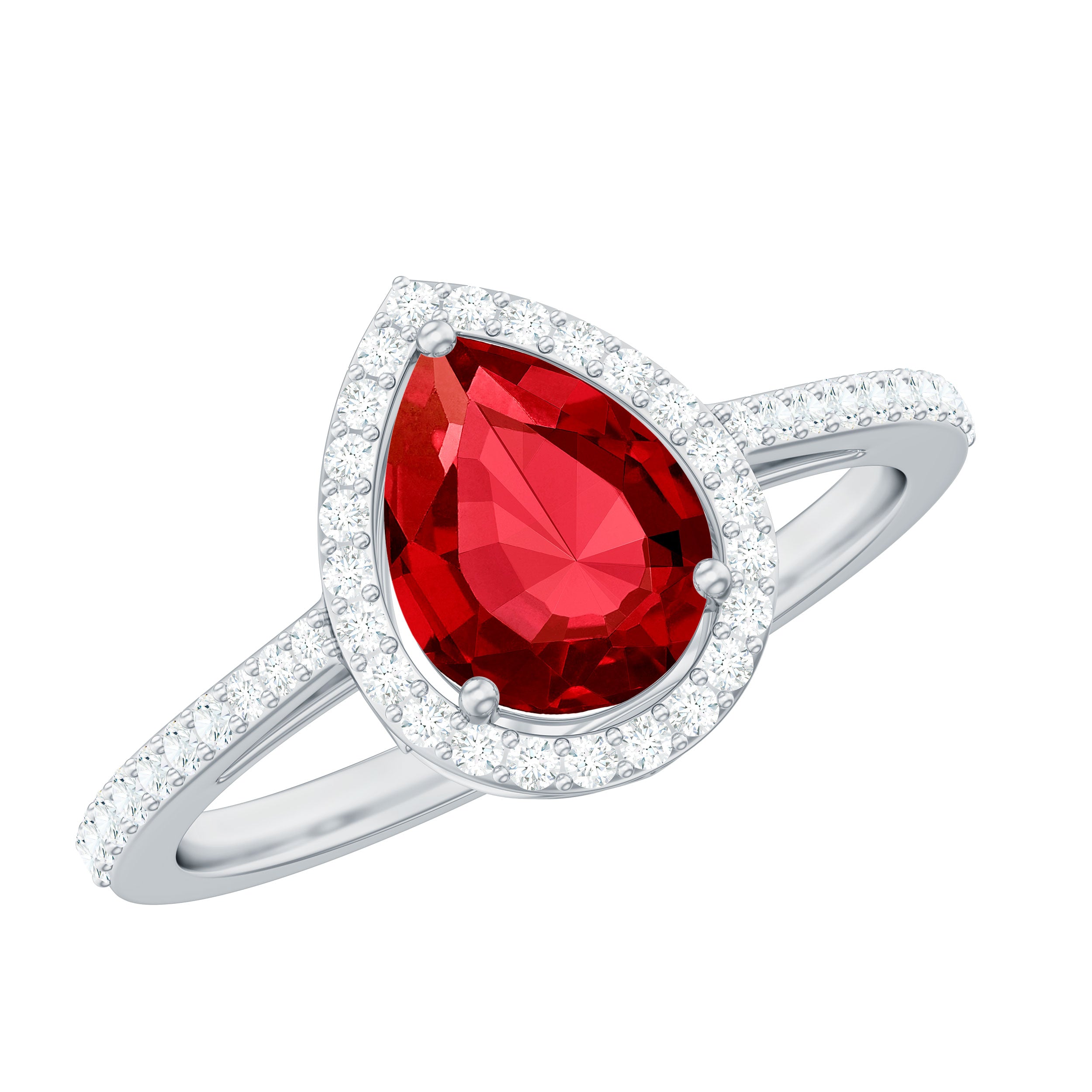 Pear Shape Lab Grown Ruby Teardrop Engagement Ring with Diamond Halo