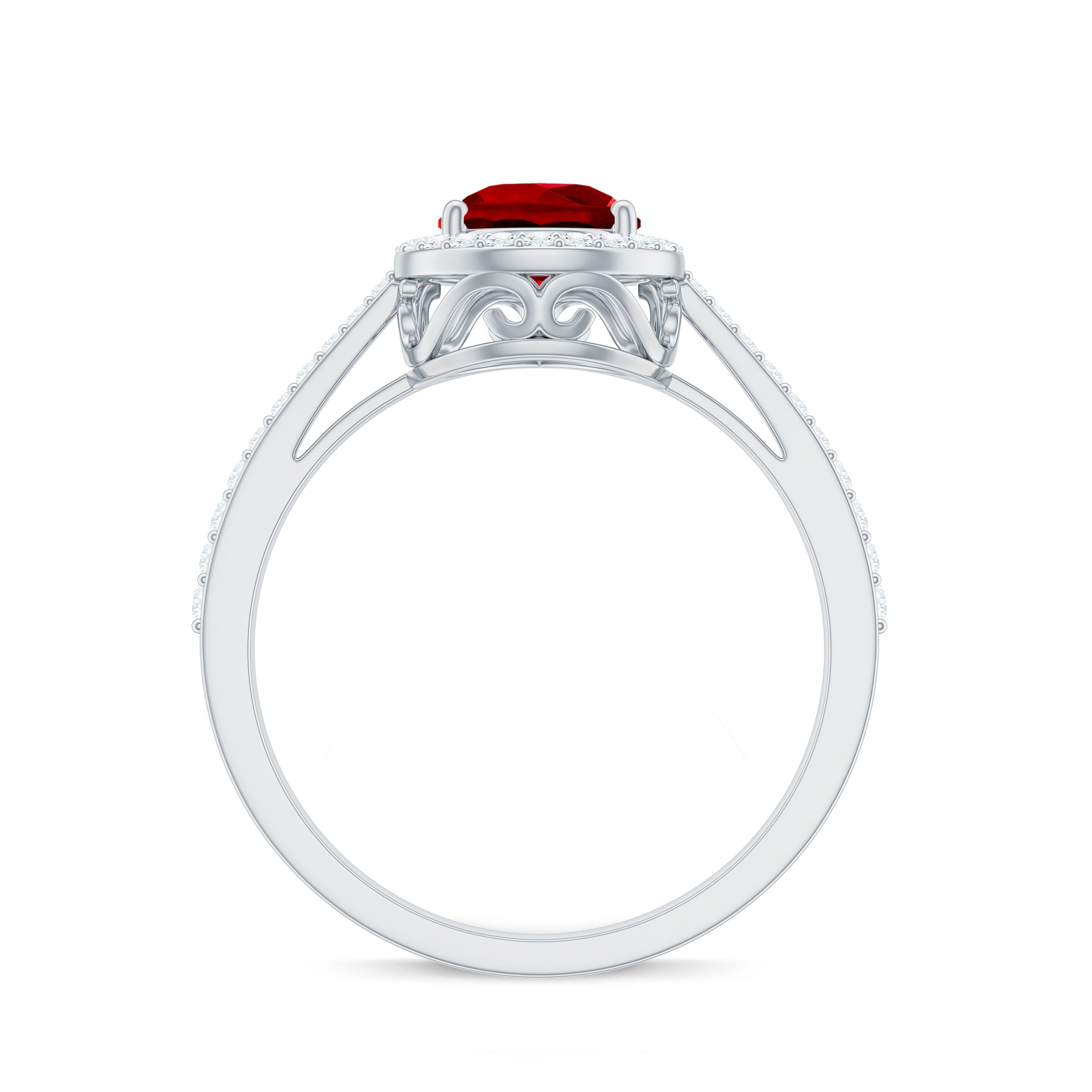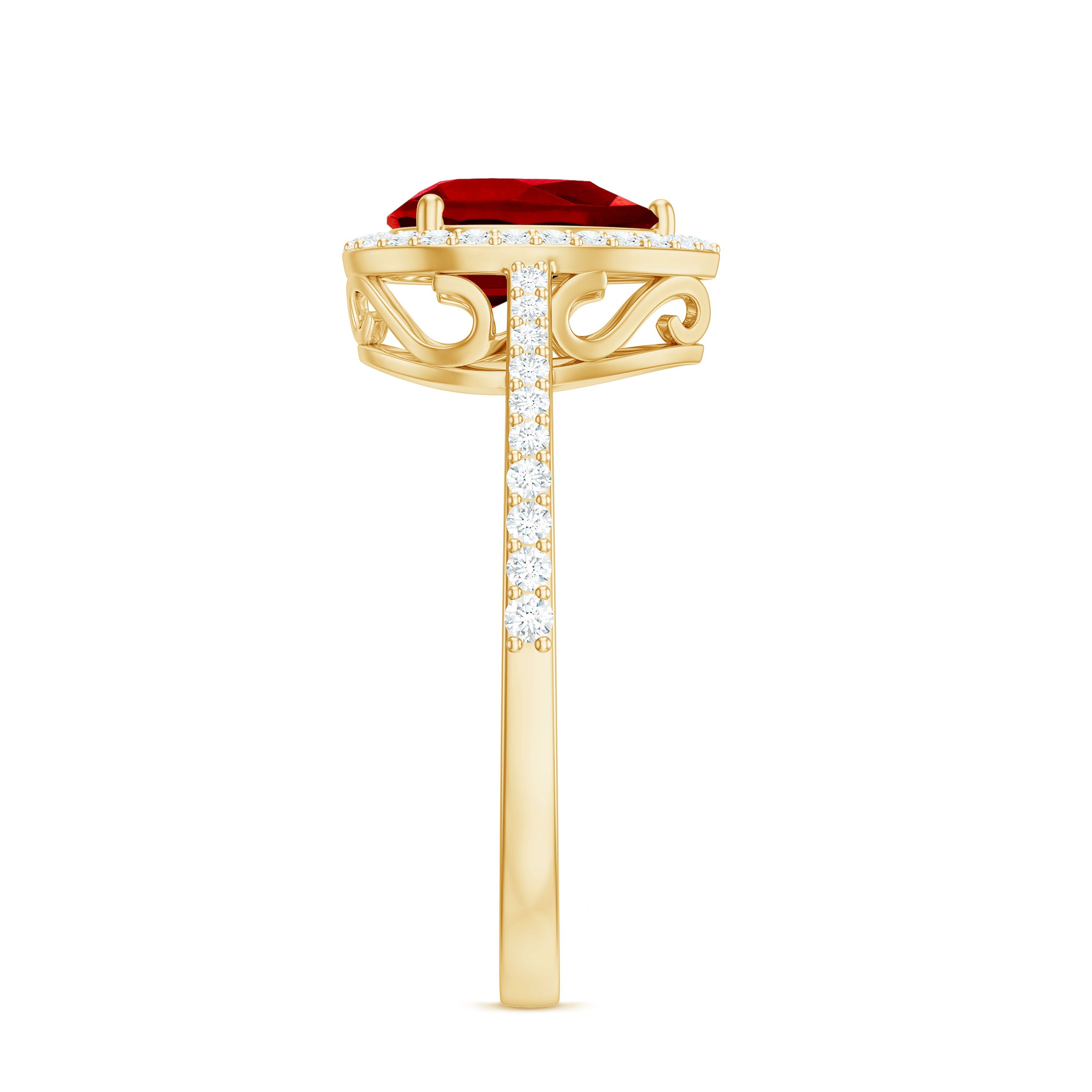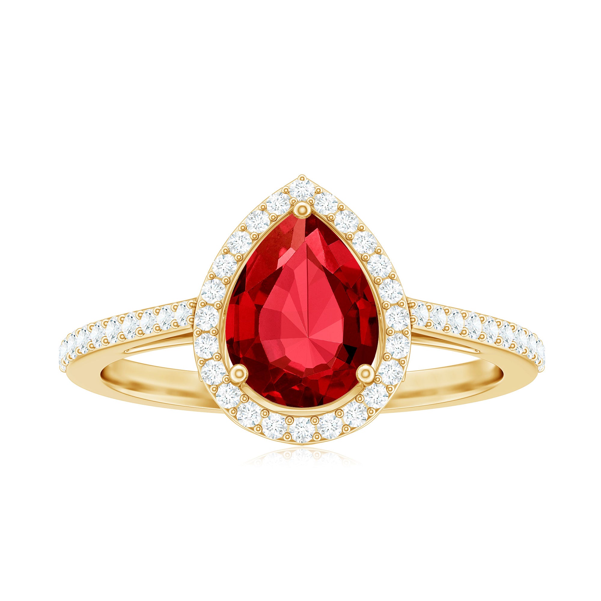 Pear Shape Lab Grown Ruby Teardrop Engagement Ring with Diamond Halo