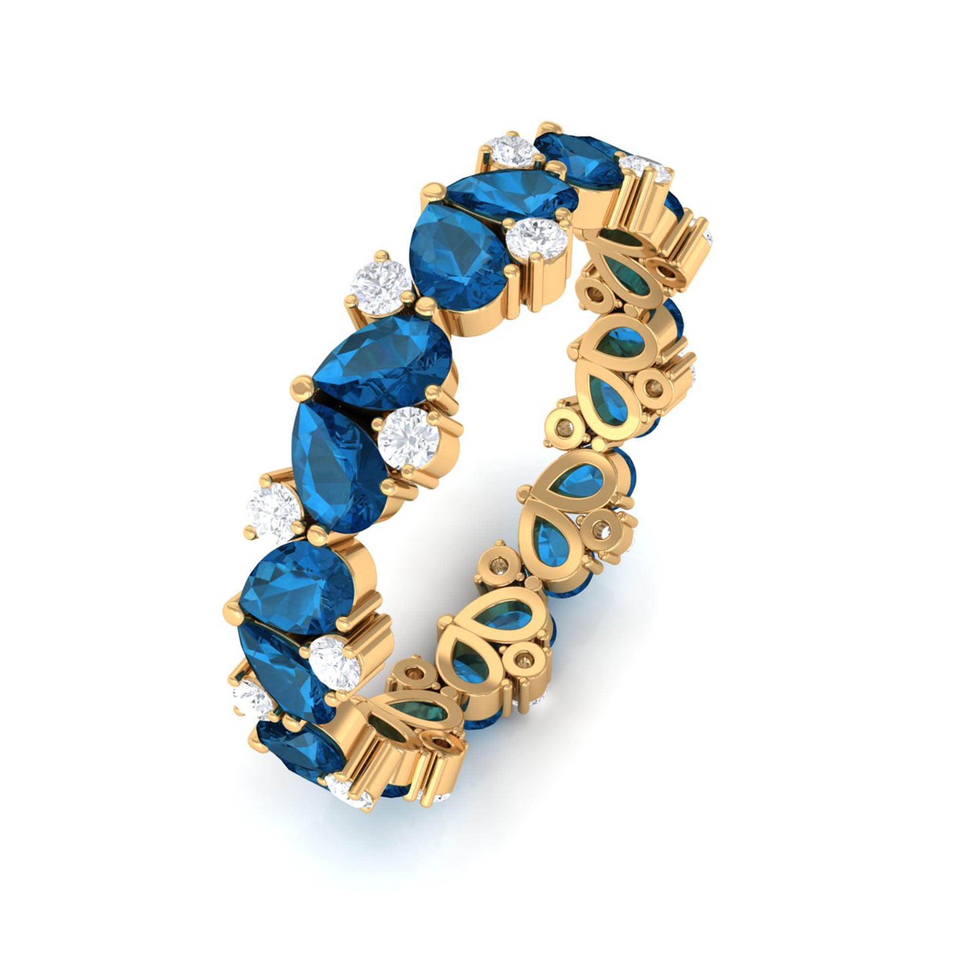 Pear Shape London Blue Topaz and Moissanite Full Eternity Band