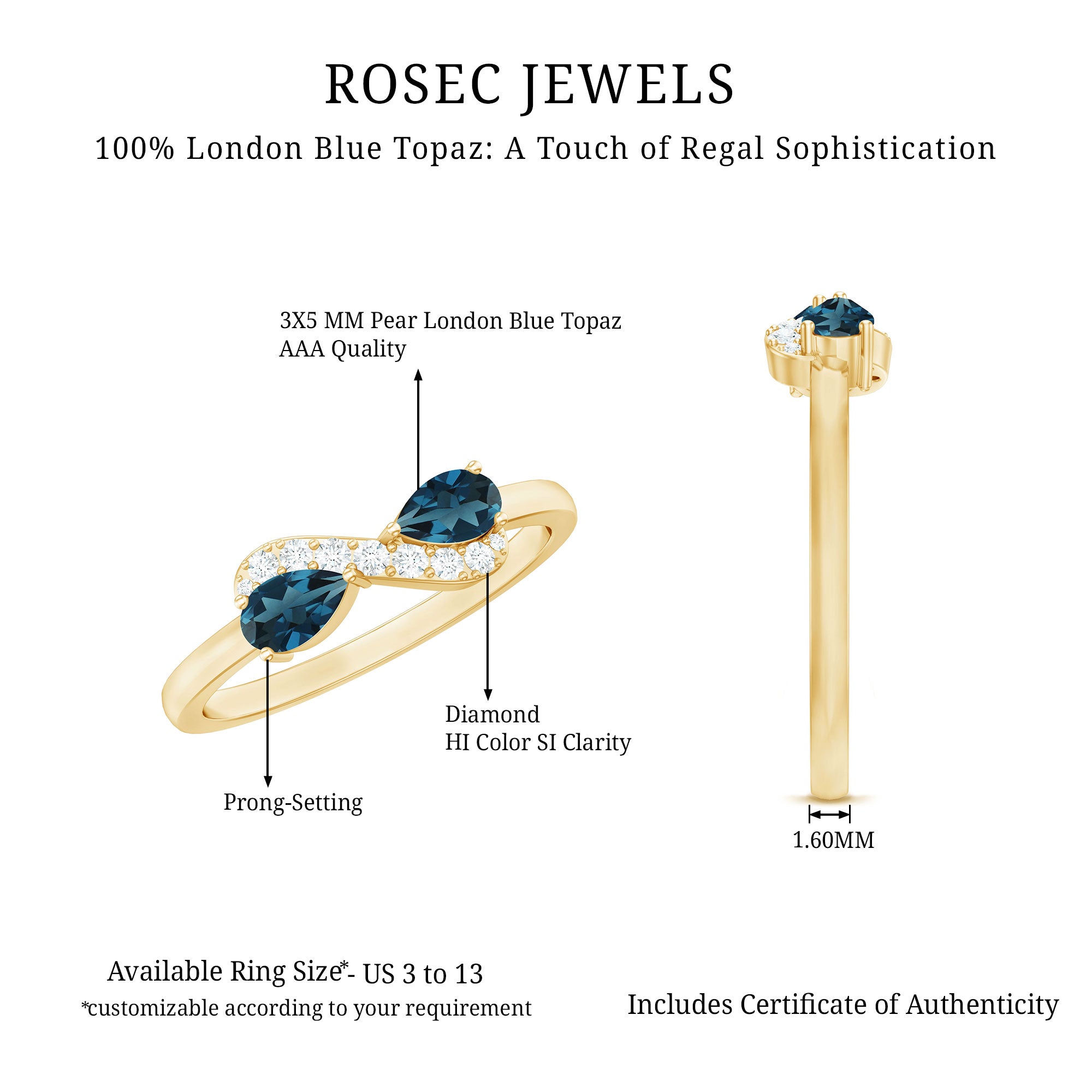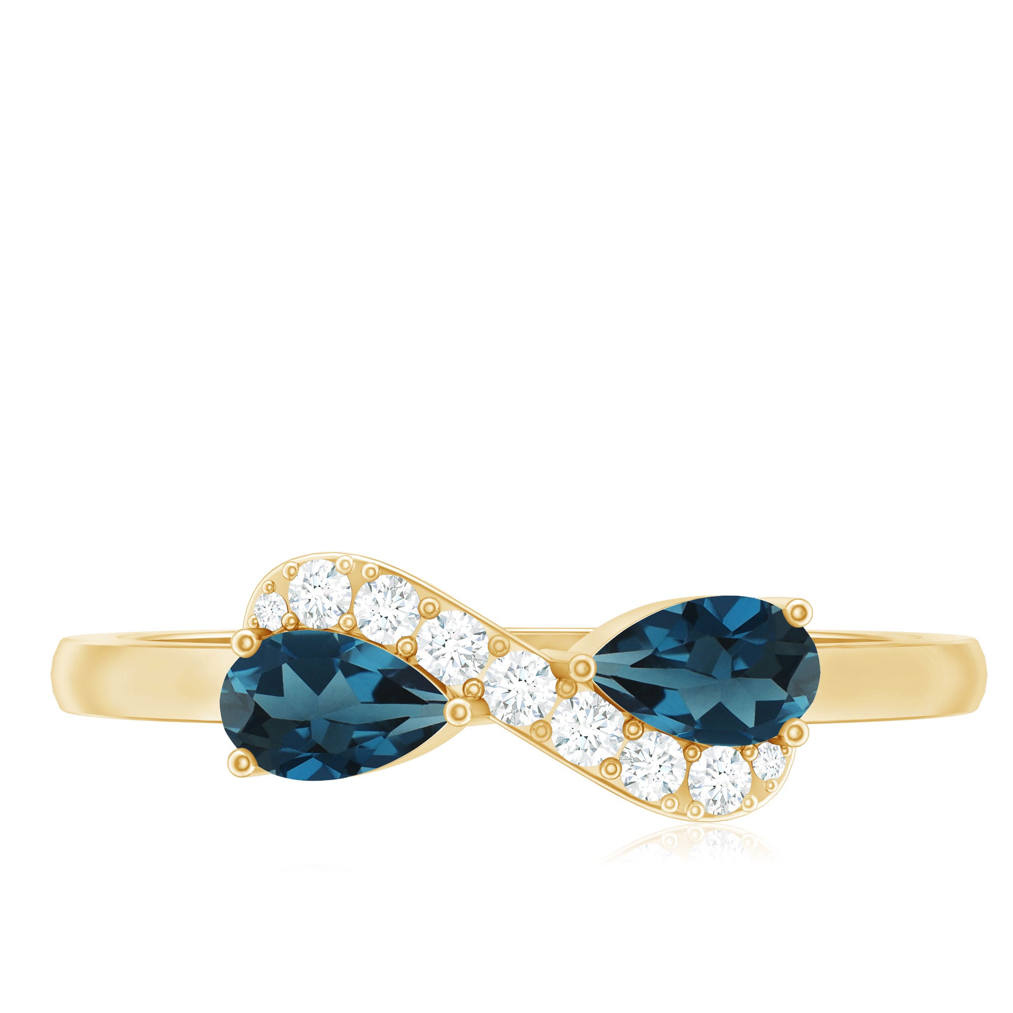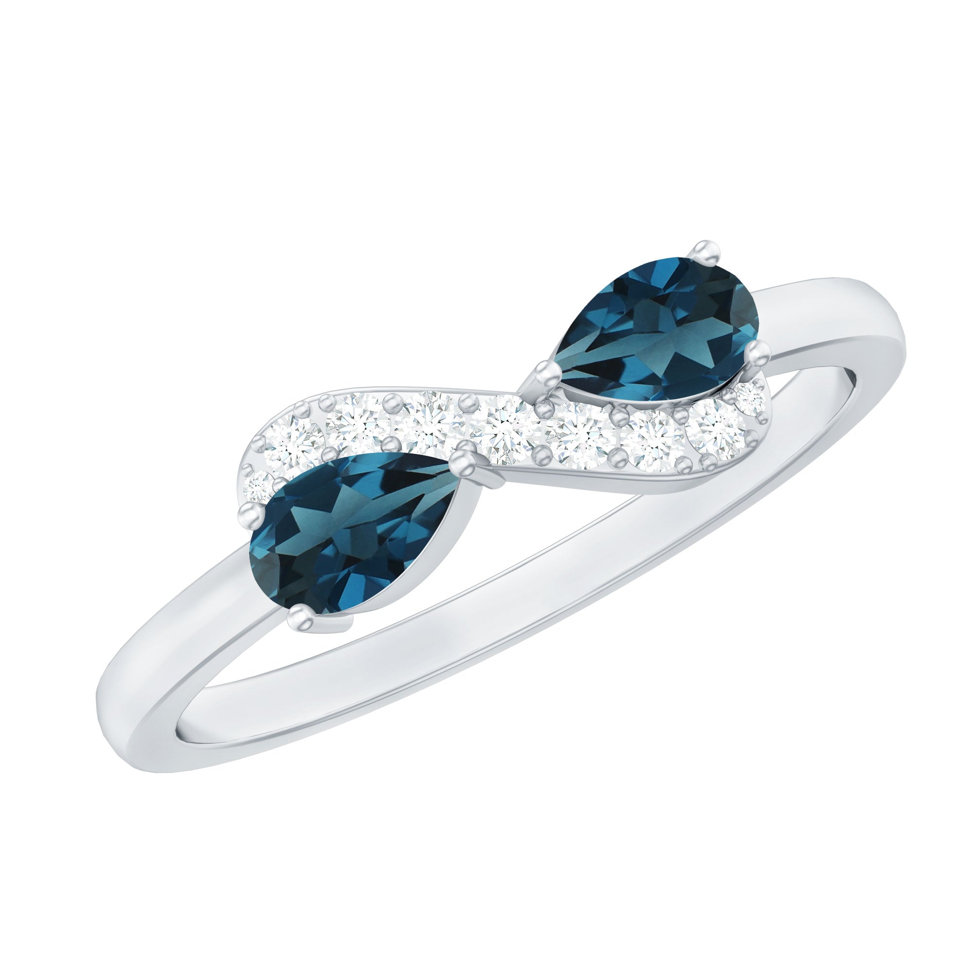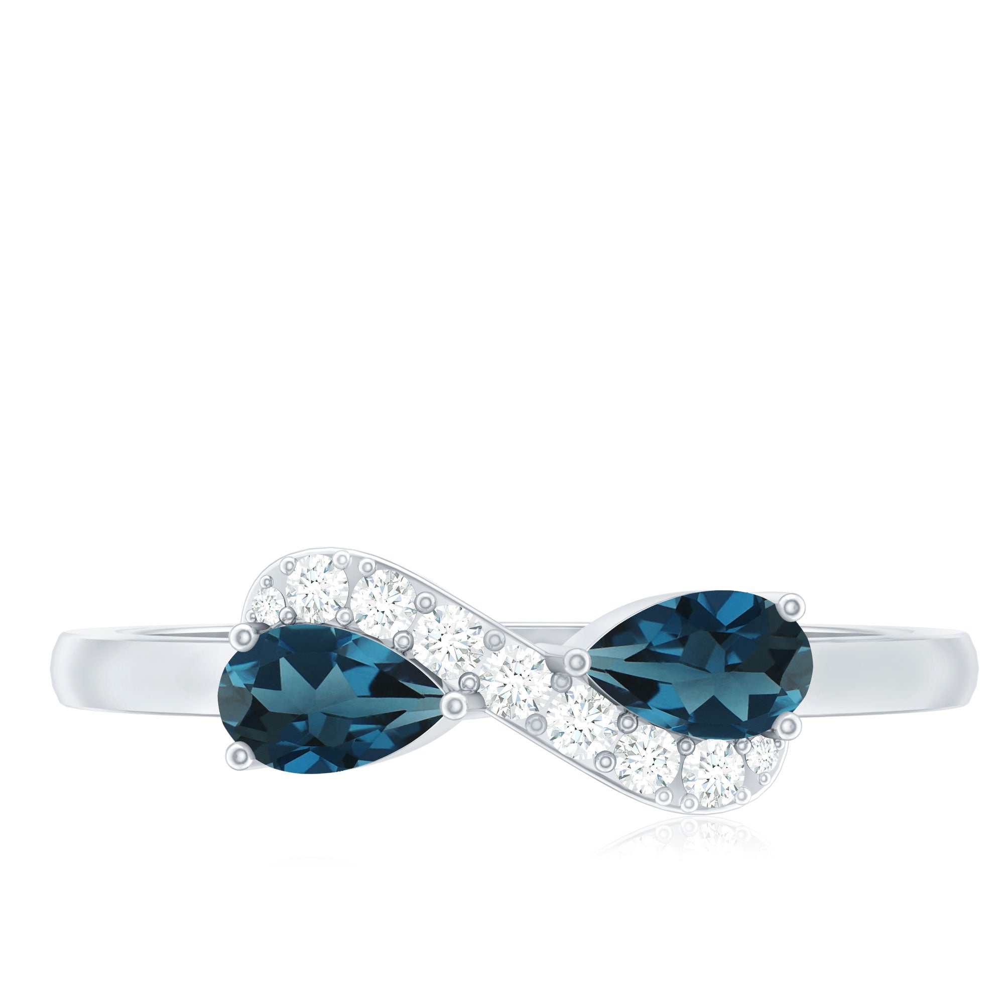 Pear Shape London Blue Topaz Infinity Promise Ring with Diamond