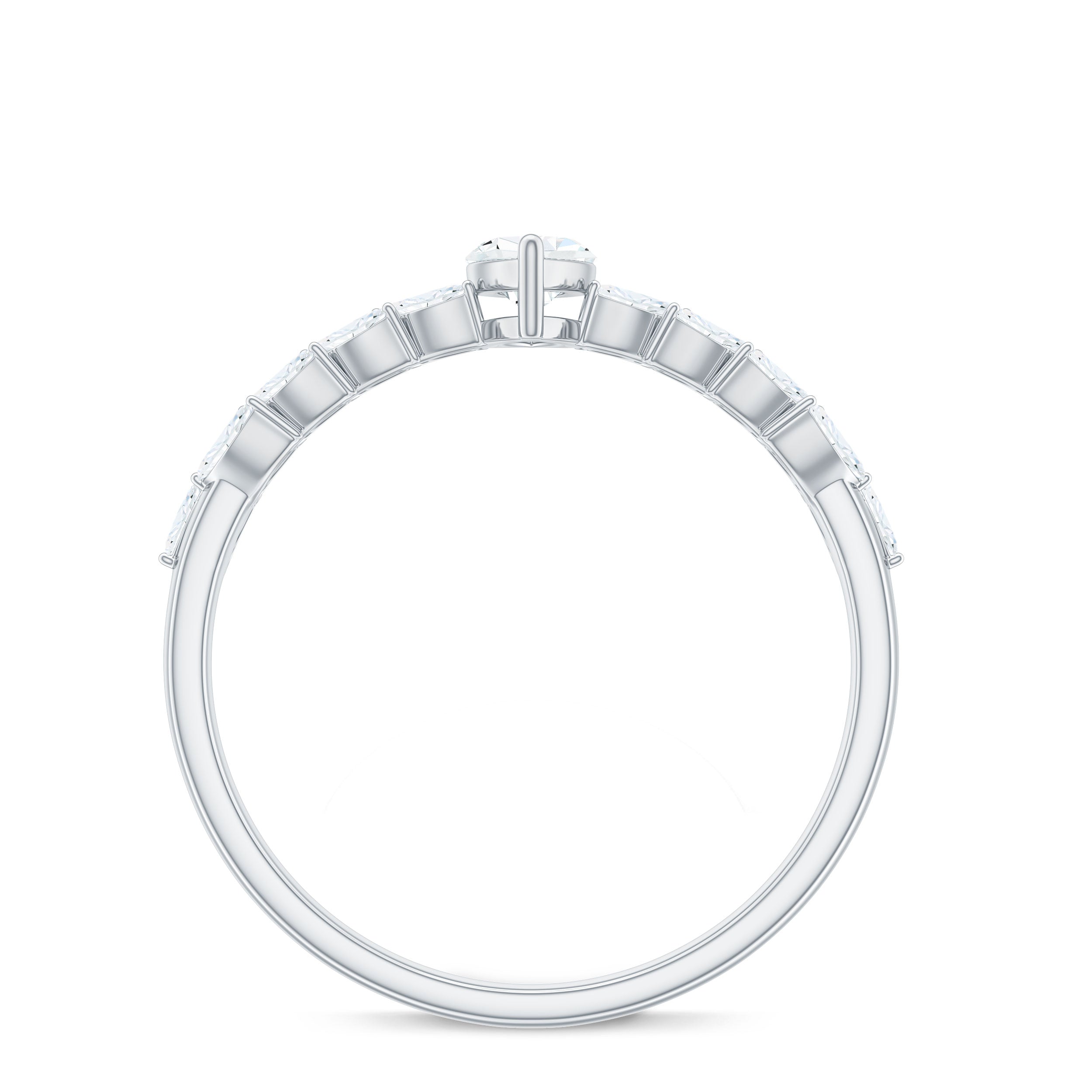 Elegance finds new meaning in this pear cut moissanite engagement ring, designed to captivate at first glance. The luminous 5X7mm pear-shaped center stone, crafted from D-VS1 quality moissanite, radiates with exceptional fire and brilliance. With a total carat weight of 1.43 ctw, this certified moissanite ring is complemented by a stunning array of marquise-cut side stones gracefully arranged along a split shank, adding dimension and a contemporary twist to a timeless classic. Perfect for proposals filled with sentiment and style, this solitaire teardrop engagement ring stands as a bold expression of love and individuality. The refined 3-prong setting securely holds the central gem, maximizing its light performance while maintaining a sleek, elegant silhouette. Sophisticated yet striking, it’s the ultimate choice for anyone seeking a womens solitaire engagement ring that exudes personality, sparkle, and superior quality. Sophisticated yet striking, it’s the ultimate choice for anyone seeking a solitaire engagement ring that exudes personality, sparkle, and superior quality. A symbol of modern romance, this pear shaped moissanite ring is a celebration of love’s brilliance—made to last a lifetime.