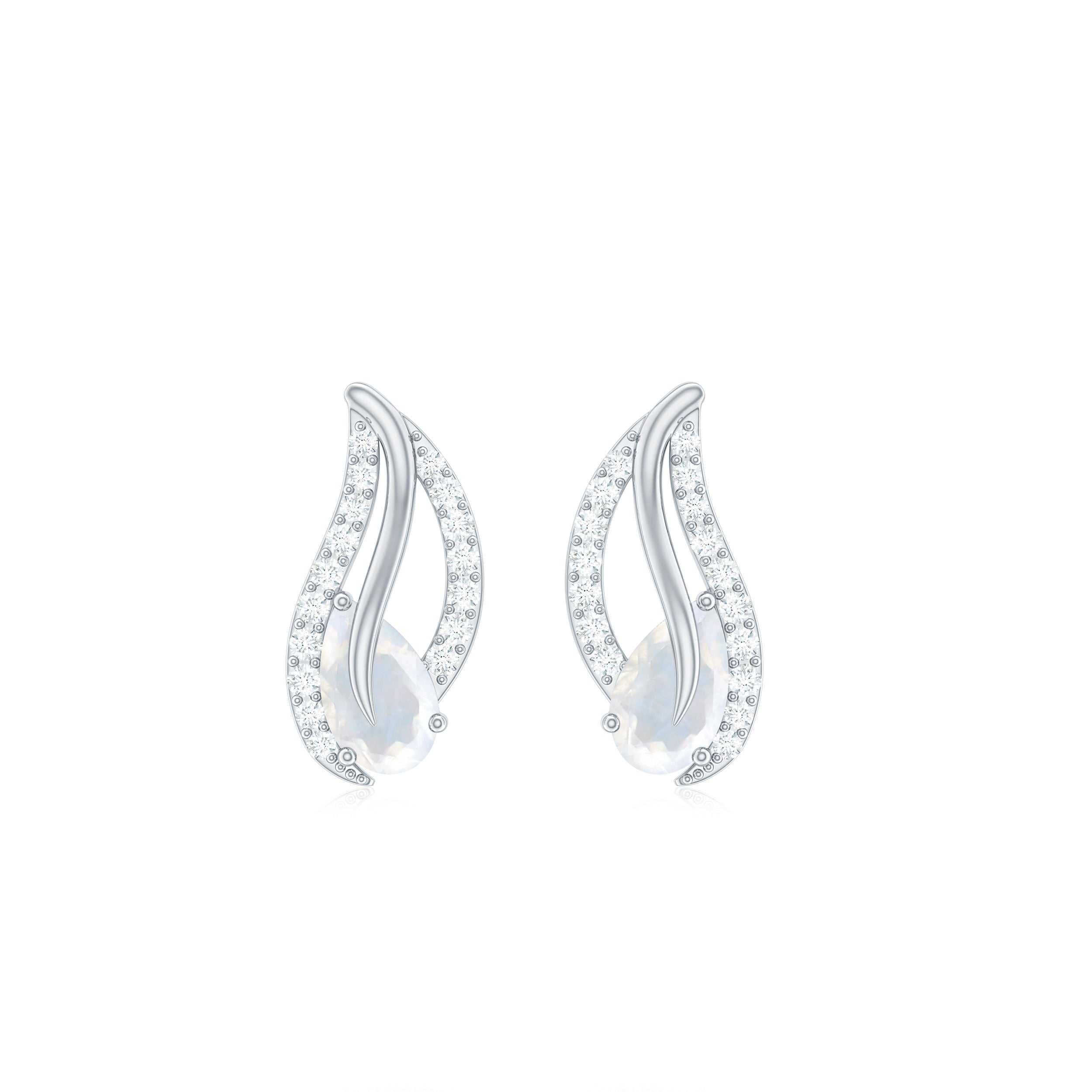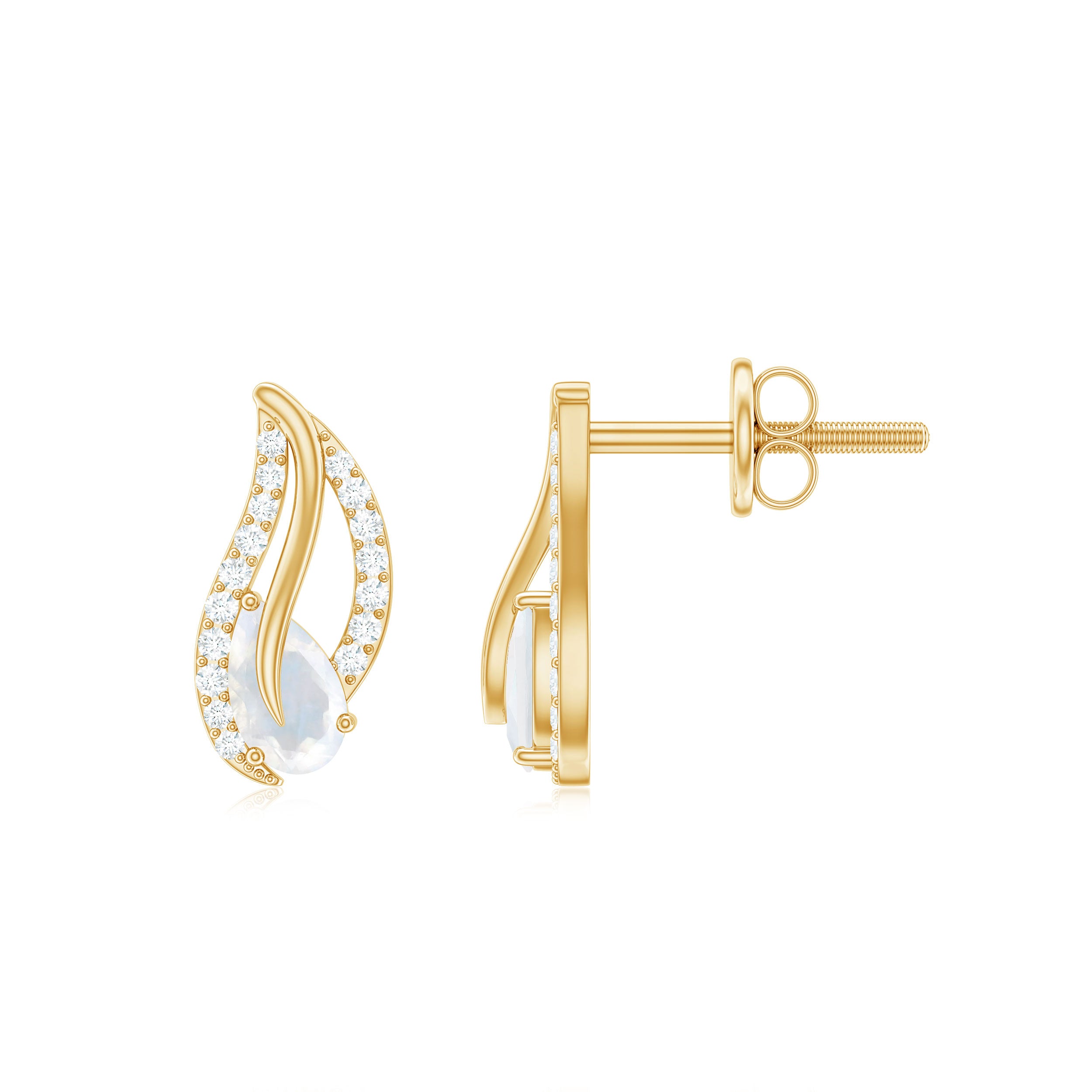 Pear Shape Moonstone and Diamond Leaf Stud Earrings