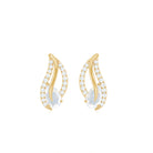 The glistering leaf motif holds a titled pear-shaped moonstone at its base within these leaf stud earrings. For a scintillating and modern look, the leaf is dotted with a parade of round diamonds that dazzle brilliantly when you don this pair. The solitaire earrings have screw back closures that make them a comfortable option for every fashion-savvy woman.