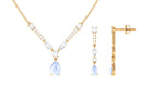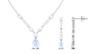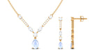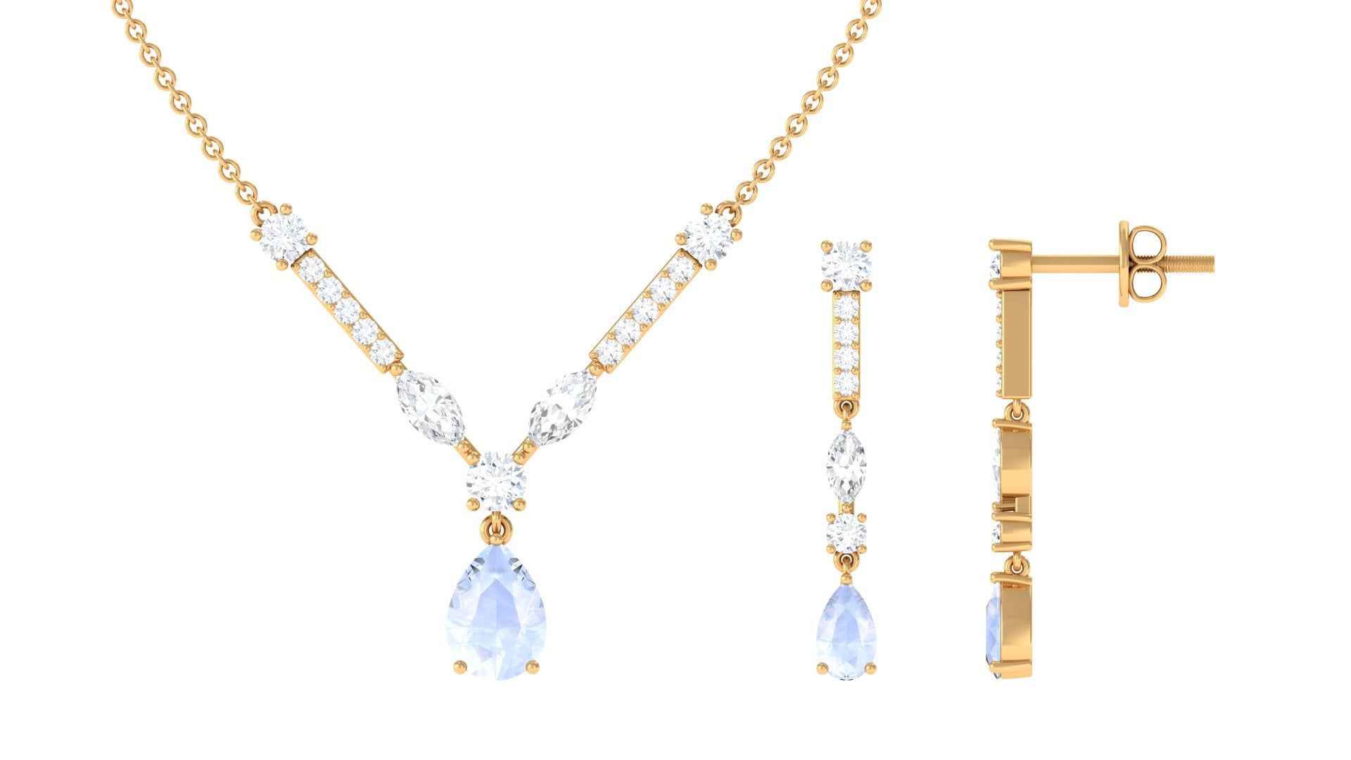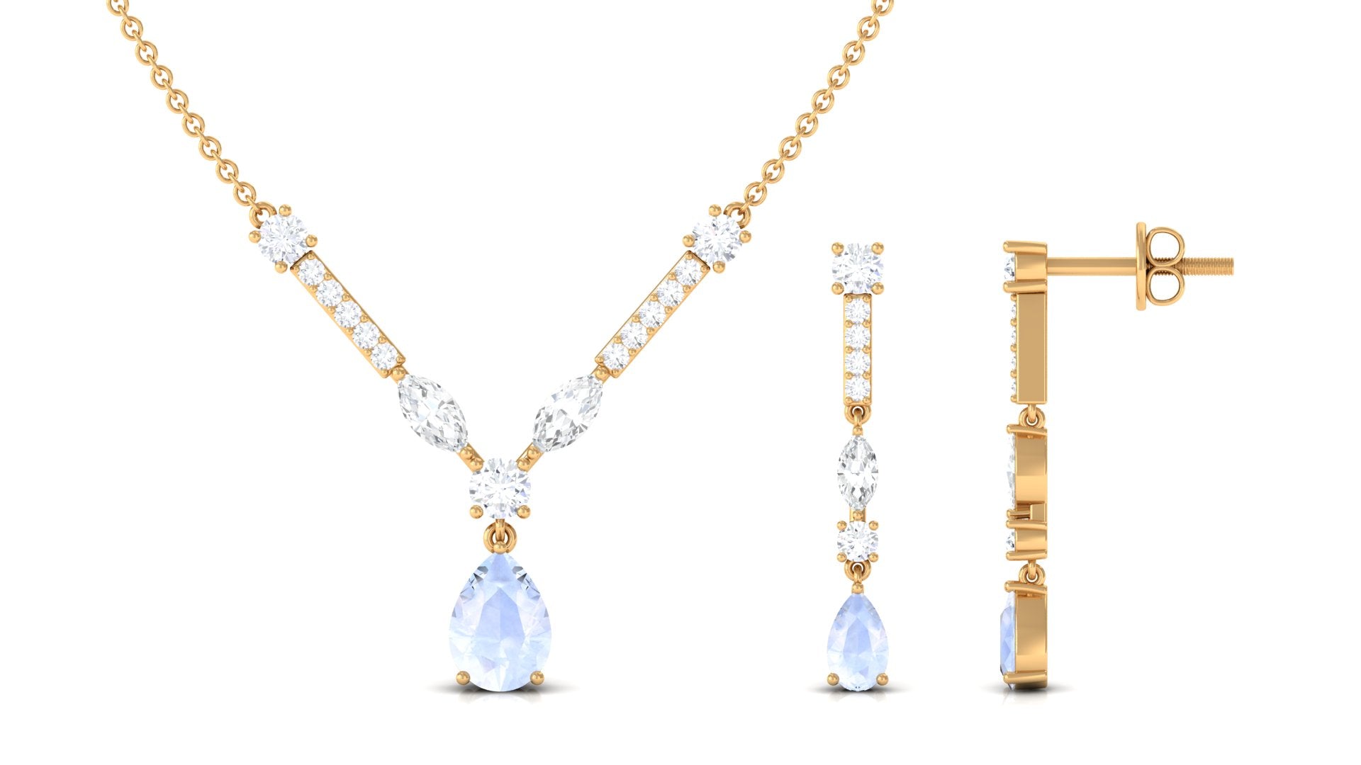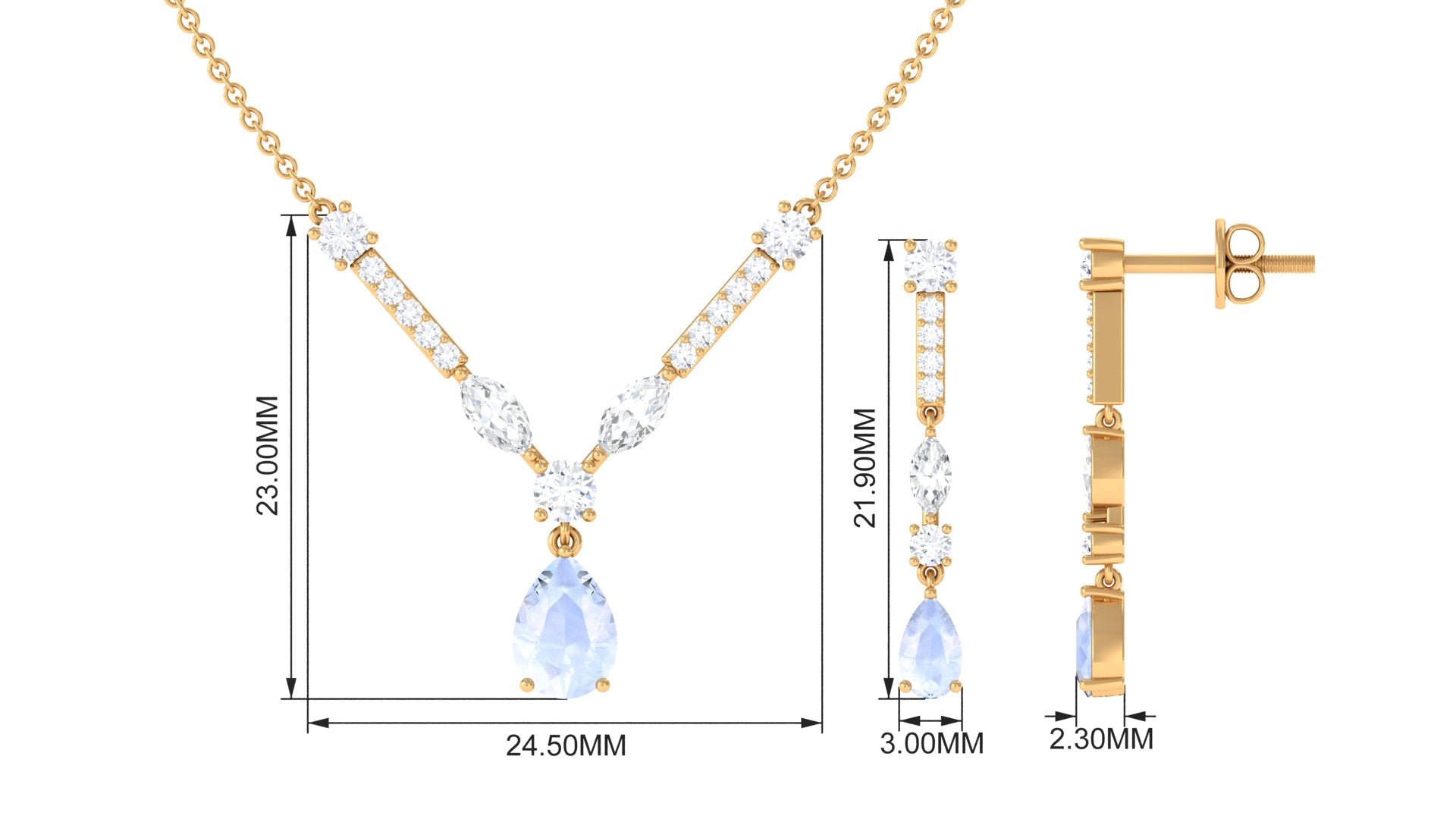 Pear Shape Moonstone and Moissanite Drop Necklace and Earrings