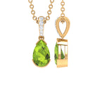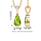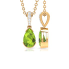 Pear Shape Peridot Solitaire Pendant with Diamond Accent Bail