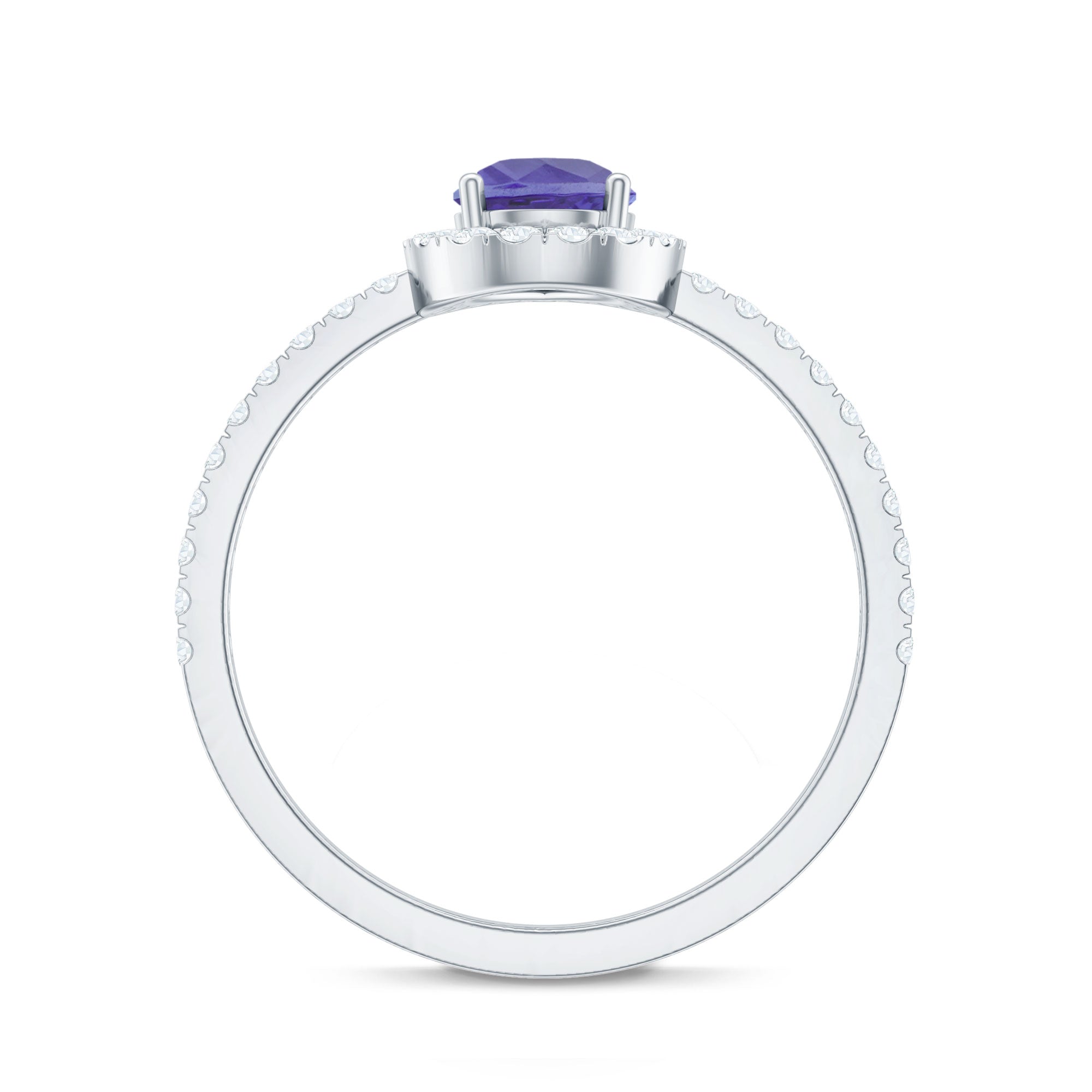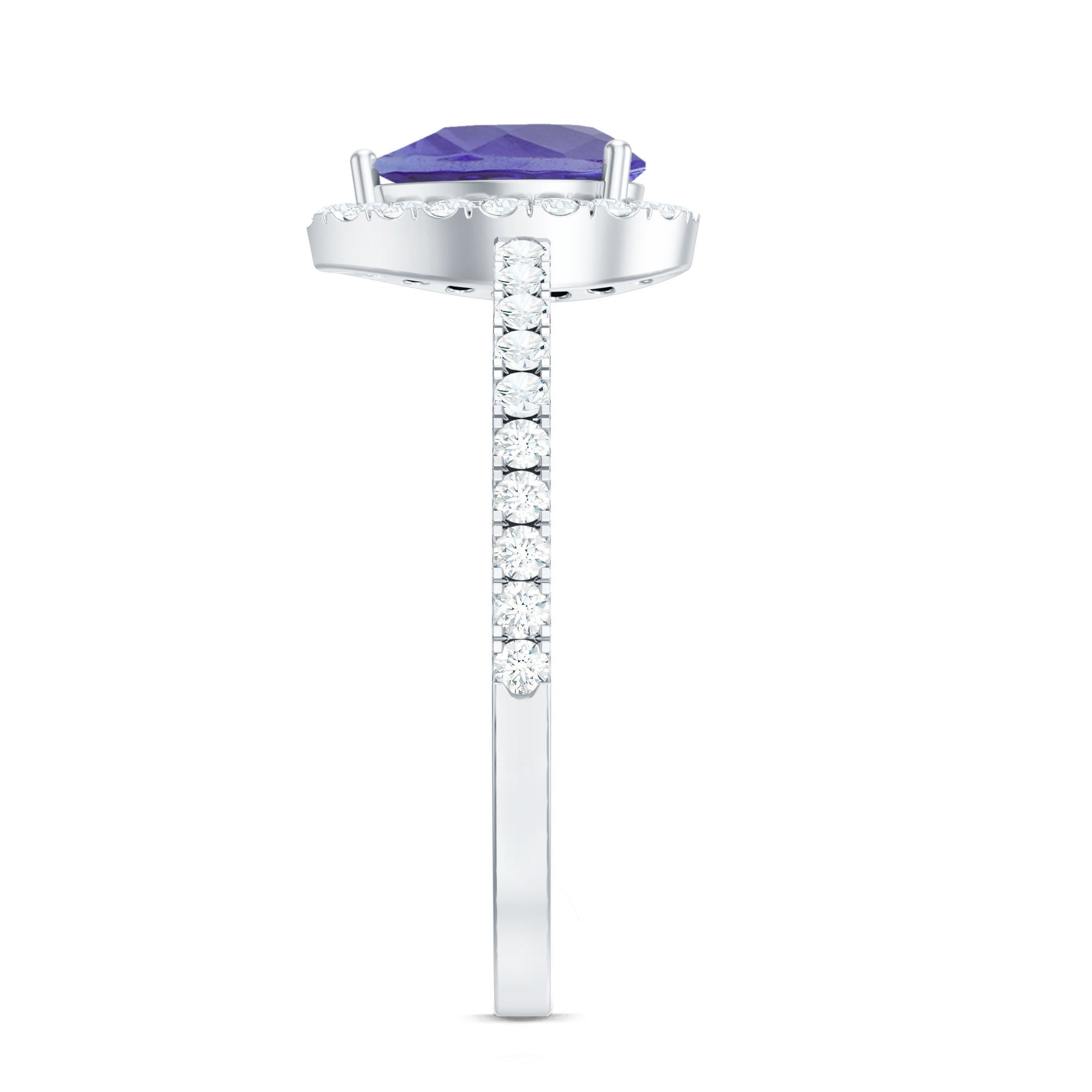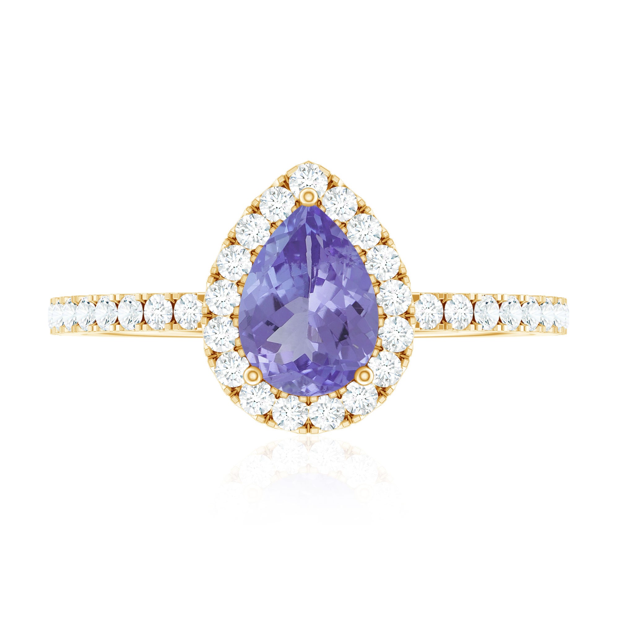 Channel your inner elegance wearing a royal Tanzanite Teardrop Ring everyday! Standing out for its royal pop of purple, it has been embedded with the centerpiece of 5X7 MM Pear Shape Tanzanite, made all the more eye-striking by sparkling Halo and side-stones of Round Shape Diamond. Simple yet stunning, this Tanzanite Halo Ring doesnt require a special occasion to be flaunted.