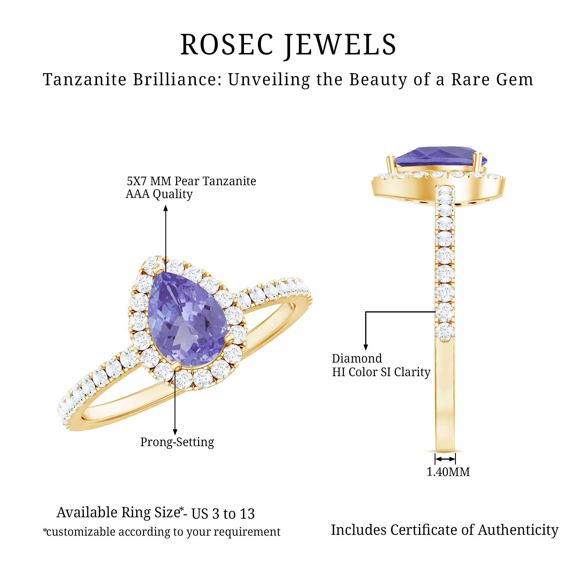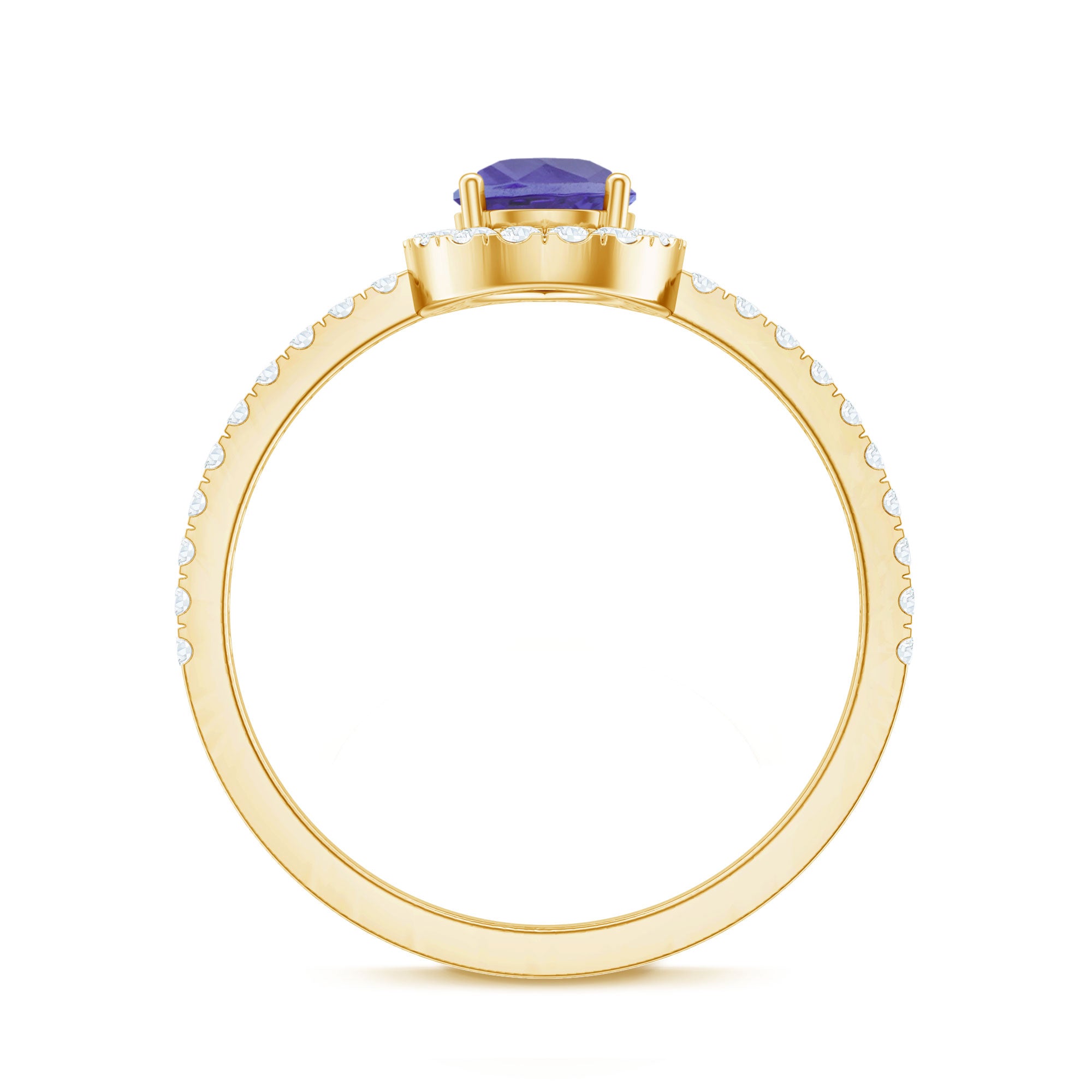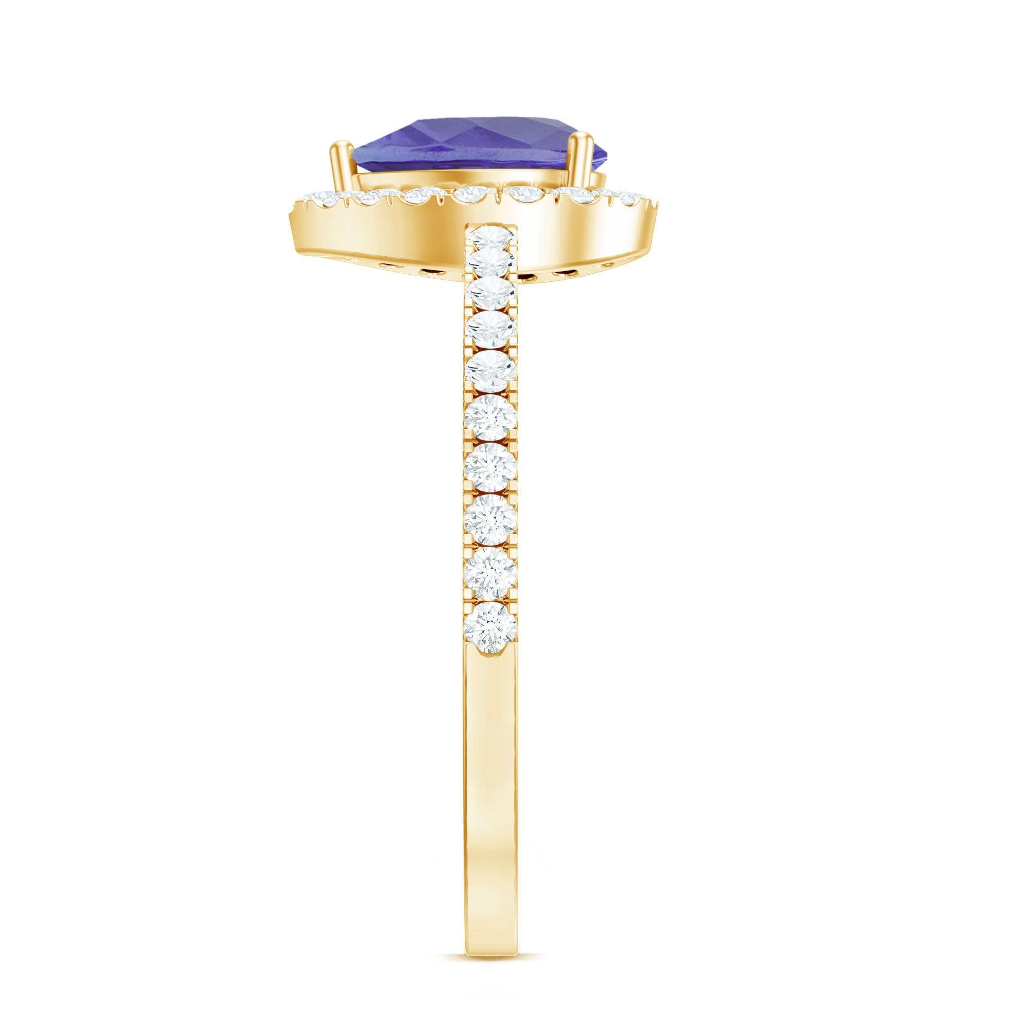 Channel your inner elegance wearing a royal Tanzanite Teardrop Ring everyday! Standing out for its royal pop of purple, it has been embedded with the centerpiece of 5X7 MM Pear Shape Tanzanite, made all the more eye-striking by sparkling Halo and side-stones of Round Shape Diamond. Simple yet stunning, this Tanzanite Halo Ring doesnt require a special occasion to be flaunted.