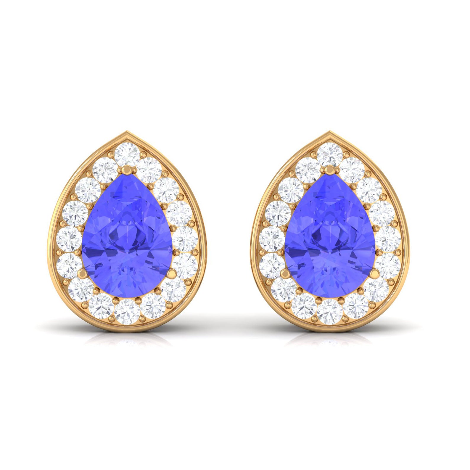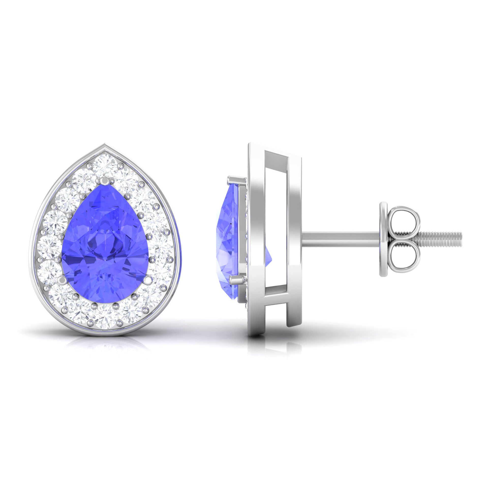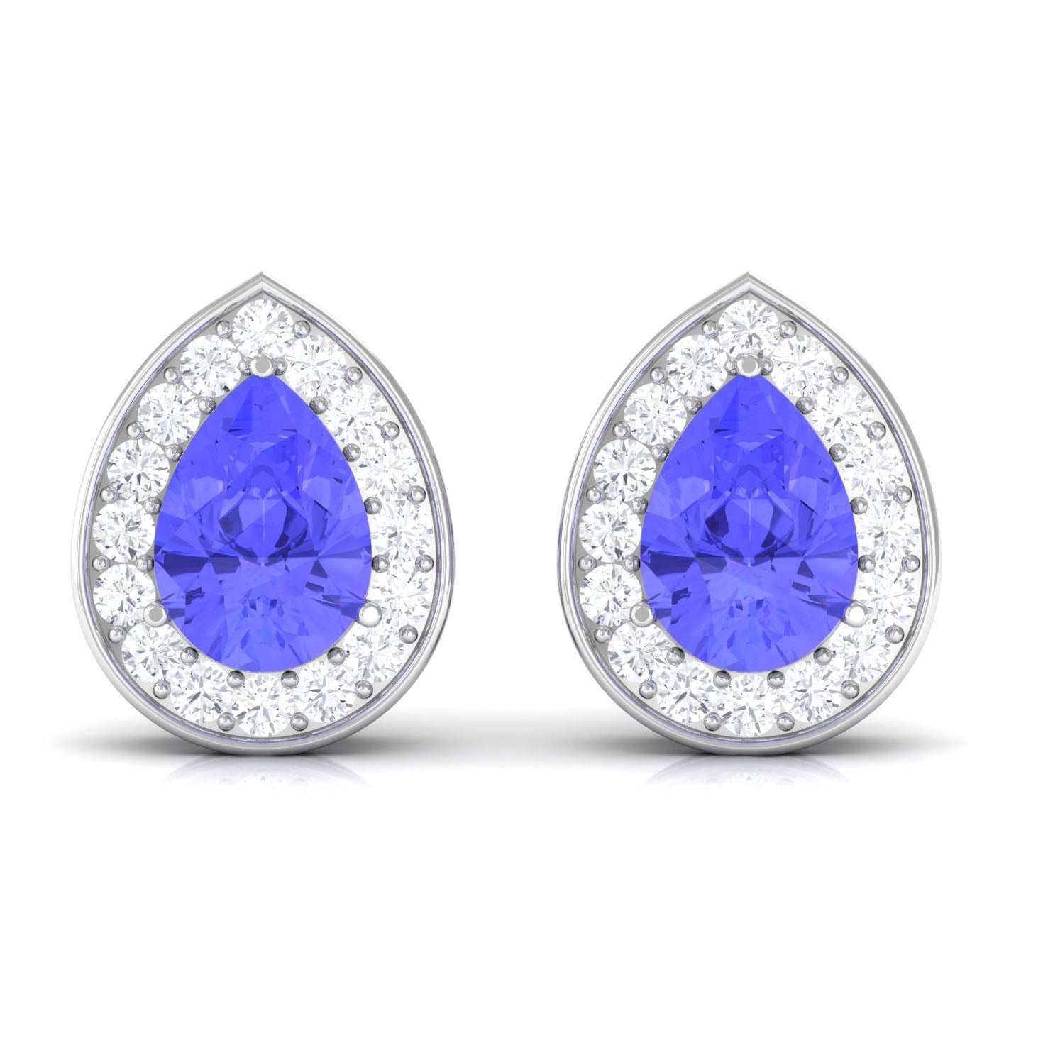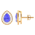 Pear Shape Tanzanite Classic Halo Stud Earrings with Diamond