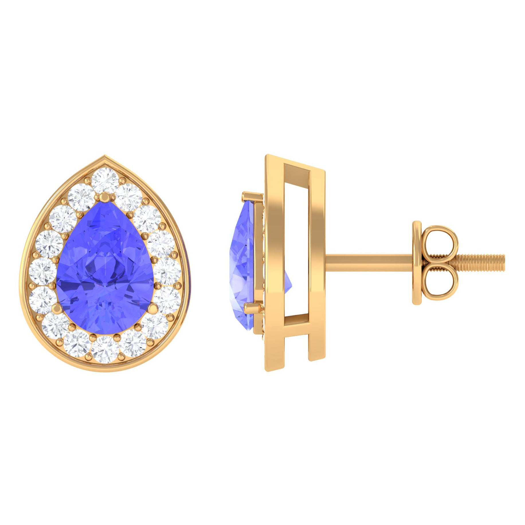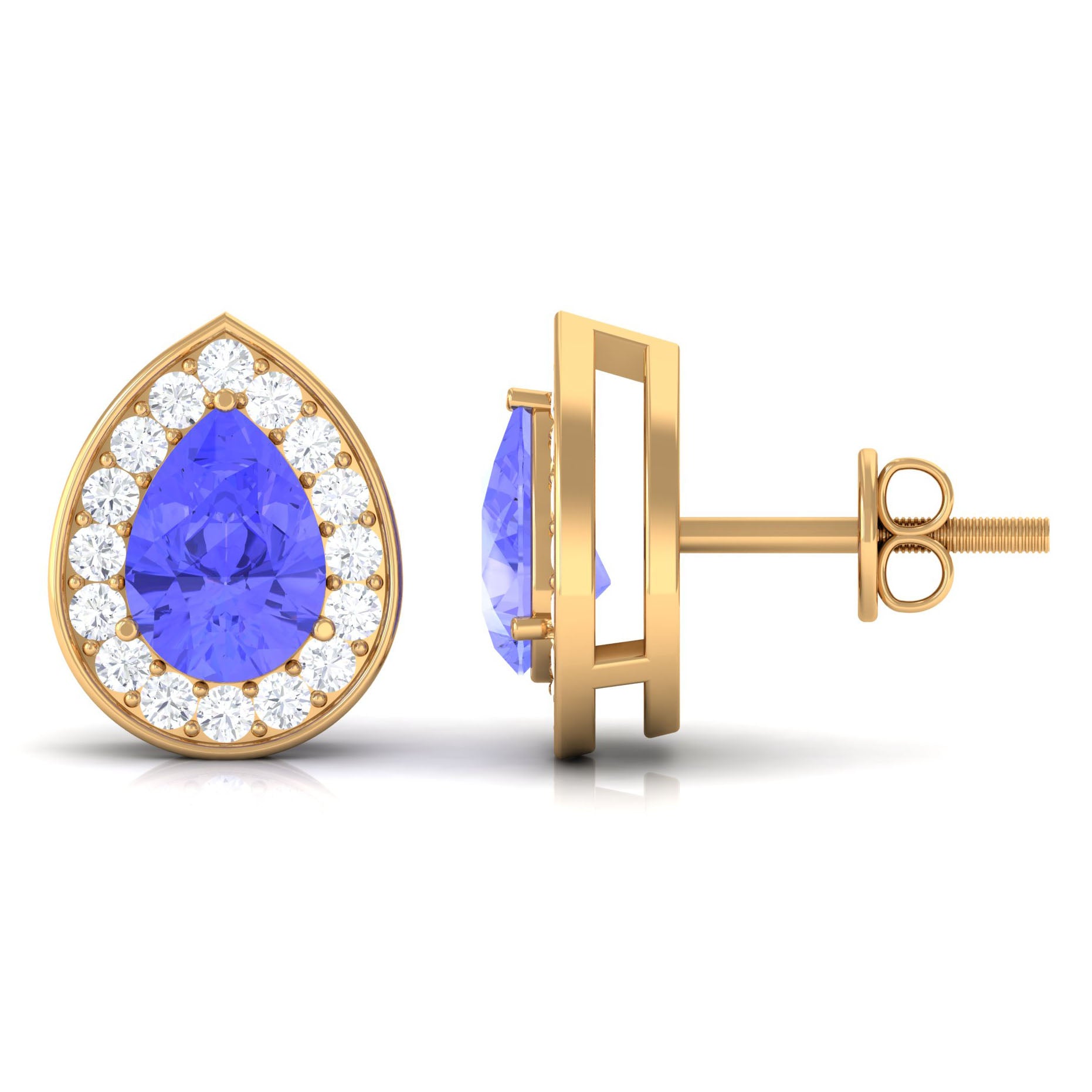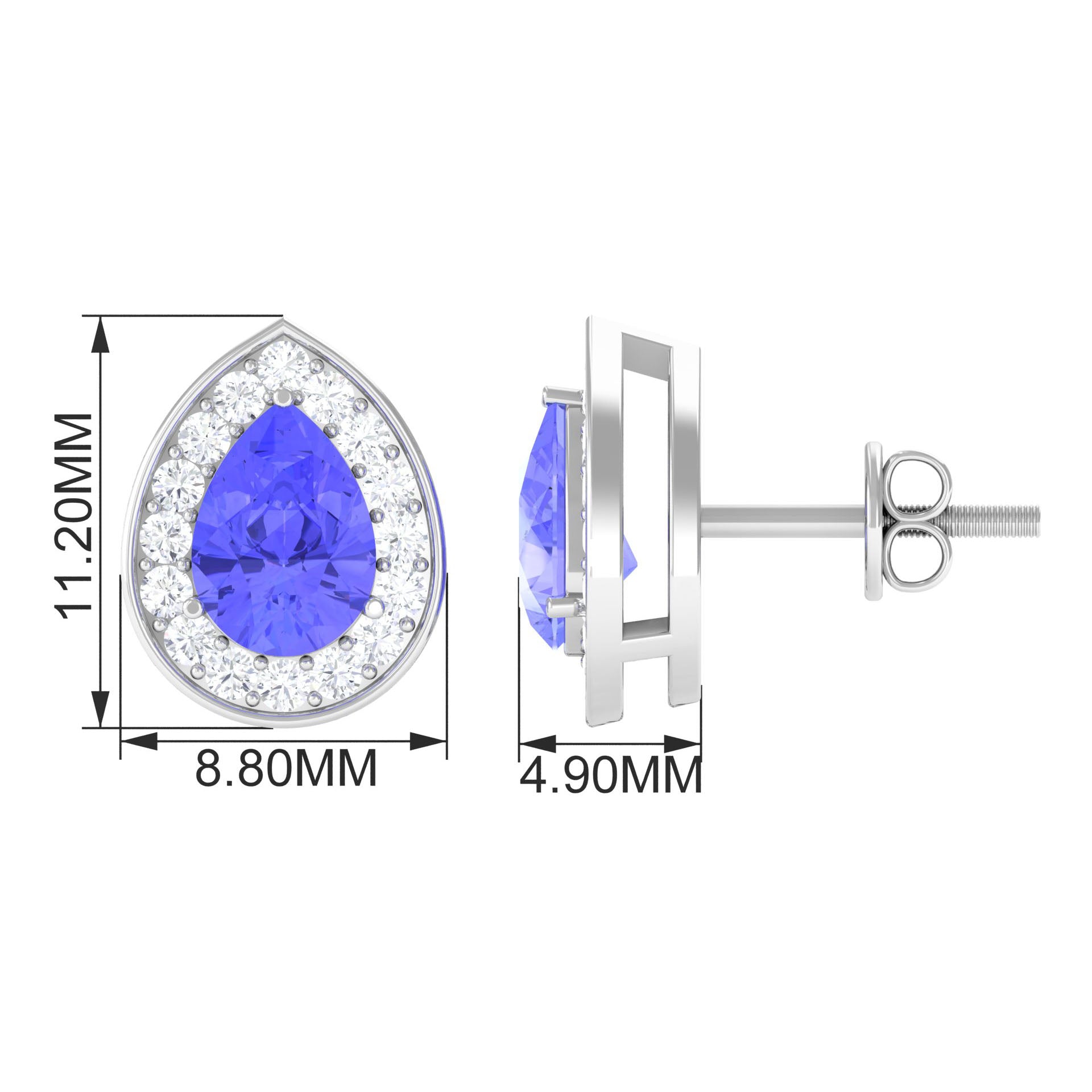 Pear Shape Tanzanite Classic Halo Stud Earrings with Diamond