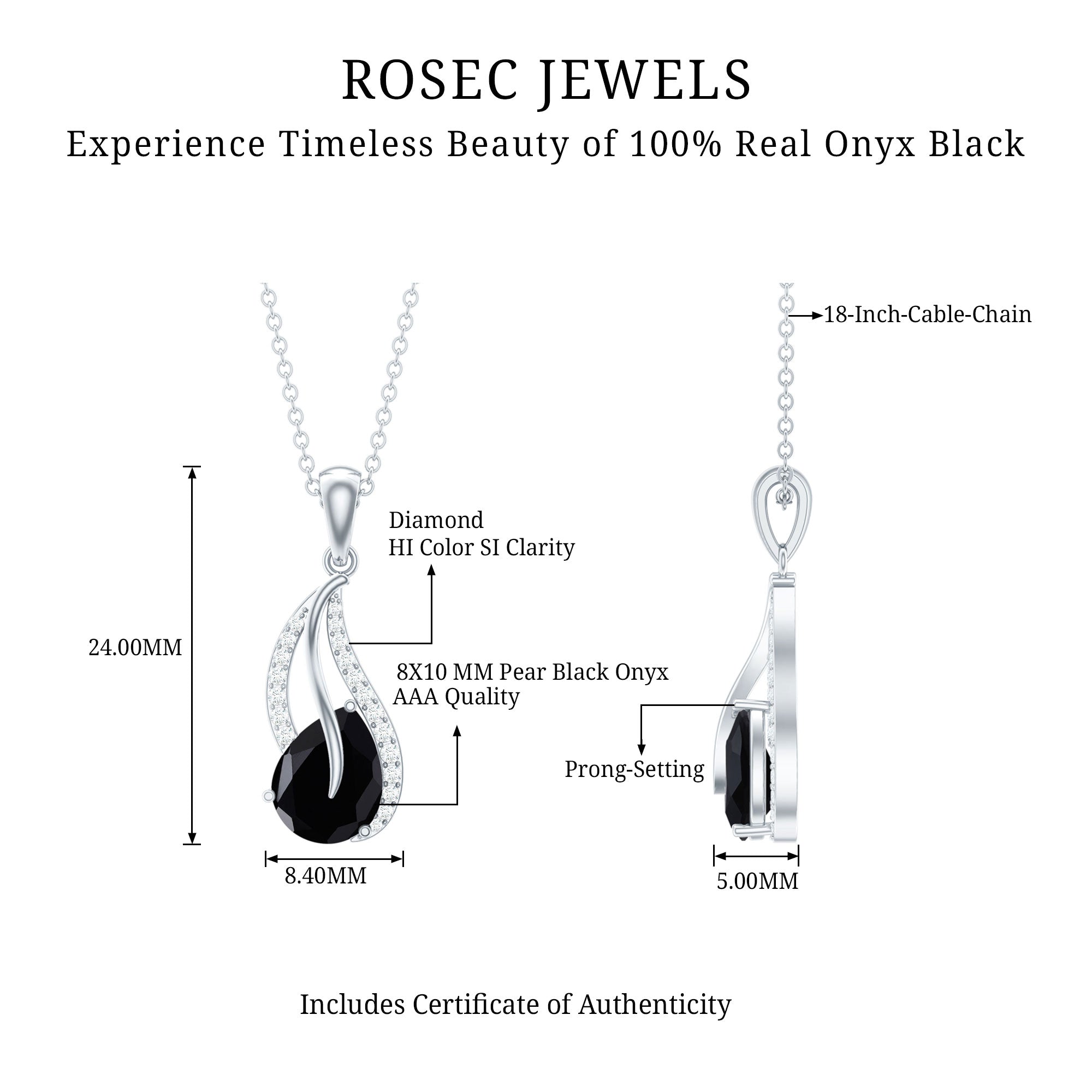 Pear Shaped Black Onyx and Diamond Leaf Pendant Necklace