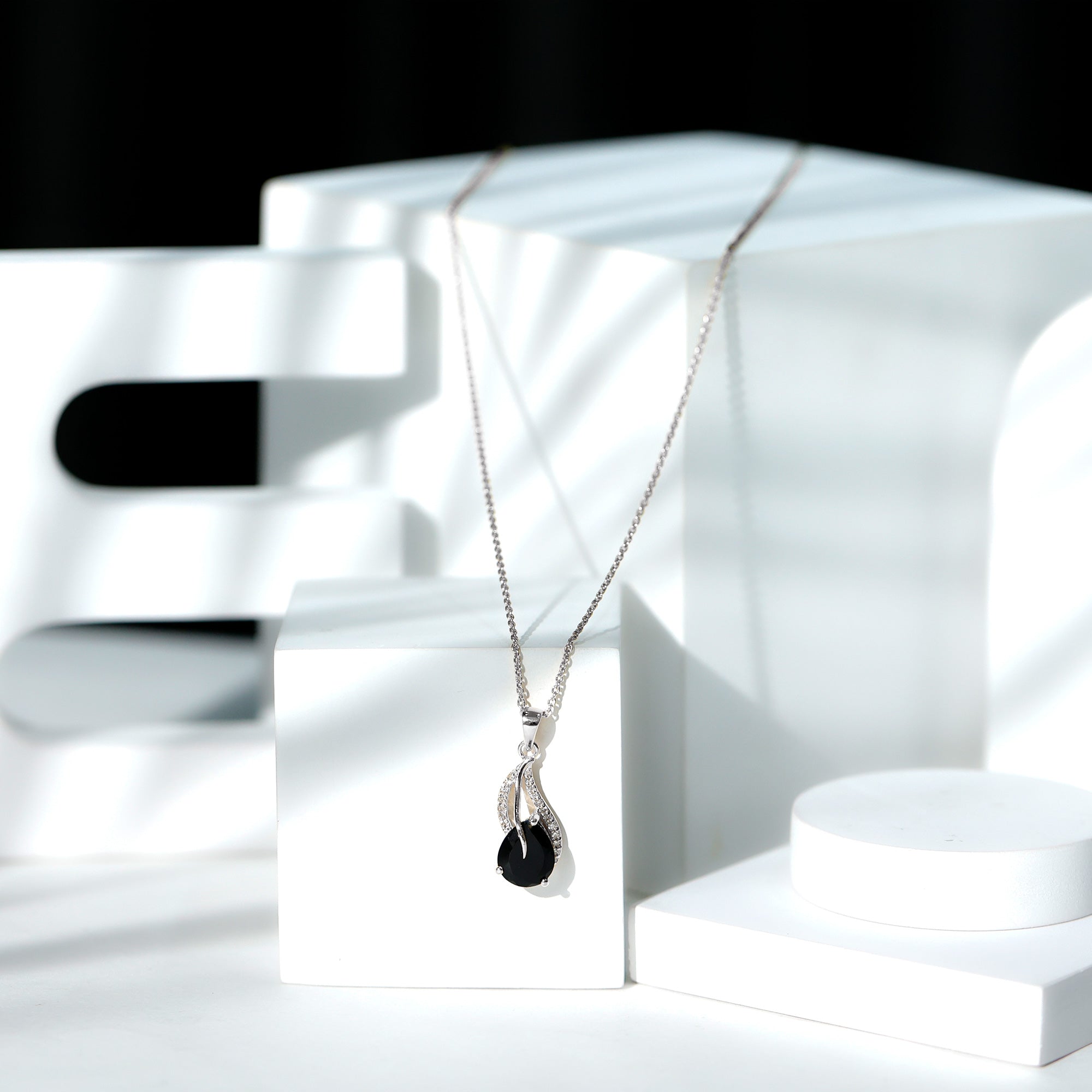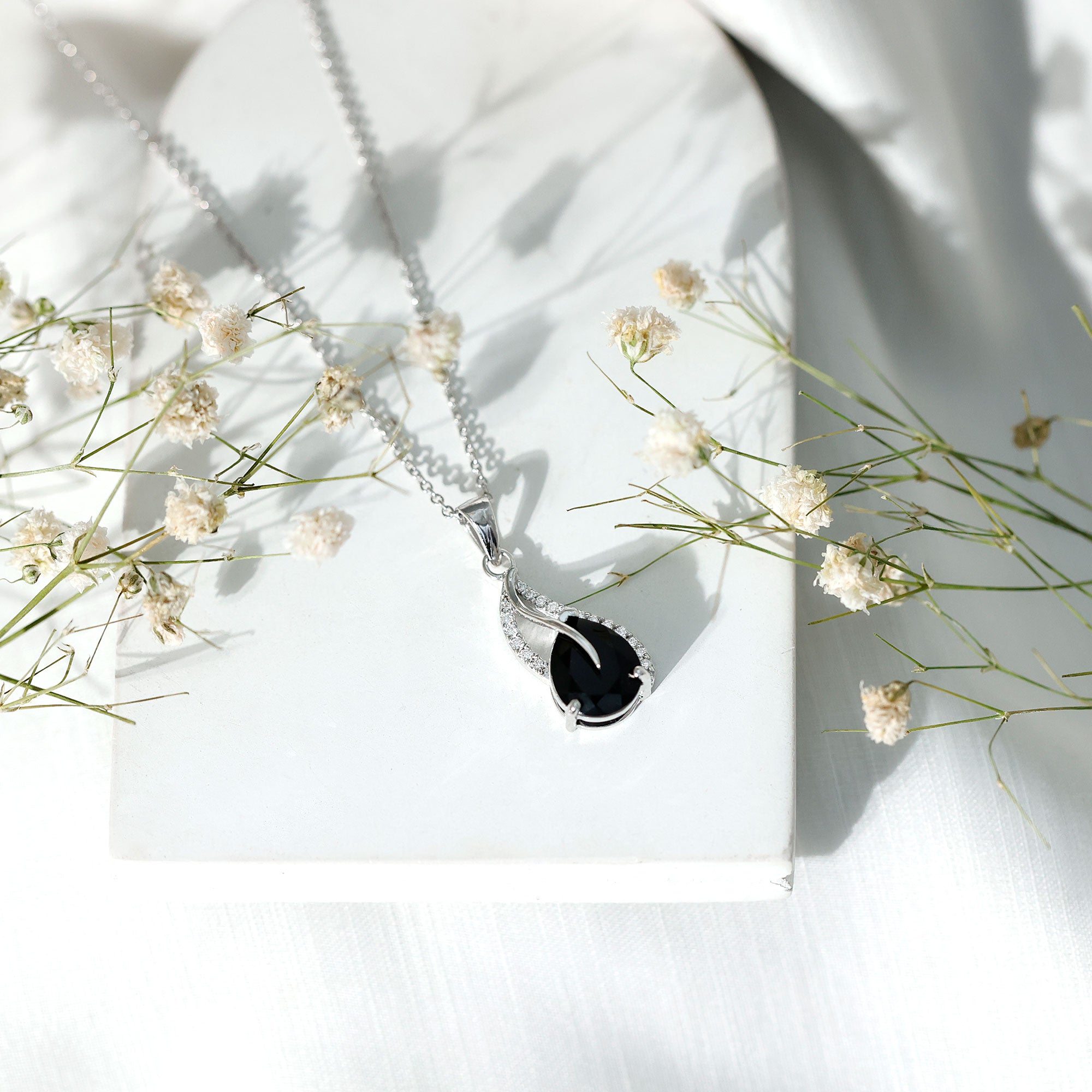 Add a touch of elegance to your everyday look with this beautiful Leaf Pendant Necklace, crafted from Gold and adorned with a shimmering Pear Cut Black Onyx as the Solitaire, accented by Diamond gems. This charming piece of jewelry is the perfect accessory to elevate any outfit and is sure to make you feel stylish and sophisticated.