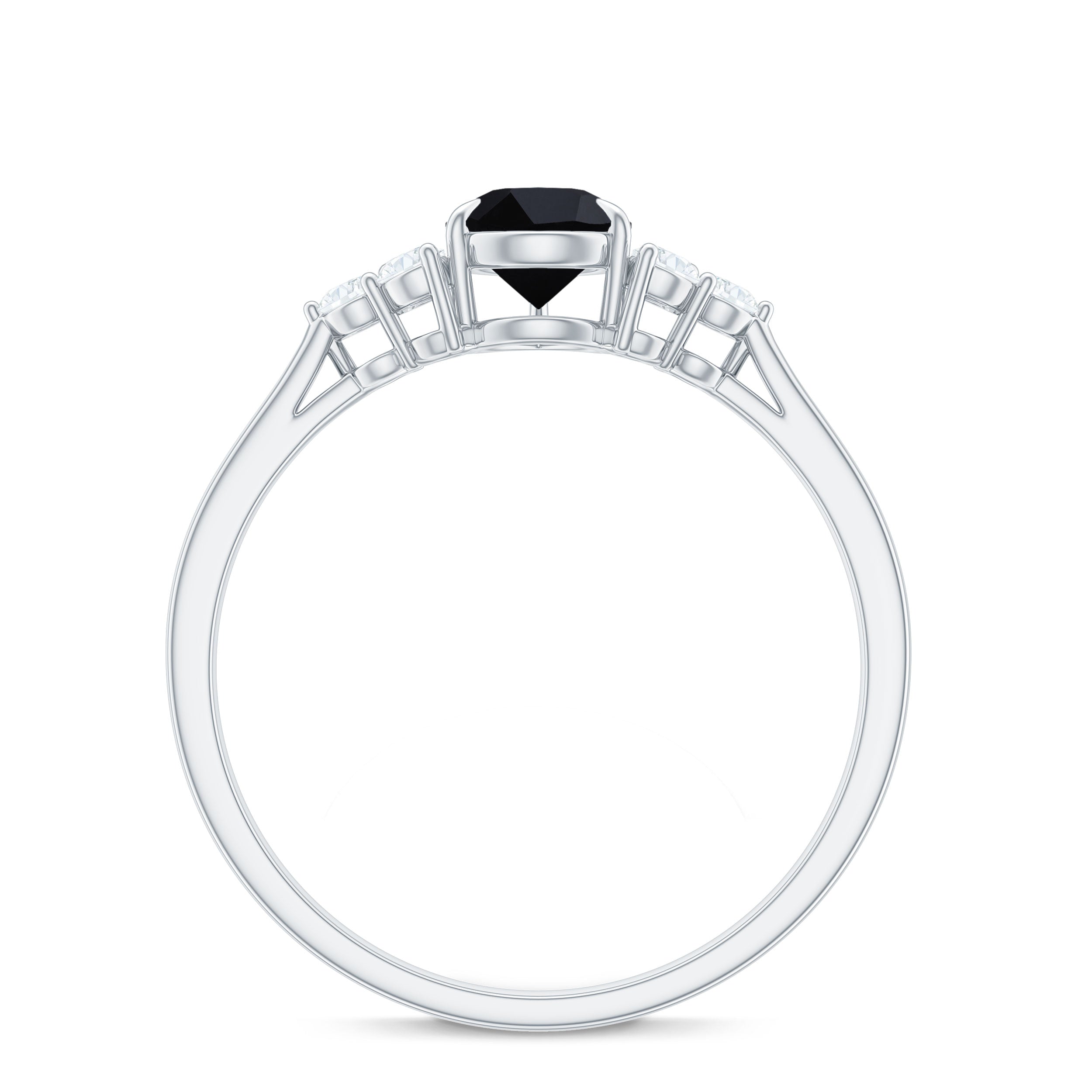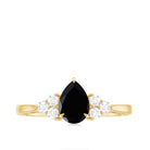 Pear Shaped Black Onyx Engagement Ring with Real Diamond Trio