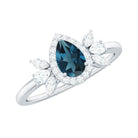Pear Shaped London Blue Topaz Engagement Ring with Diamond Halo
