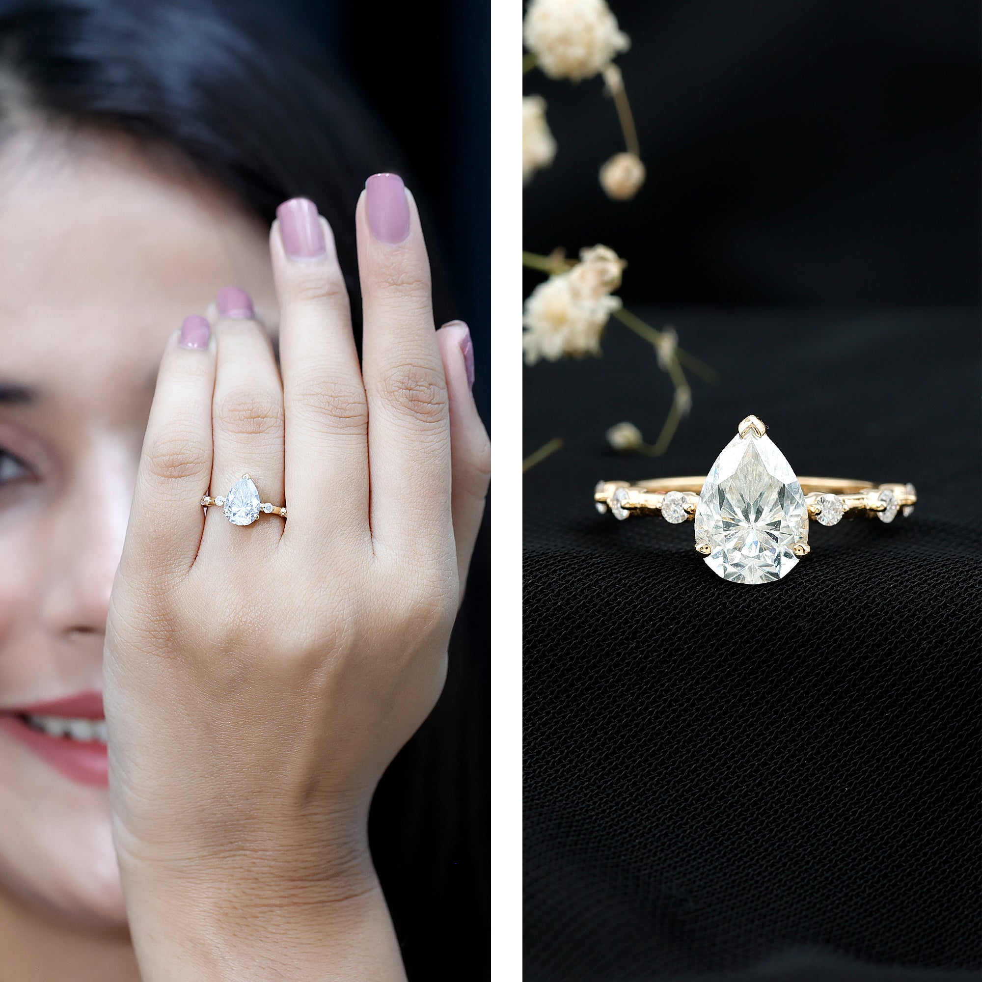 Pear Shaped Moissanite Big Engagement Ring For Women