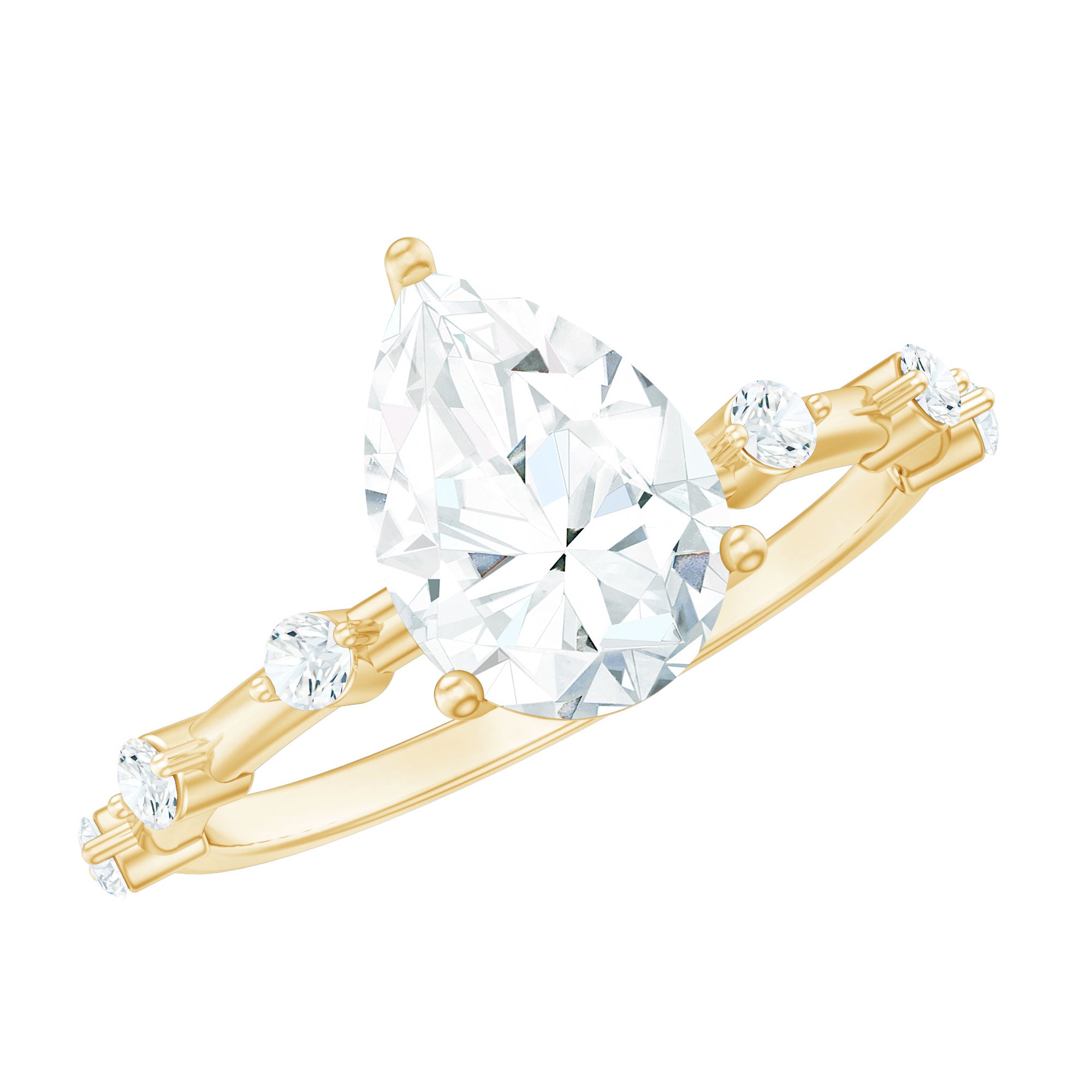 Pear Shaped Moissanite Engagement Ring with Spaced Accent