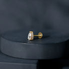 The simple and trendy Solitaire Cartilage Earring is embellished with 4X6 MM Pear Shape Moissanite secured in Prong Setting while Round Cut Moissanite is studded on its side. Wear this Moissanite Teardrop Earring to stand out from the crowd while enhancing your Helix, Conch, Cartilage, or Upper Lobe Piercing. The Flat Back Closure guarantees a snug and comfortable fit, making it an excellent option for both daily wear and special events. Whether you prefer a minimalist style or love creating a curated ear stack, this Moissanite Solitaire Earring complements your other pieces while adding its own unique sparkle. Crafted with D-VS1 quality moissanites, it is built to last and maintain its luster, making it a wonderful gift or a stylish indulgence for yourself. Perfect for those who appreciate fine details and understated elegance, this Pear Shaped Earring brings a beautiful touch of brilliance to any jewelry collection. Treat yourself or someone special to this exquisite piece of jewelry.