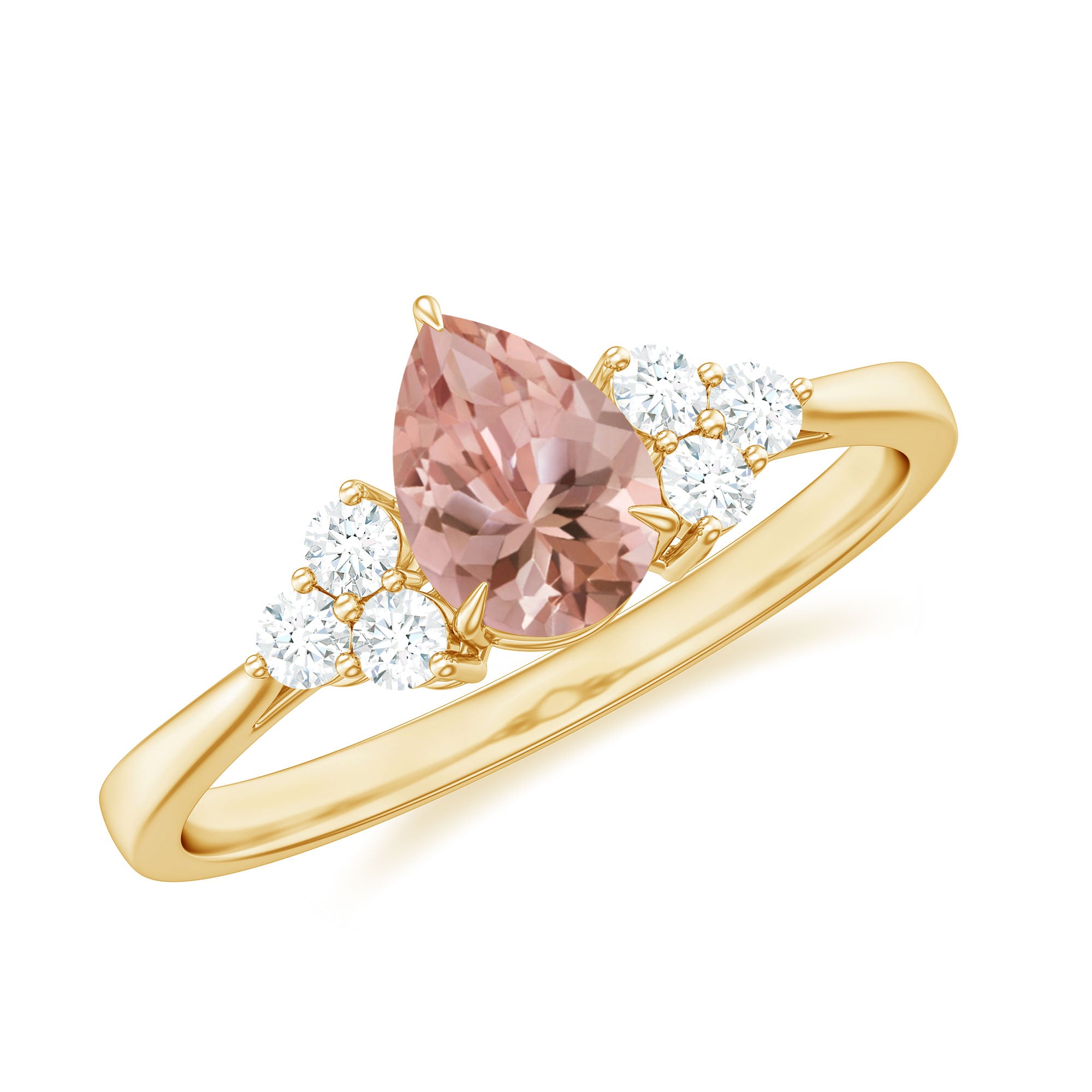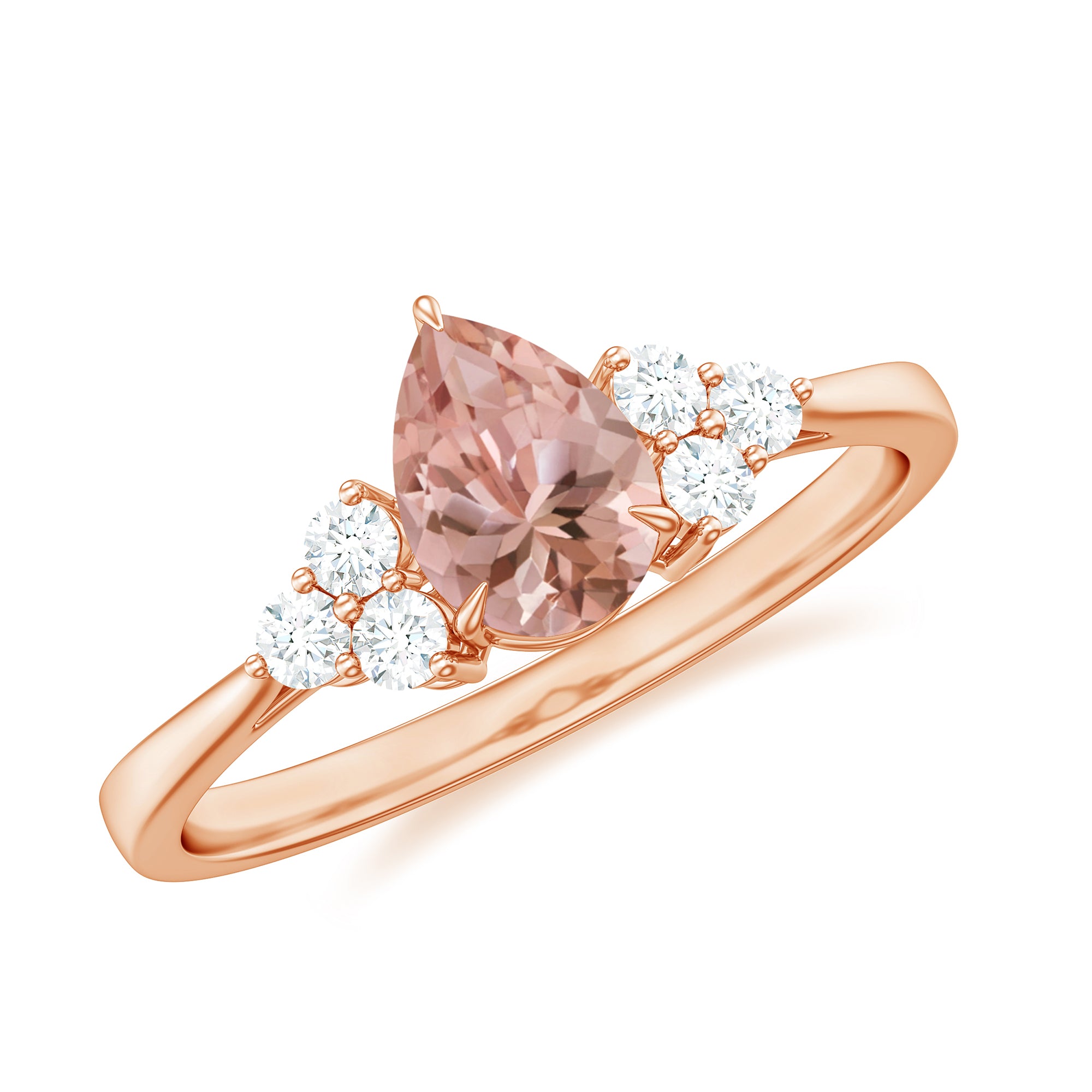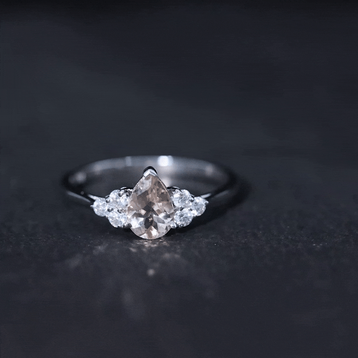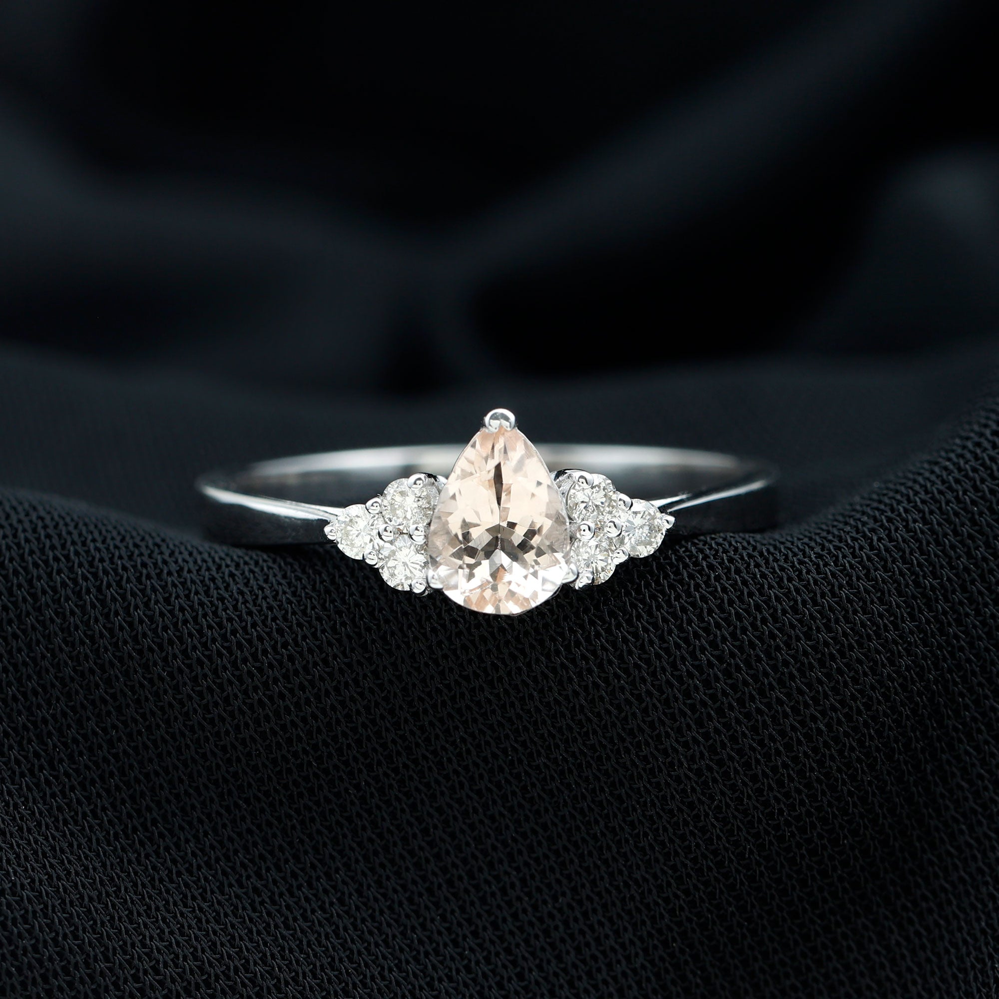 Pear Shaped Morganite Solitaire Ring with Diamond Trio