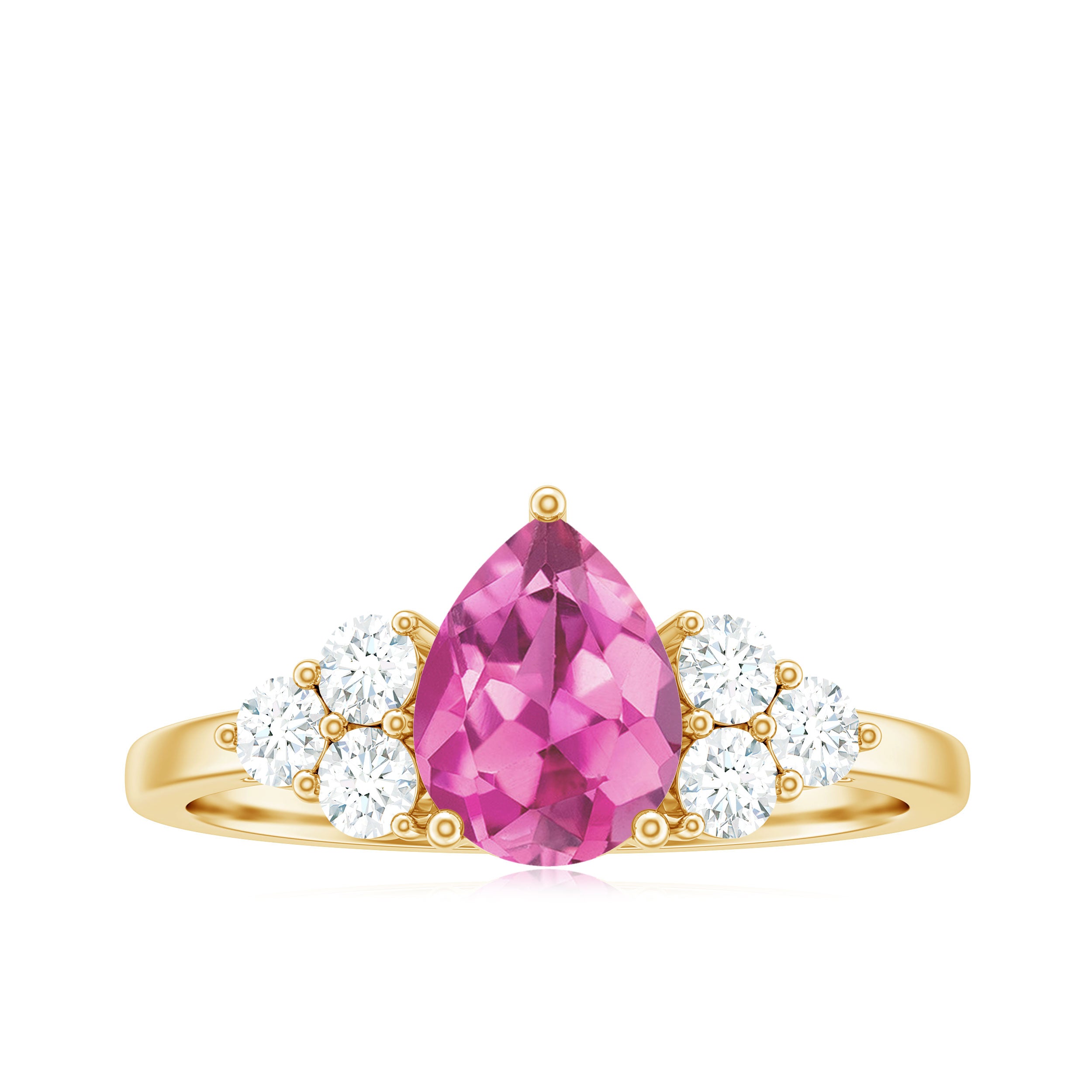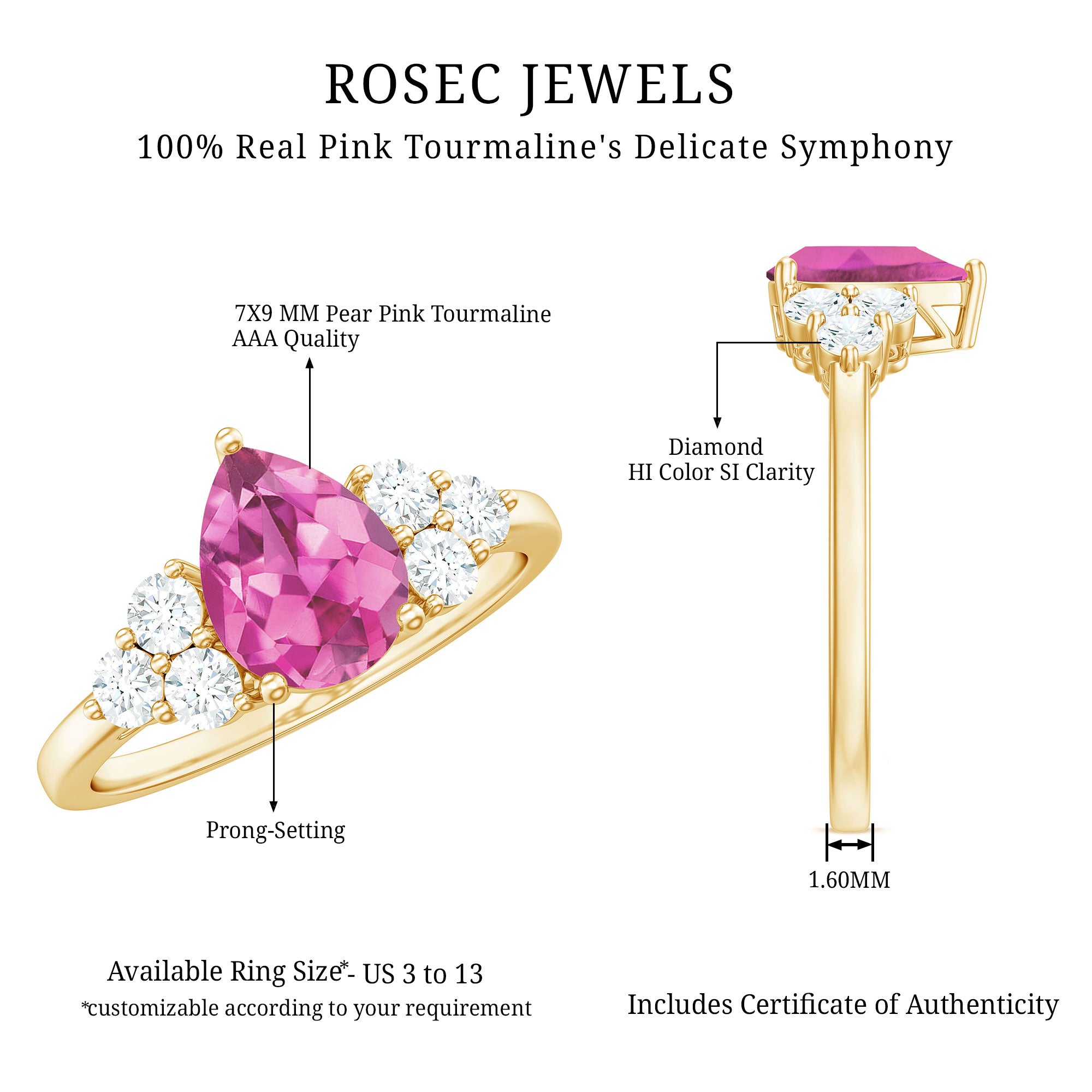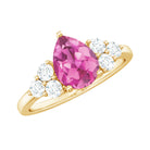 Pear Shaped Pink Tourmaline Solitaire Engagement Ring with Diamond Trio