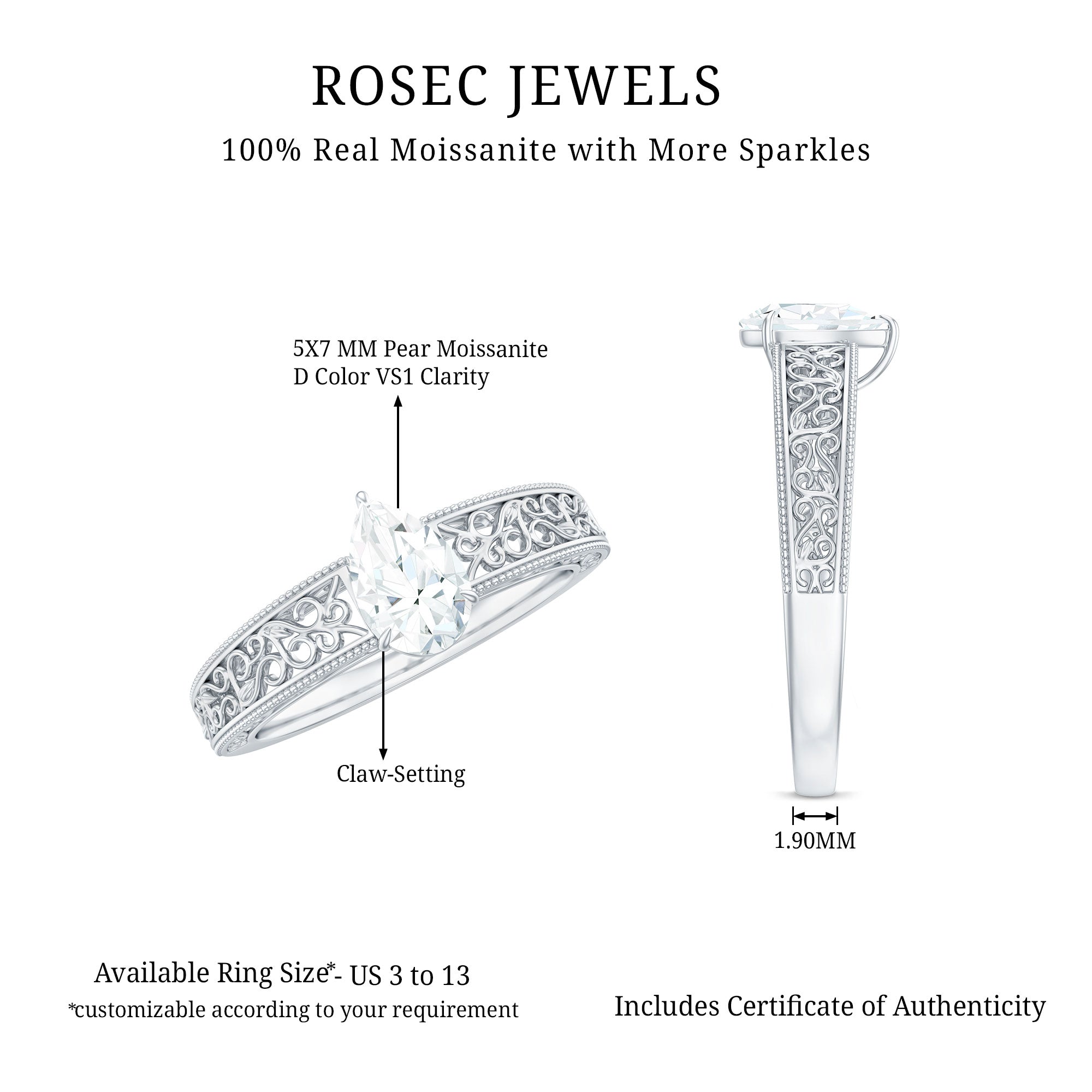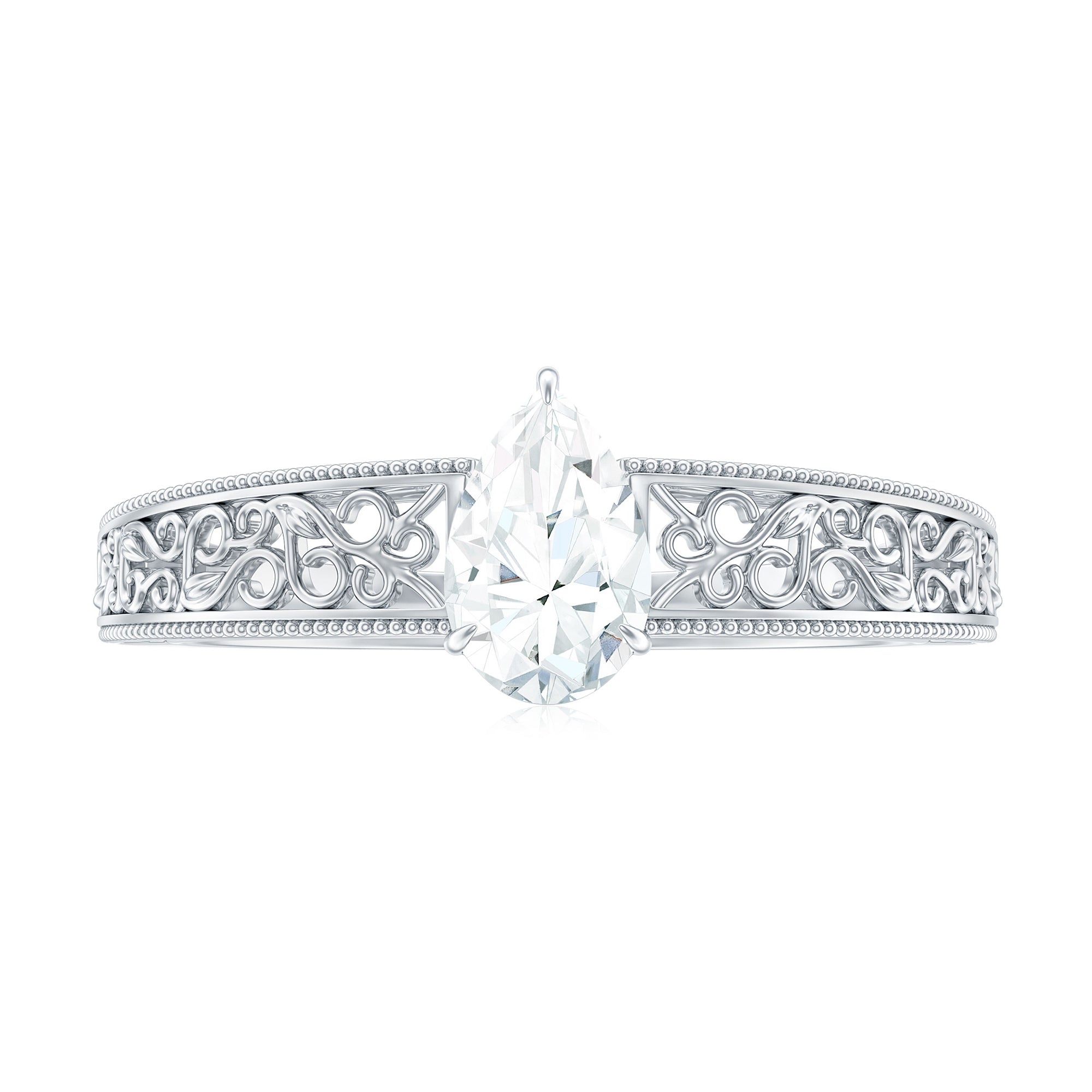 Pear Shaped Solitaire Moissanite Filigree Engagement Ring