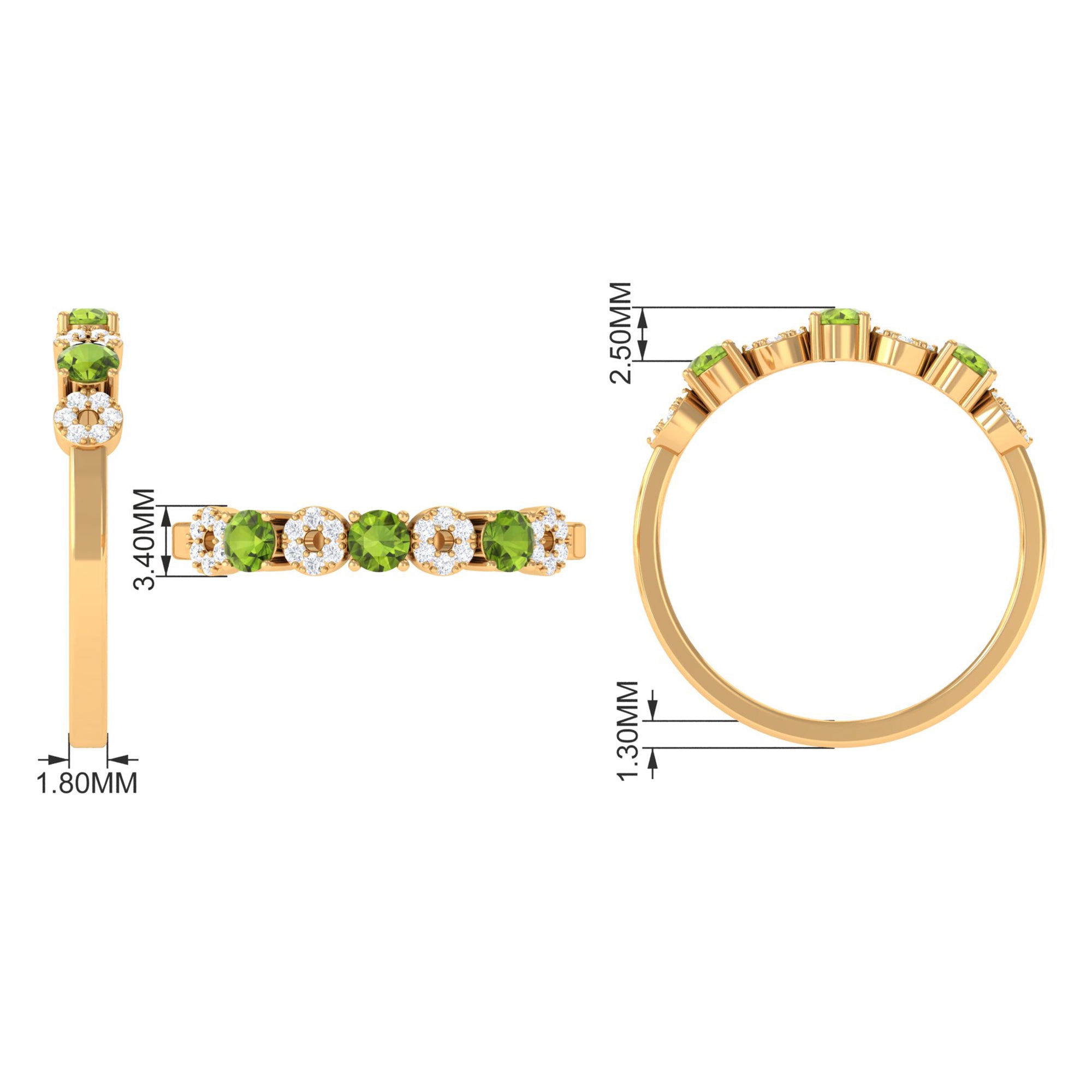 Embrace eternal splendor with this captivating Semi Eternity Ring. Adorned with Peridot gemstones and shimmering Diamond, this exquisite piece exudes timeless allure. The semi eternity design represents unending love and devotion. Elevate your style and cherish your lasting affection with this enchanting Half Eternity Ring, a mesmerizing symbol of your everlasting commitment.