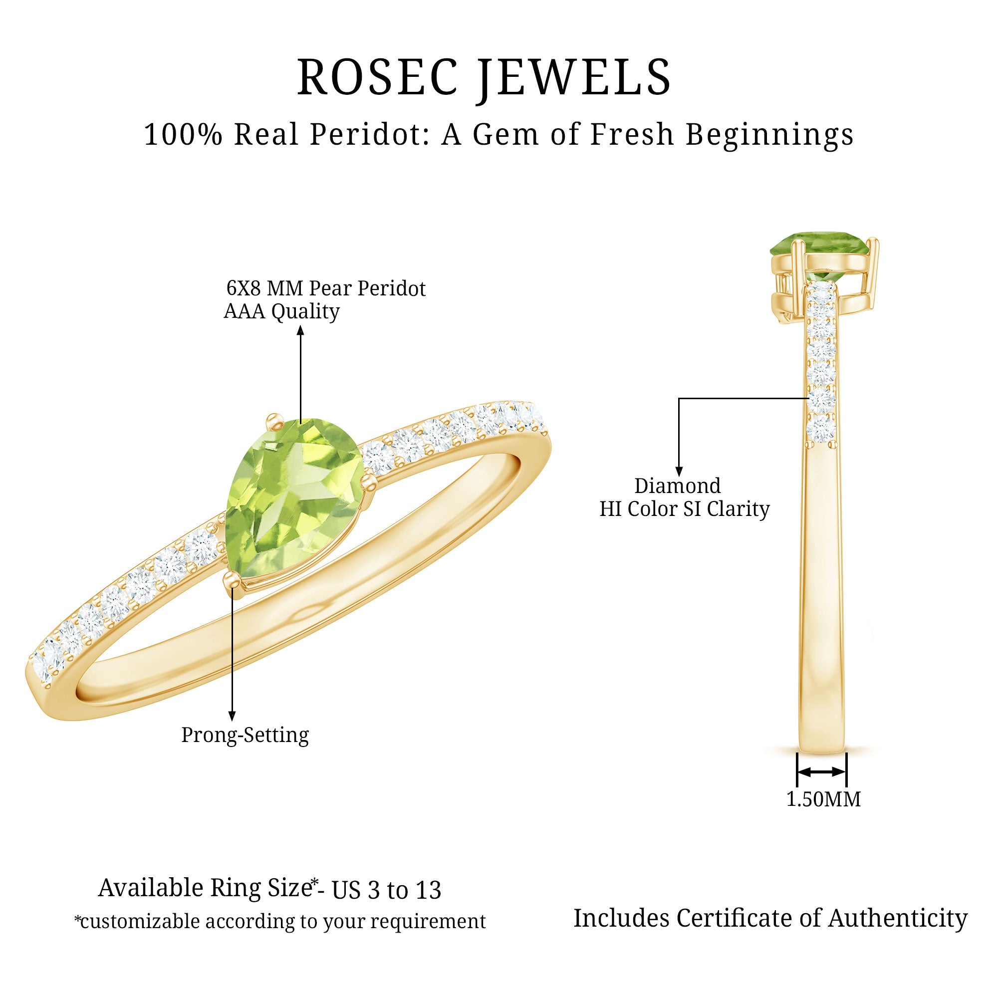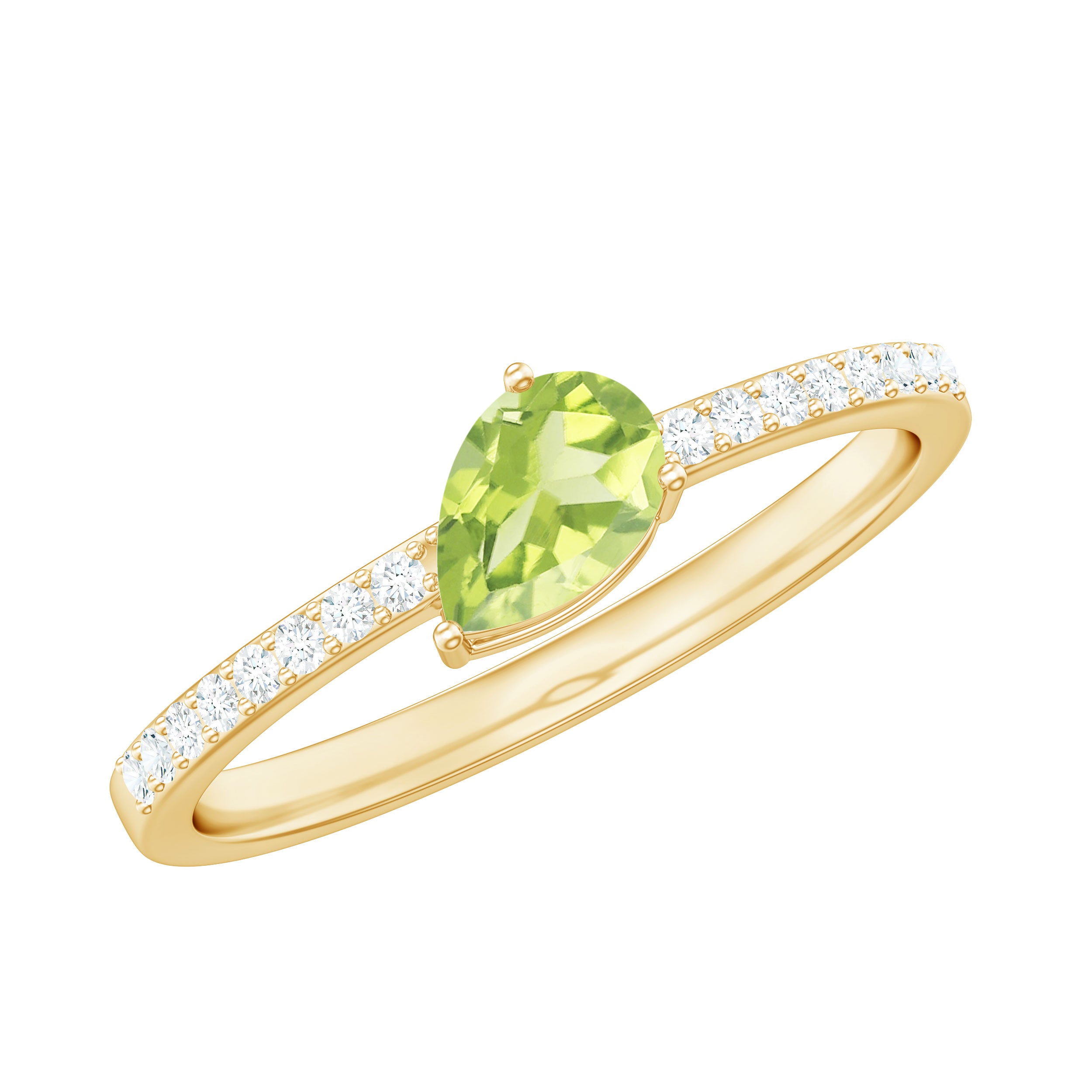 Elevate your style with this Solitaire Ring. Pear Shape Peridot is slantly placed, while the sparkling Diamond gemstones add an extra touch of brilliance.