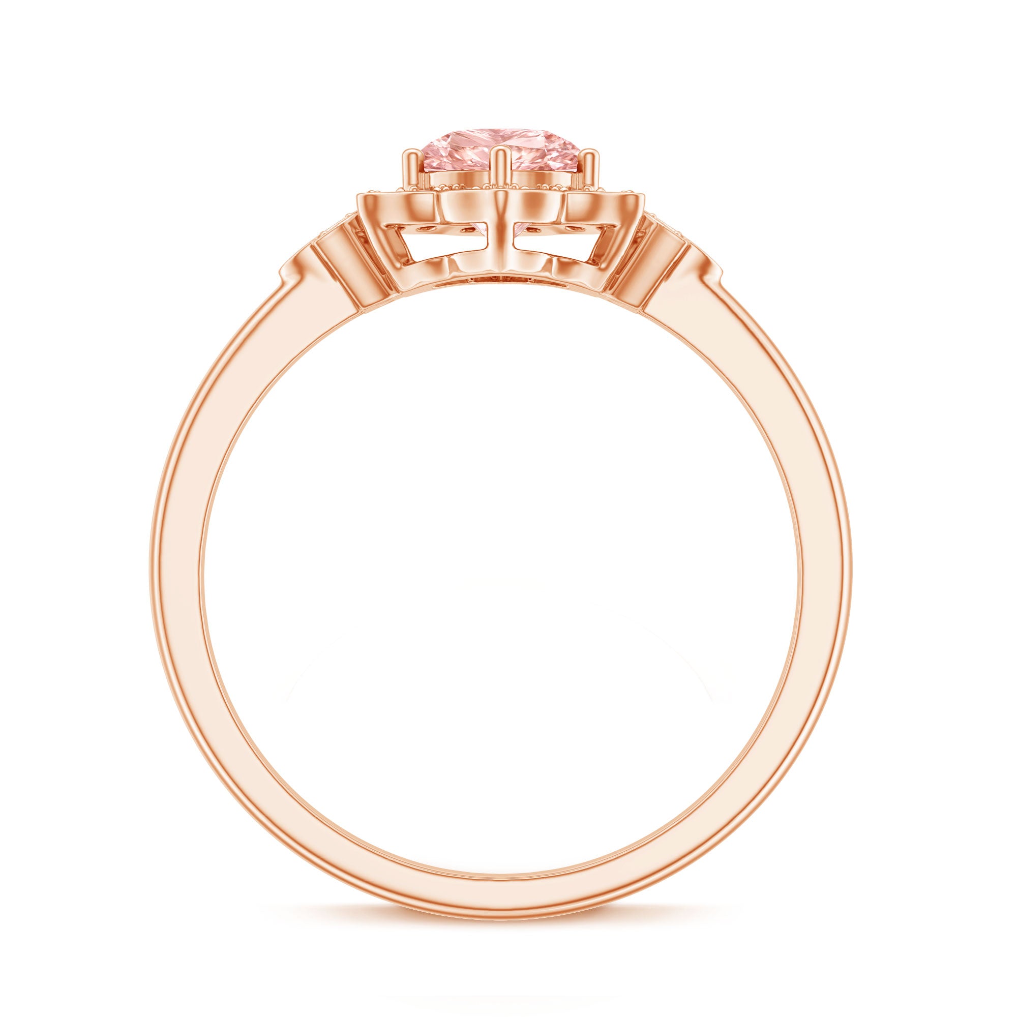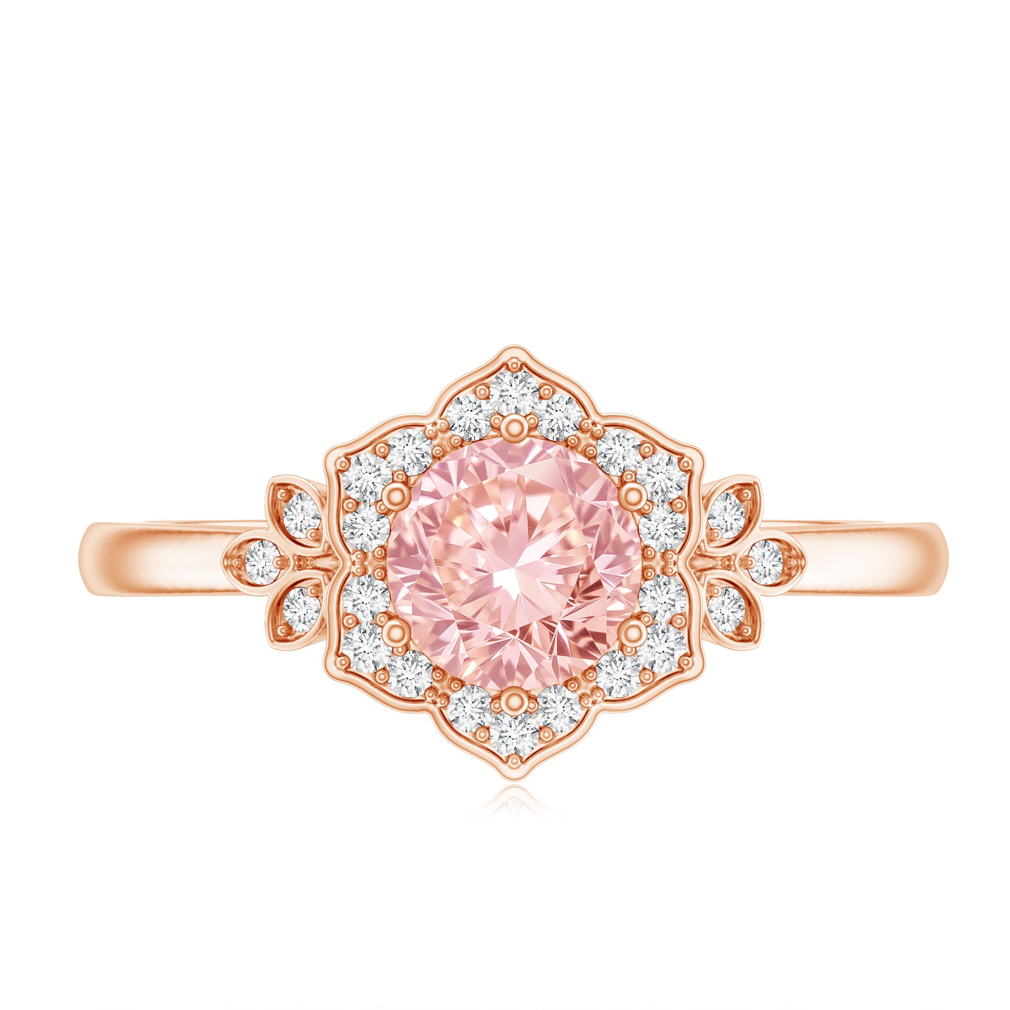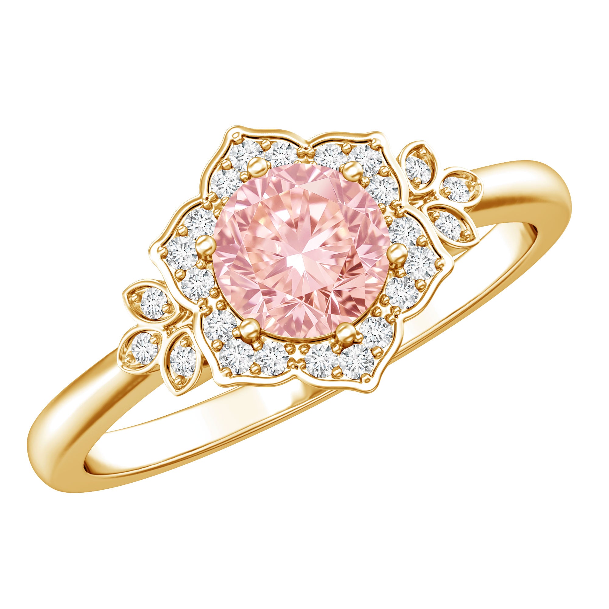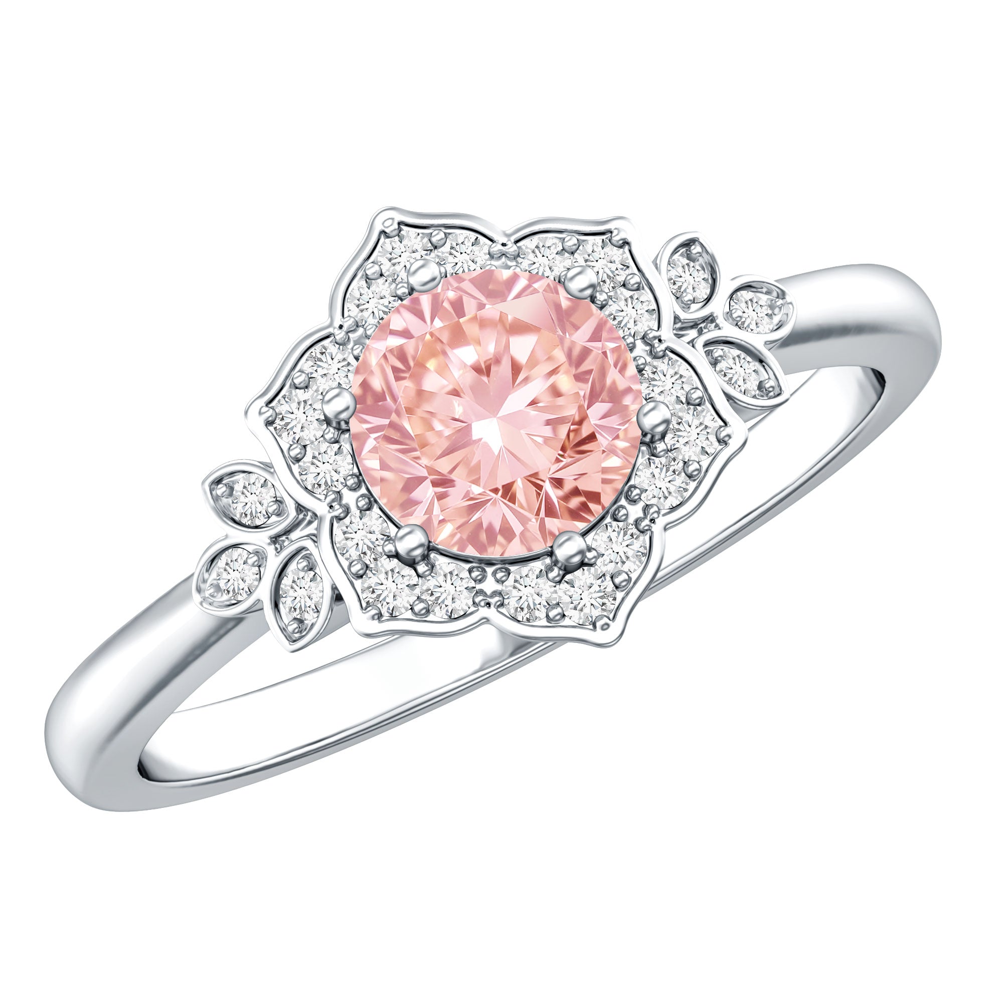 Feminine, bold, and dramatic, this Lab Created Pink Diamond Engagement Ring will elevate your wedding attire. As a vibrant symbol of love for nature, this Flower Ring is regarded as a classic piece, adding a playful element and undeniable allure that plays a vital role in flower power aesthetics. Crafted from high-quality metal, this Flower Engagement Ring showcases a nature-inspired theme that makes a floral fashion statement. It is meticulously designed with a 6.50 MM round cut lab grown pink diamond set in prongs, surrounded by a round cut lab-grown diamond halo that resembles flower petals, capturing the essence of natures beauty and conveying a message of timeless elegance. The shoulders feature metal petals adorned with lab-grown white diamonds for added brilliance. The intricate details, combined with a seamless style, make this Statement Ring an ideal choice, encapsulating the enchanting feelings associated with each bloom while celebrating natural vibrancy. The VVS quality pink diamond and EF Color VS Clarity lab-grown diamonds offer a unique variety of styles to enhance your appearance.