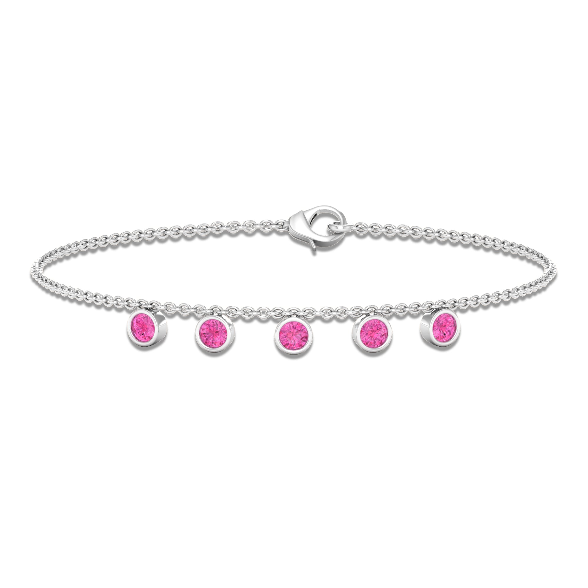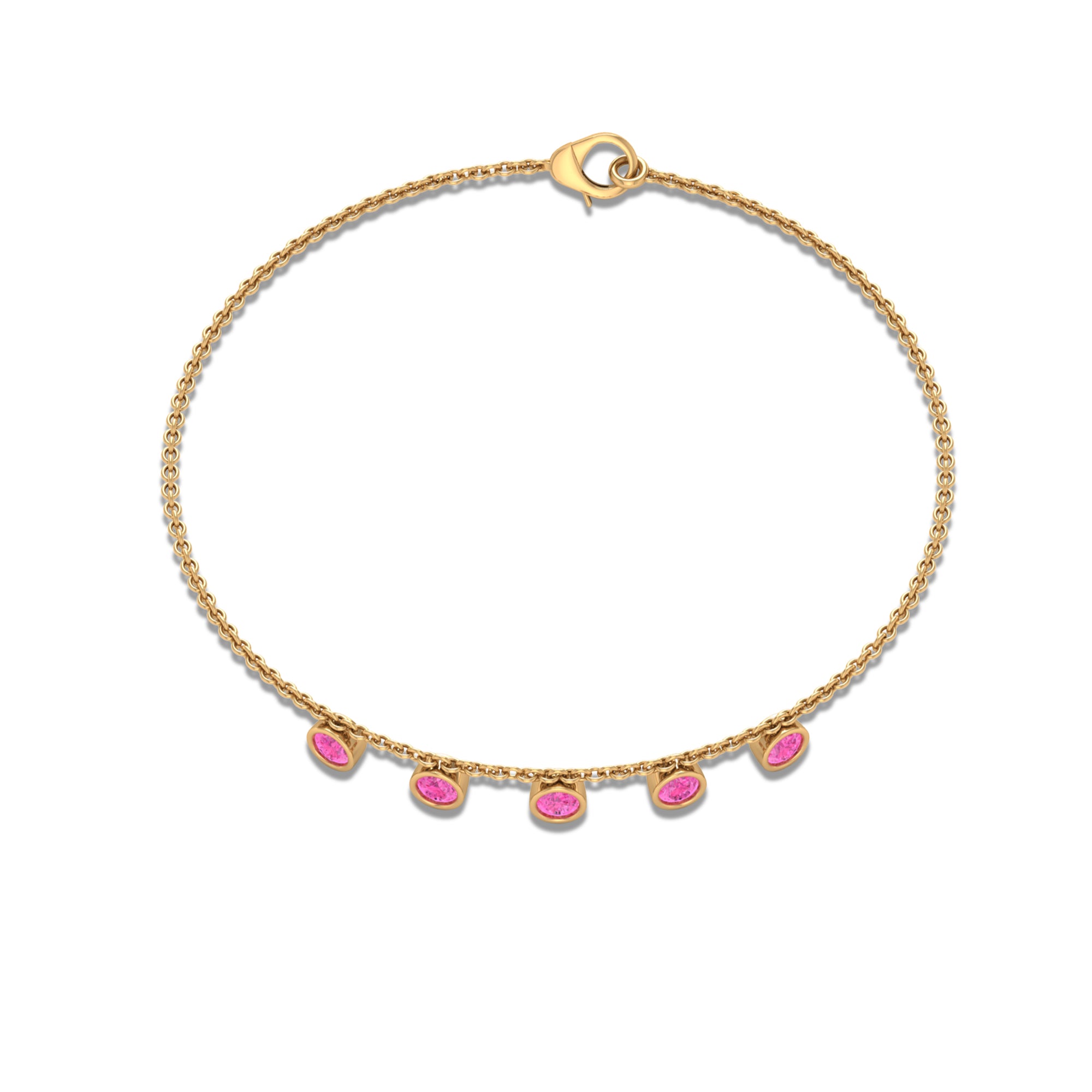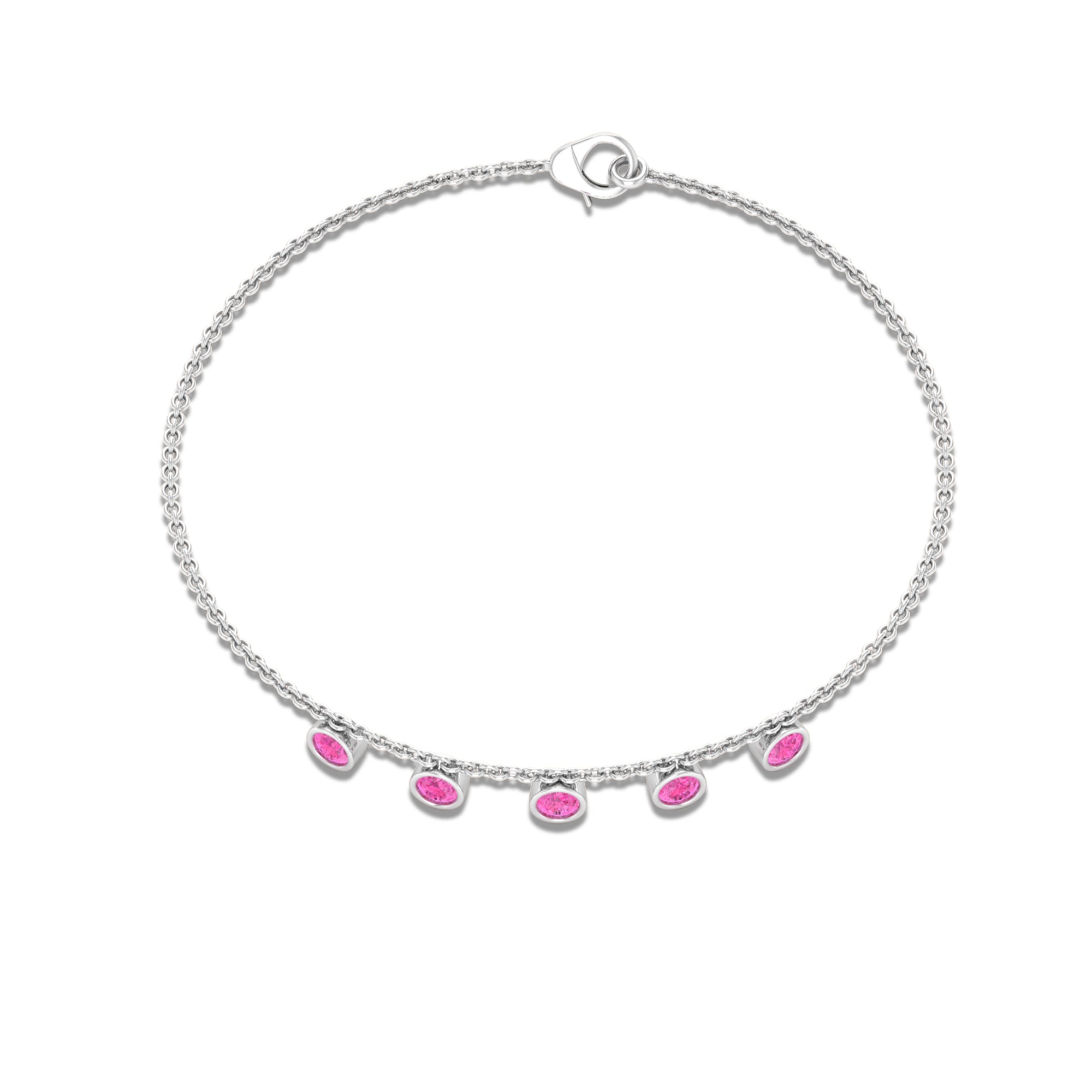 Pink Sapphire 5 Stone Charm Chain Bracelet