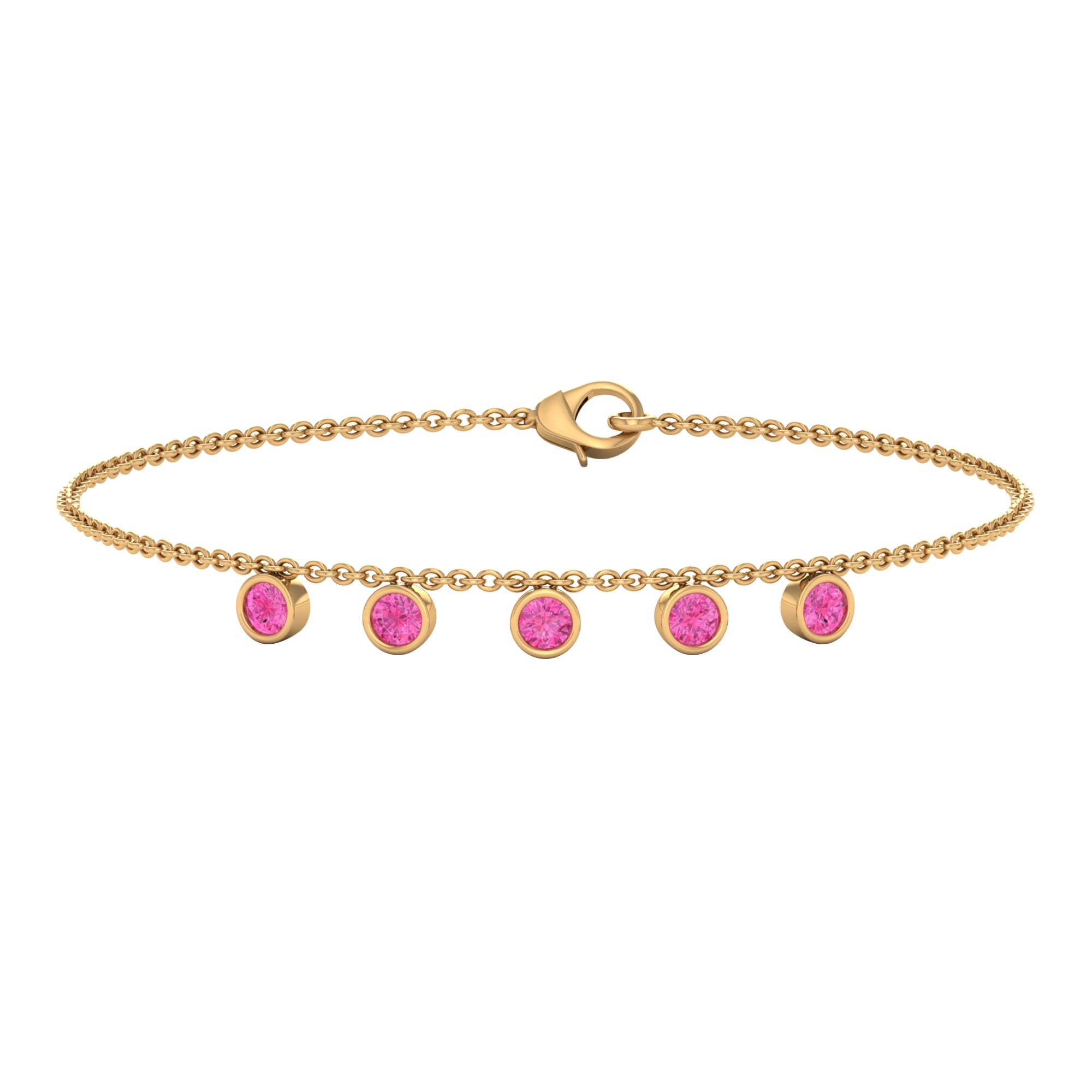 This Sapphire Chain Bracelet serves as the ideal accessory to ensure you shine like a star at any evening event. This exquisite piece showcases delicate round cut Pink Sapphire gemstones that are meticulously arranged along the chain. The bezel setting secures the stones, enabling them to capture maximum light, which significantly enhances their sparkle and introduces a modern touch. This Pink Sapphire Bracelet is designed with a secure lobster clasp, guaranteeing a safe and comfortable fit for all-day wear. It represents love, strength, and inner brilliance, making it a considerate gift for yourself or a loved one. It is lightweight and versatile, providing just the right amount of sparkle without being overpowering. You can wear this Layering Bracelet alone for a minimalist appearance or stack it with another bracelet for a striking statement; in either case, it will provide you with the perfect style to shine on any occasion.