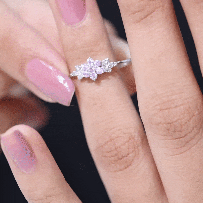 Pink Sapphire Flower Cluster Promise Ring with Diamond