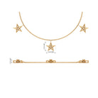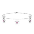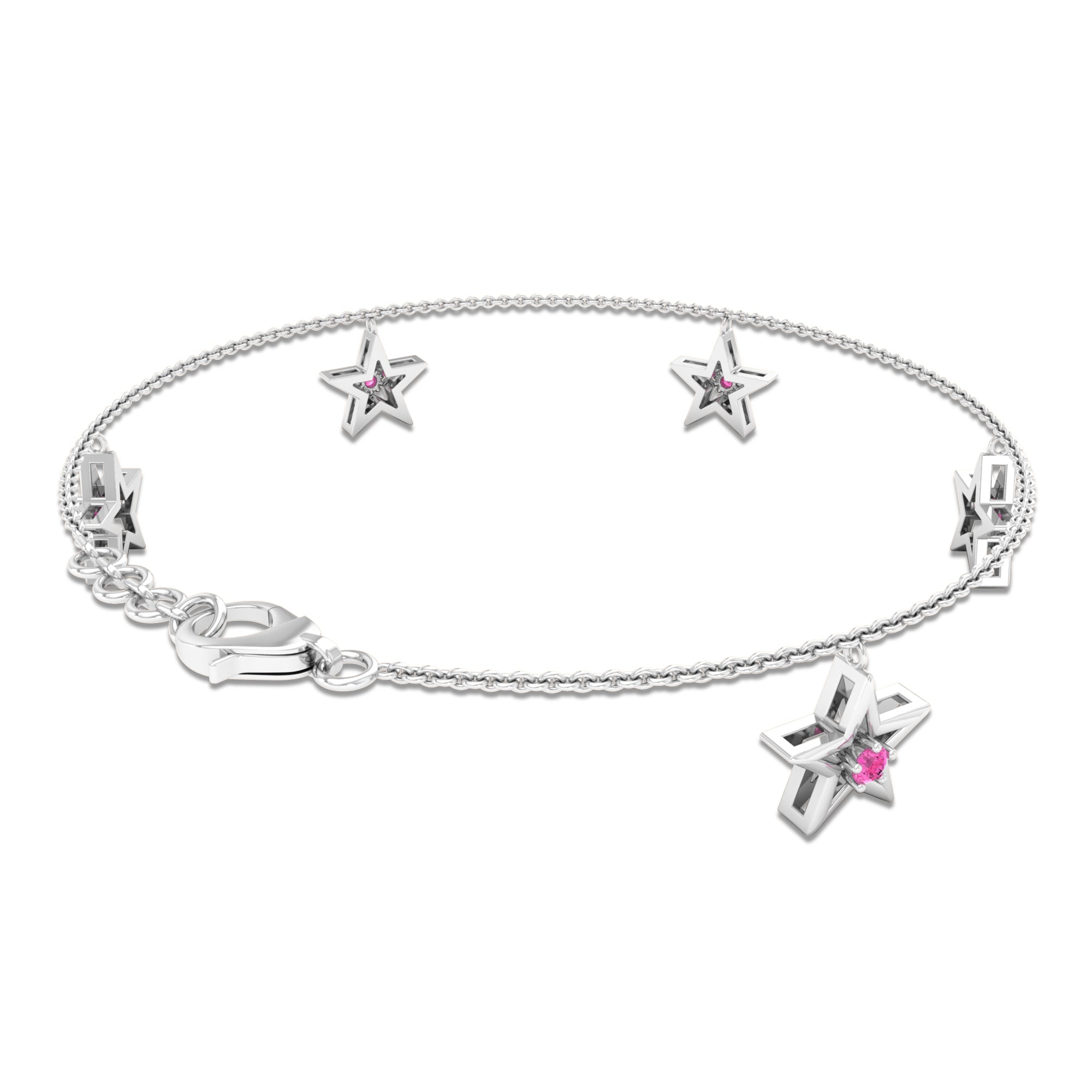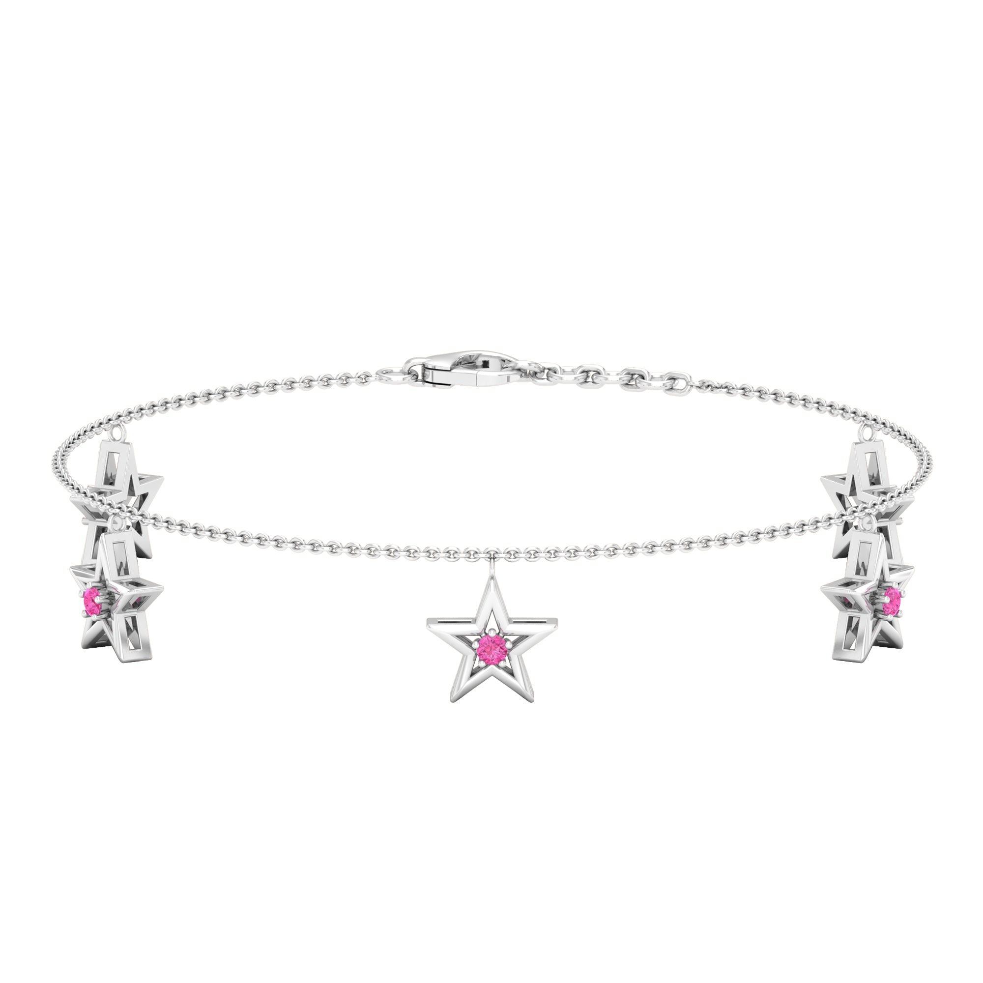 Radiate like the night sky with this enchanting Pink Sapphire Bracelet, where timeless sophistication intertwines with celestial allure. It showcases exquisite star charms embellished with brilliant round shape Pink Tourmaline set in prongs, capturing and reflecting light from every perspective. Designed for both durability and comfort, the delicate construction of this Charm Chain Bracelet provides a feather-light sensation, allowing it to rest softly on your wrist. This Star Shaped Bracelet is equipped with an adjustable lobster clasp for an ideal fit, making it perfect for wearing alone for a subtle accent or layering with other pieces of jewelry. This Celestial Bracelet is ideal for anyone who believes in wishes, enjoys stargazing, or simply appreciates meaningful adornments. Whether for a birthday, a special occasion, or simply to inspire someone to continue dreaming, it is a gift imbued with light, love, and brilliance. With its timeless design and enduring beauty, this Stackable Bracelet is destined to become a cherished item for many years ahead.