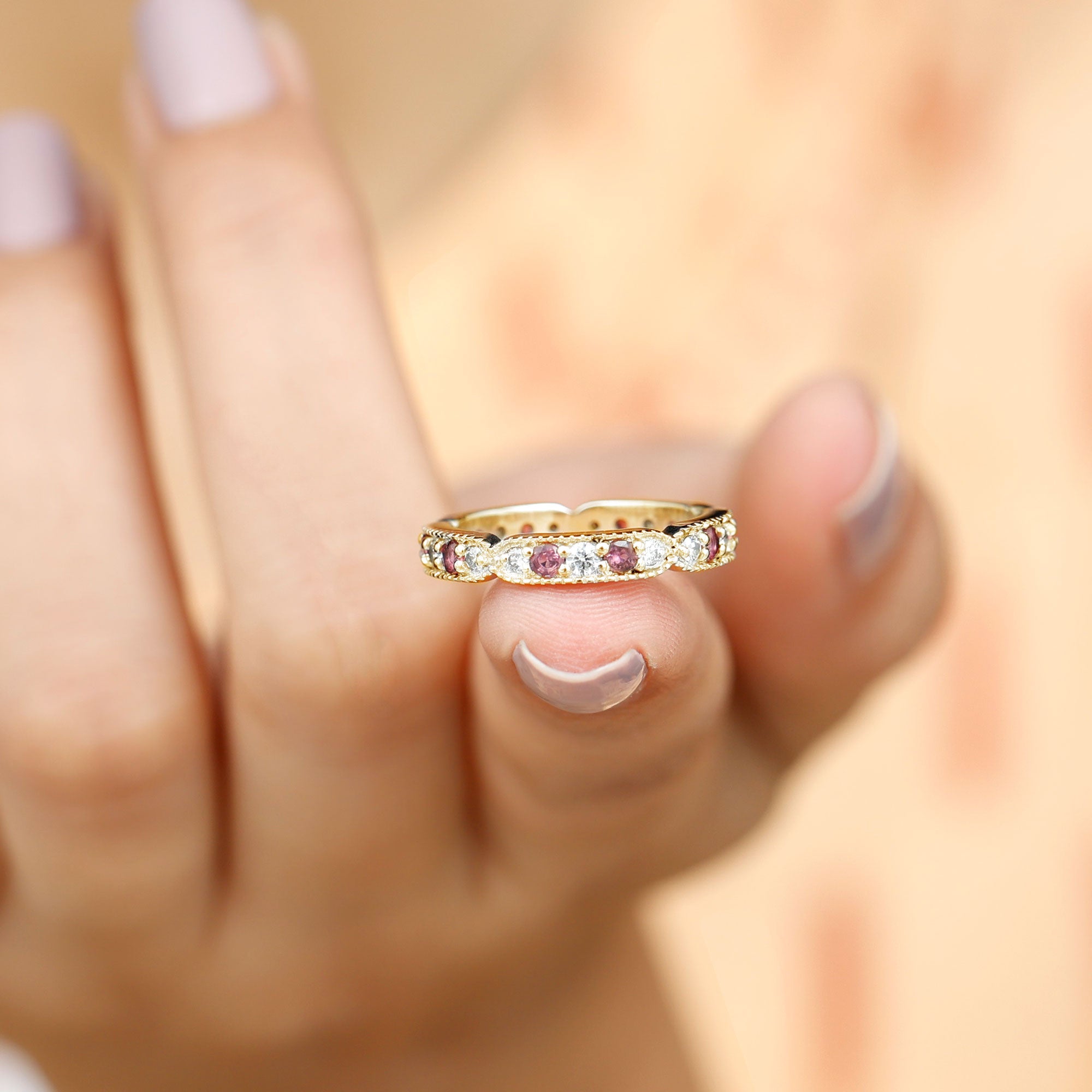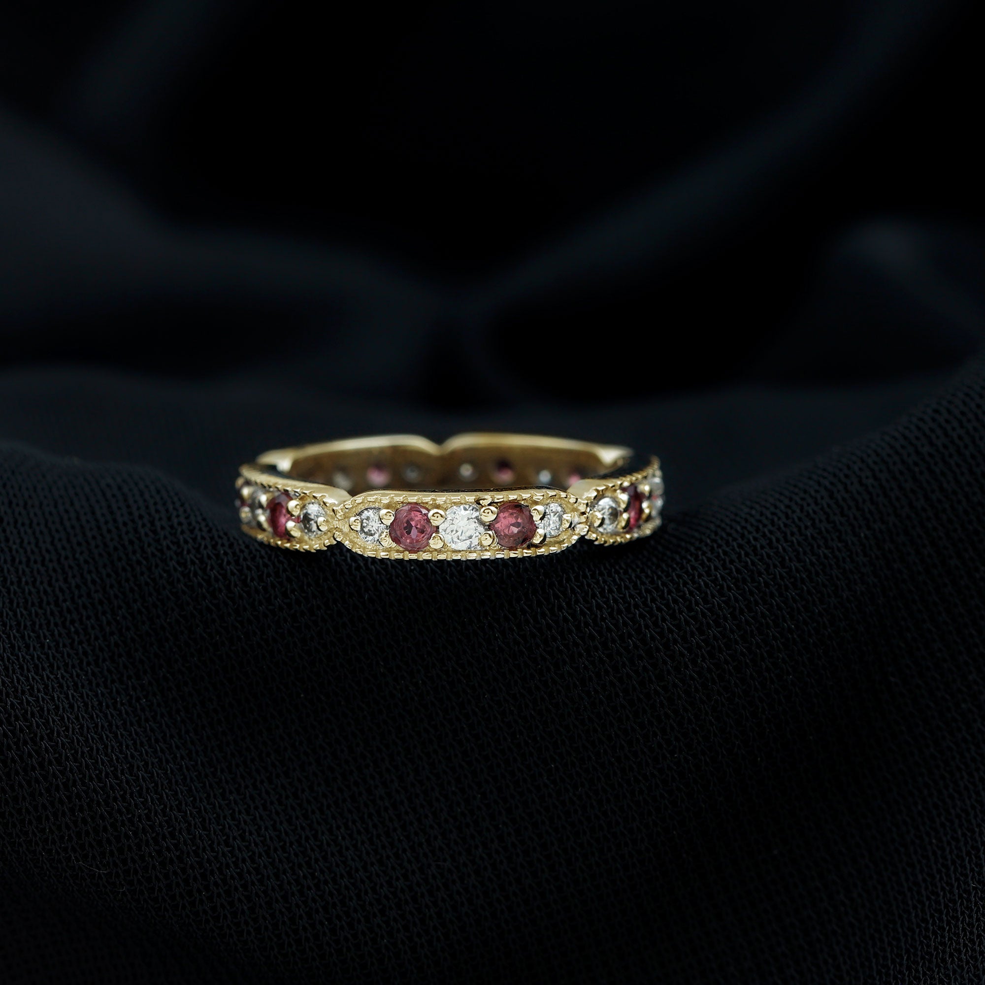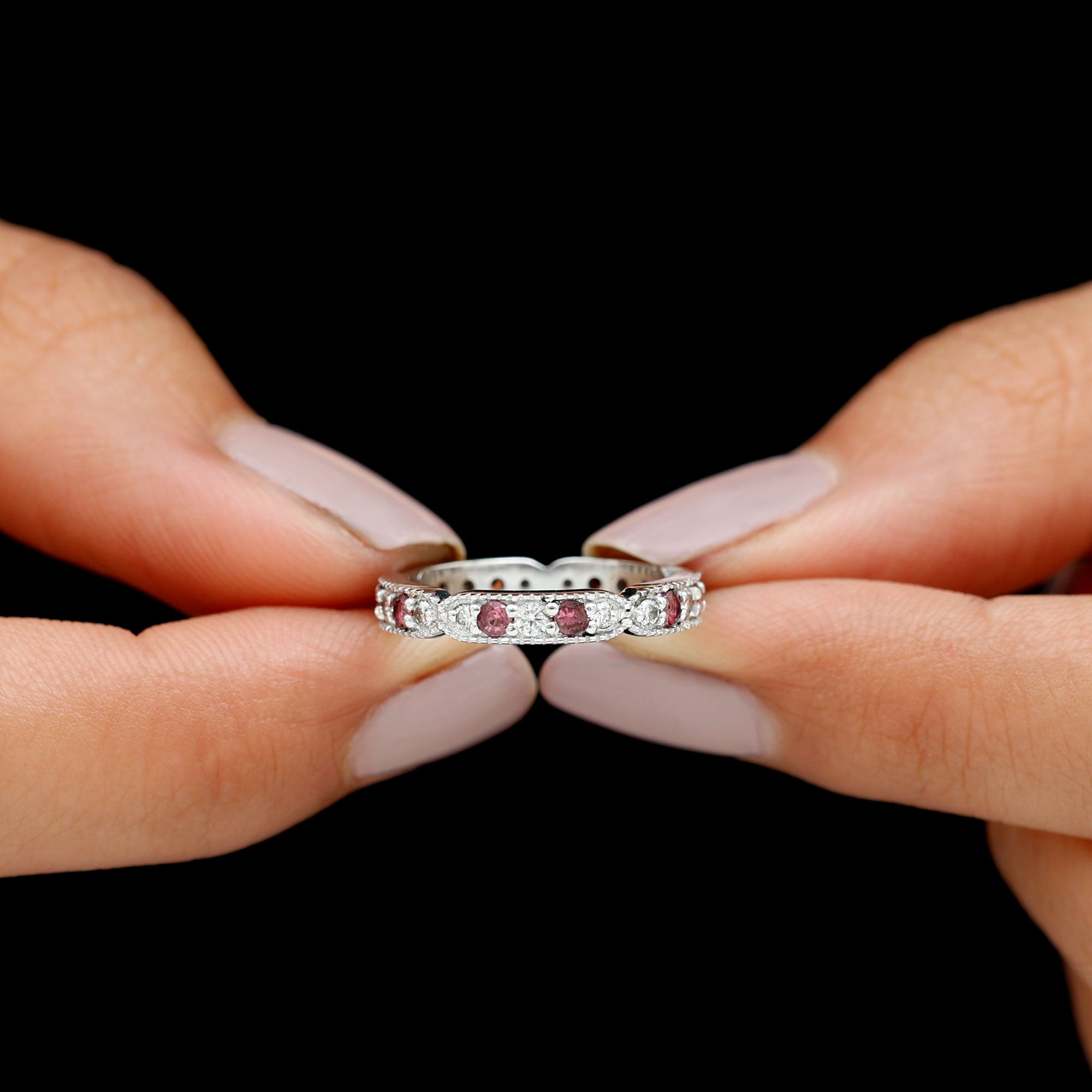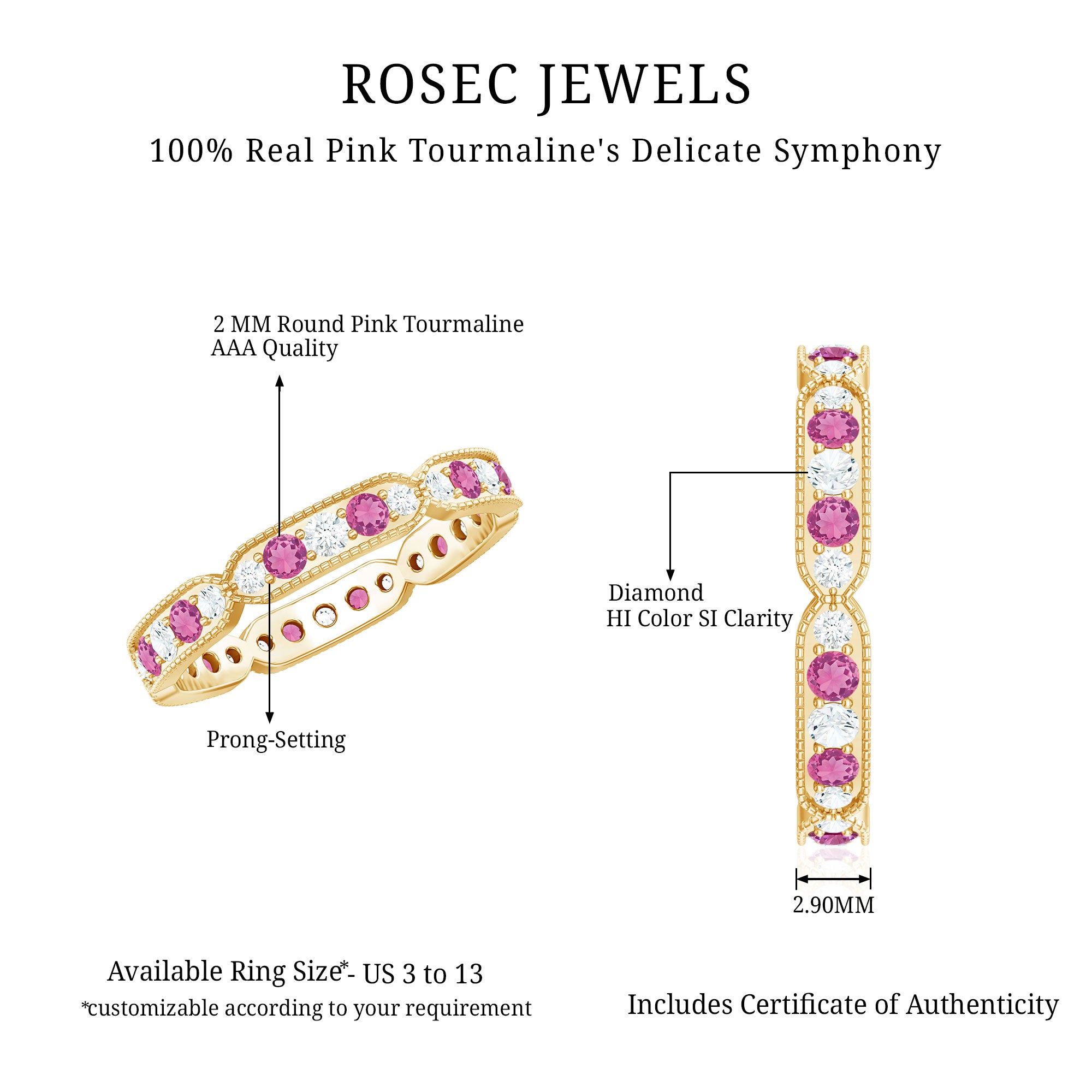 Experience eternal love with this Pink Tourmaline and Diamond Eternity Band Ring. A captivating circle of beauty and brilliance.